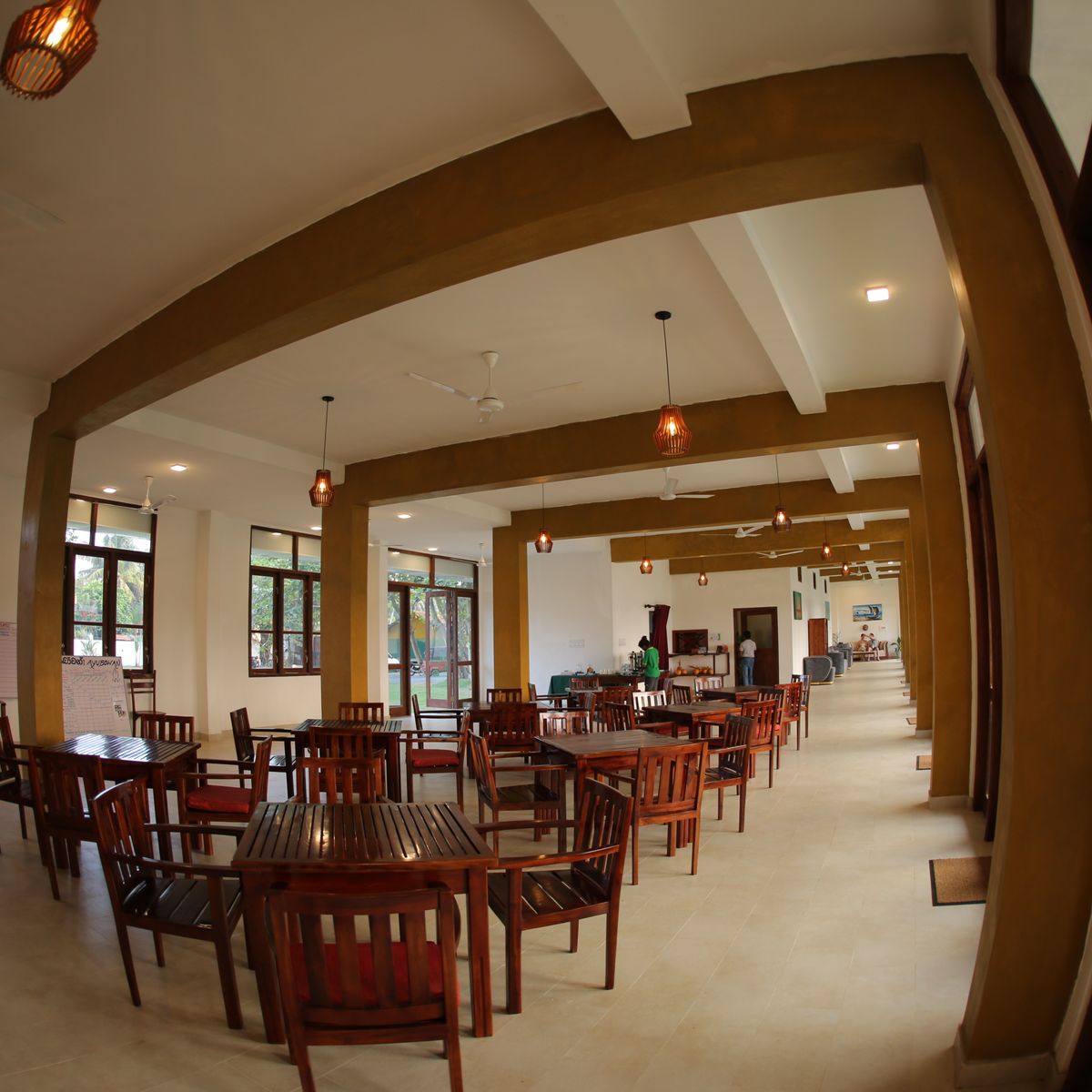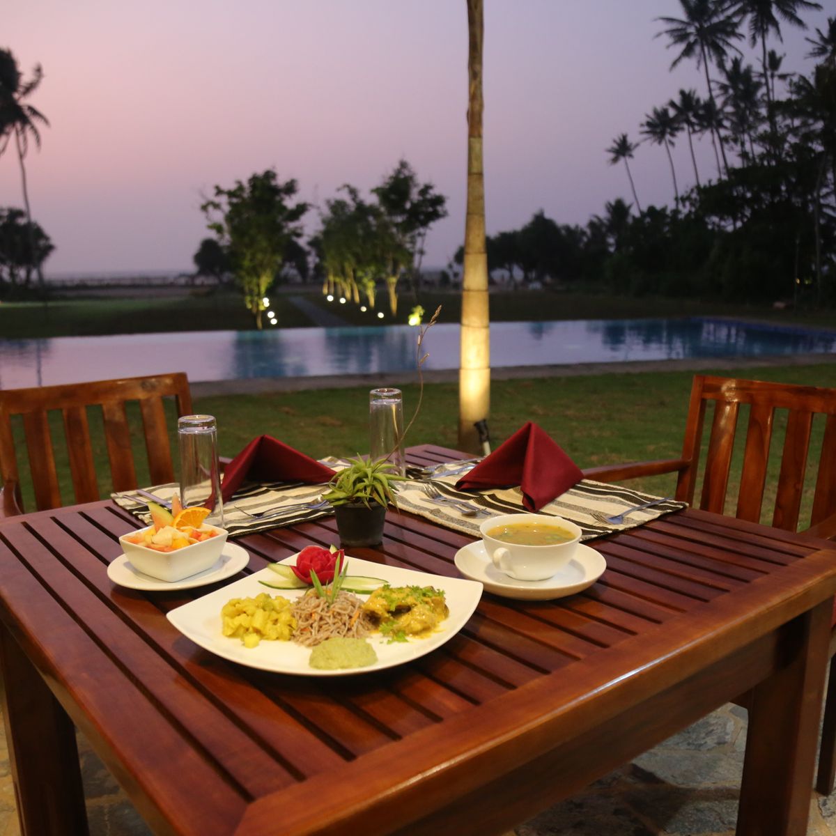 Das Restaurant, gelegen im Erdgeschoss, offeriert Plätze sowohl im Innen- als auch im Außenbereich. Es wird eine frische und ausgewogene Küche präsentiert, die sich an ayurvedischen Prinzipien orientiert und großen Wert auf lokale Zutaten legt. Die Speisen werden behutsam zubereitet, um das Dosha-Gleichgewicht ideal zu fördern. Bei vorheriger Anmeldung ist es möglich, auf spezielle Ernährungsbedürfnisse einzugehen.