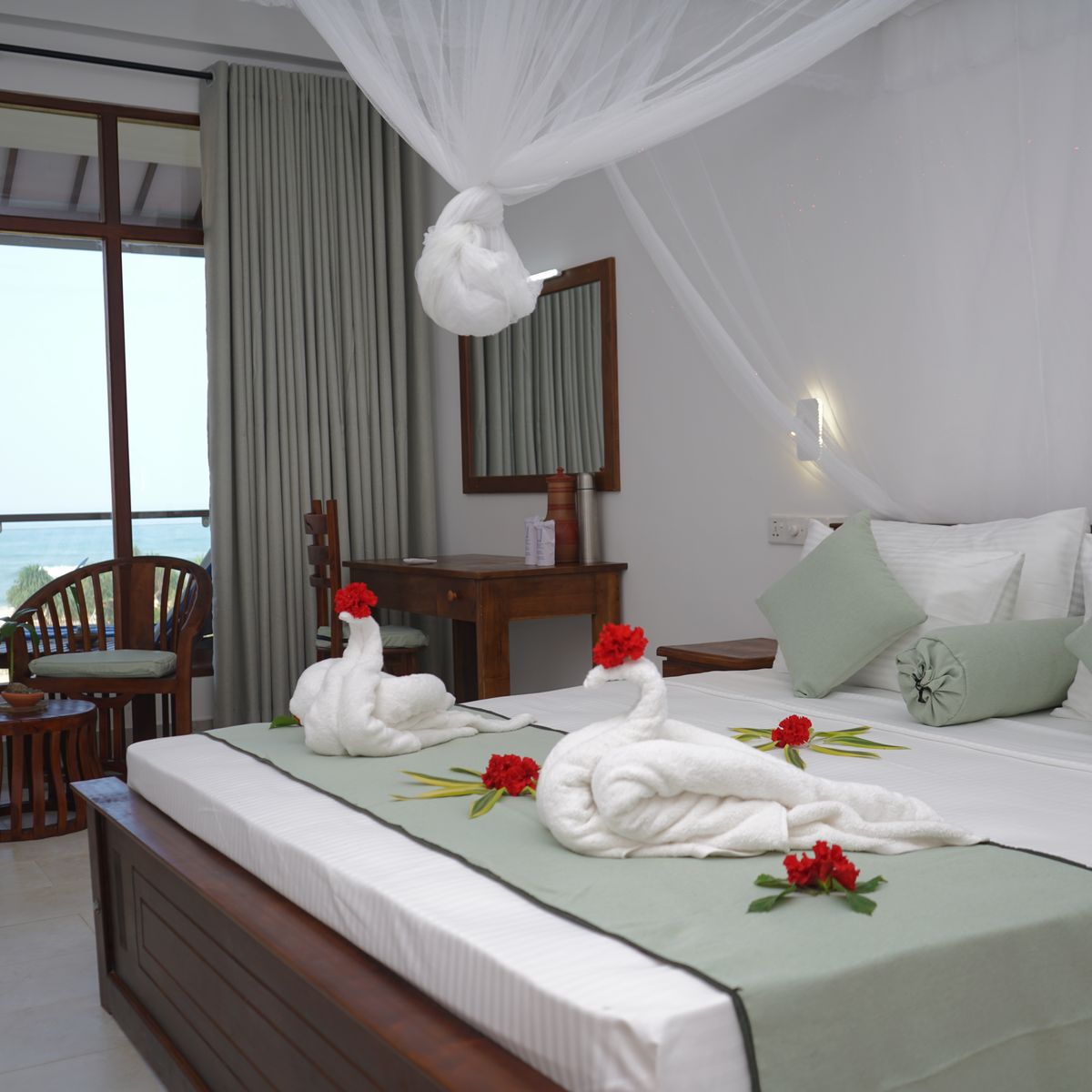 Das Resort bietet 30 komfortable Zimmer in modernem, freundlichem Design. Natürliche Materialien sorgen für eine beruhigende Atmosphäre, perfekt für eine Ayurveda-Kur. Alle Zimmer sind zur Meerseite ausgerichtet und bieten durch große Fenster einen weiten Blick auf den Ozean, in einigen Zimmern sogar direkt vom Bett aus.