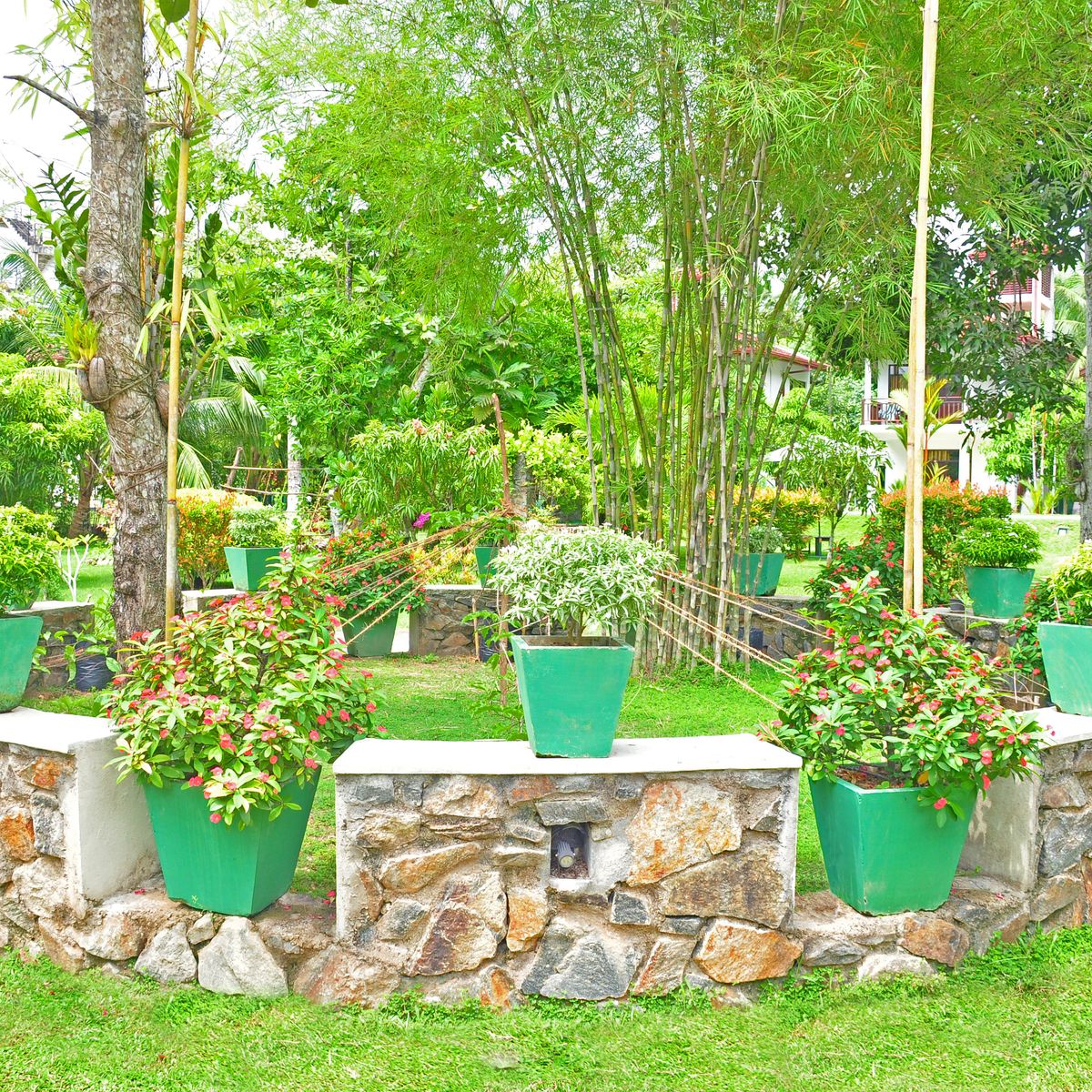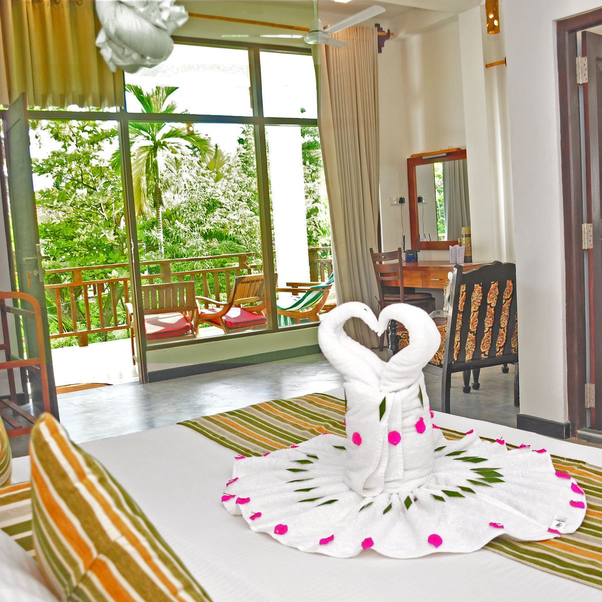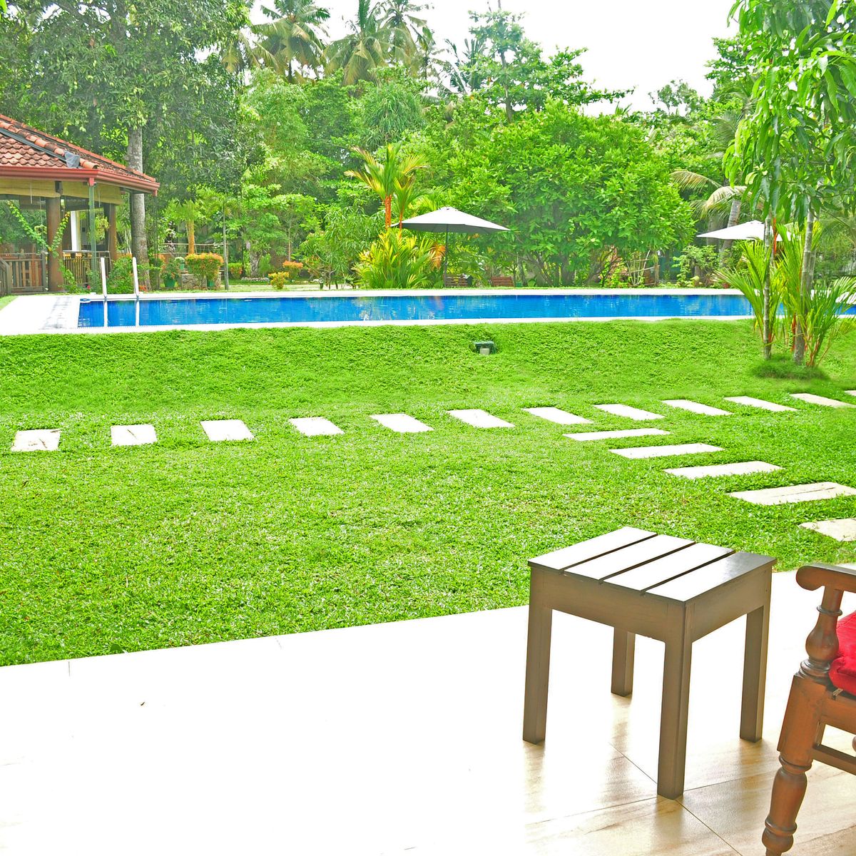 Verteilt über 8 Bungalows bieten die insgesamt 22 Zimmer auf 2 Etagen ausreichend Freiraum und eine äußerst familiäre Atmosphäre. Vom Balkon bzw. der Terrasse mit Sitzgelegenheit schweift der Blick über den Pool in das satte Grün des Gartens. Ausgestattet sind die Zimmer mit Dusche/WC, Ventilator, Telefon, Safe, Föhn, Bademantel, Klimaanlage und WLAN. 1 weiterer Bungalow mit 2 Zimmern ist auf Anfrage buchbar.