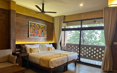 Auch in der Raumgestaltung finden sich Umweltbewusstheit und schlichter Komfort wieder. Es gibt insgesamt 35 Ayur Earth Villa Zimmer. Davon 10 Classic Zimmer im Erdgeschoss und 10 Premium Zimmer im 1. Stock, zusätzlich mit Klimaanlage. Die Zimmer bieten einen schönen Blick auf das Westghats-Gebirge. Lehmwände sorgen für eine natürliche Kühlung. Moskitonetz und Föhn auf Anfrage.