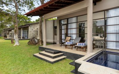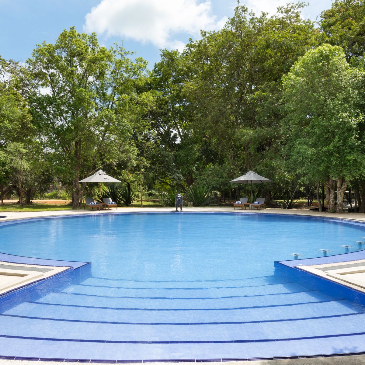 Der weitläufige Poolbereich, umgeben von üppigen tropischen Gärten, ist einladend zum Schwimmen, Sonnenbaden oder einfach zum Entspannen. Spaziergänge durch die malerische Landschaft ermöglichen es den Gästen, die natürliche Schönheit zu erleben und vielleicht sogar exotische Vögel und andere Wildtiere zu sichten. Für kulinarisch Interessierte bietet das Resort ayurvedische Kochkurse an, um Einblicke in gesunde Ernährungsweisen und Kochtechniken zu gewähren. Zudem organisiert das Resort Ausflüge zu nahegelegenen historischen und kulturellen Stätten wie der Sigiriya-Felsenfestung und dem Dambulla-Höhlentempel, um den Gästen Einblicke in die lokale Kultur und Geschichte zu vermitteln.