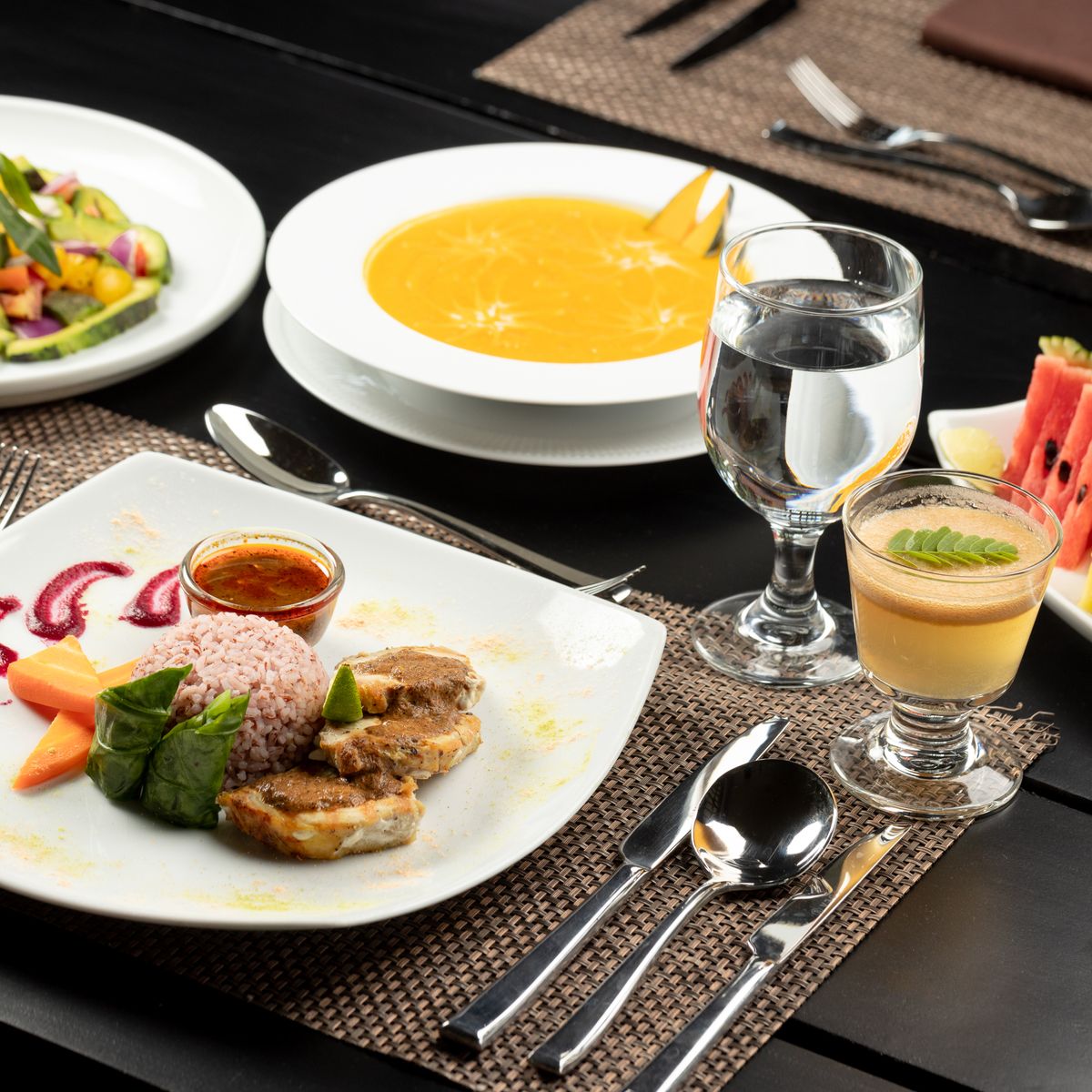 Die ayurvedische Küche des Ayugiri Ayurveda Wellness Resorts, basierend auf frischen, lokalen Zutaten, ist ein wesentlicher Bestandteil des ganzheitlichen Gesundheitskonzepts. Jeder Gast erhält zu Beginn einen individuell vom Ayurveda-Arzt erstellten Ernährungsplan, der auf die Doshas abgestimmt ist. Die ayurvedische Ernährung fördert das Gleichgewicht der Doshas im Körper und unterstützt durch den Einsatz von Gewürzen wie Kurkuma und Ingwer sowie speziellen Zubereitungsmethoden die Verdauung und revitalisiert den Körper.