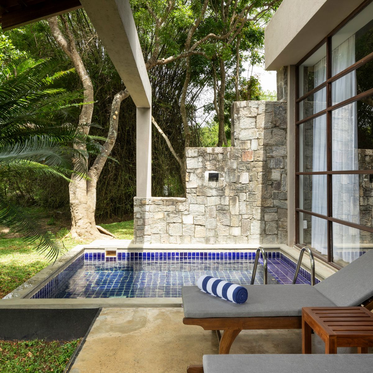 Das Resort bietet 20 exquisite Suiten, jede mit einem privaten Plunge Pool, wahlweise im Innen- oder Außenbereich. Die Einrichtung jeder Suite zeugt von einer liebevollen Detailgestaltung und schafft eine harmonische Atmosphäre, die zur Entspannung einlädt. Die Suiten beeindrucken mit ihren weitläufigen, grünen Ausblicken und einem Hauch von Luxus. Freuen Sie sich auf geräumige Wohnbereiche, opulente Badewannen, eine Garderobe mit Ankleidebereich und eine friedvolle, private Veranda. Zudem bietet das Resort zwei exklusive Präsidenten Suiten, ideal für Familien oder Gruppen bis zu vier Personen. Diese Suiten sind besonders geräumig und komfortabel, ausgestattet mit zwei Schlafzimmern, einem Wohn- und Essbereich, einer privaten Poolterrasse und einem eigenen Anwendungsraum.