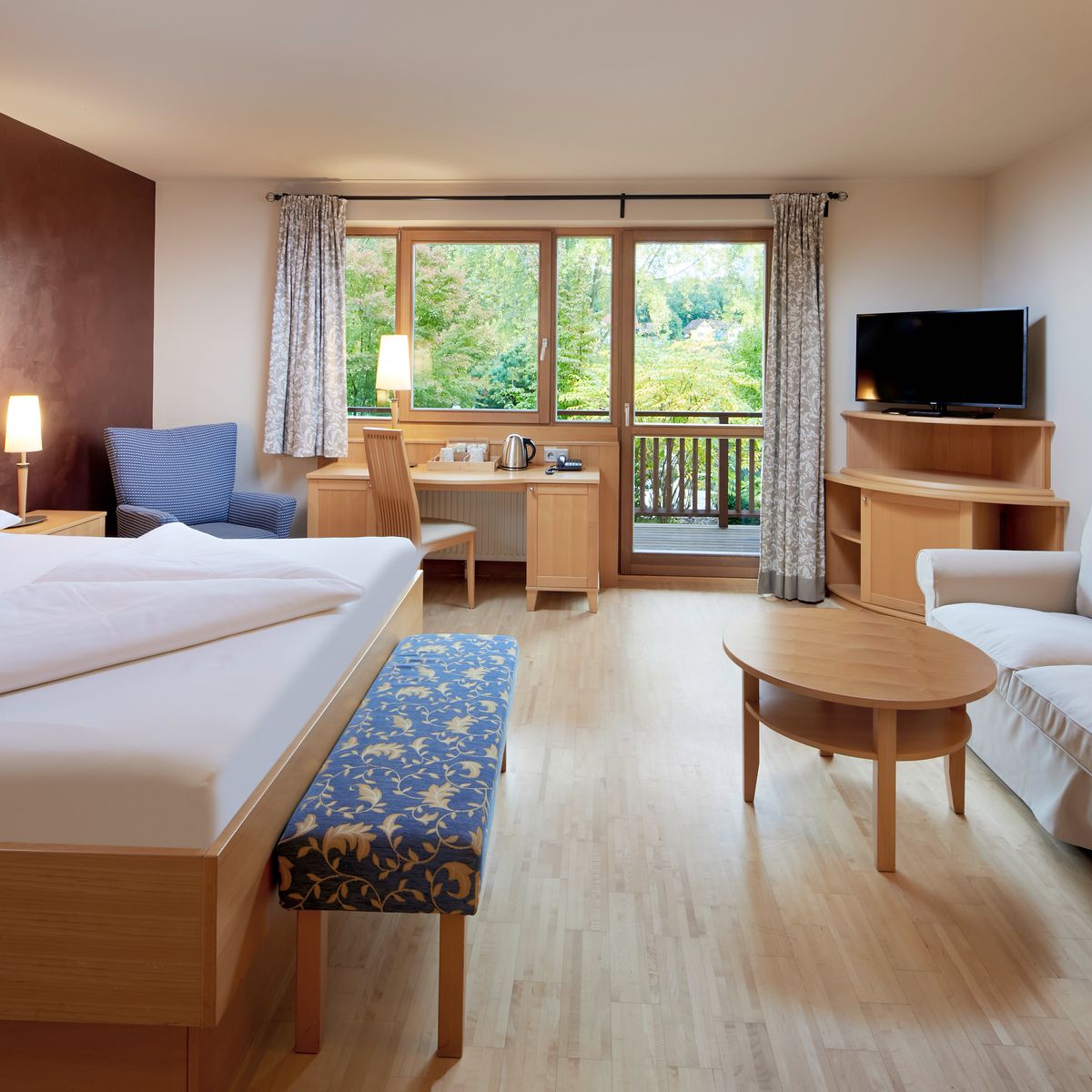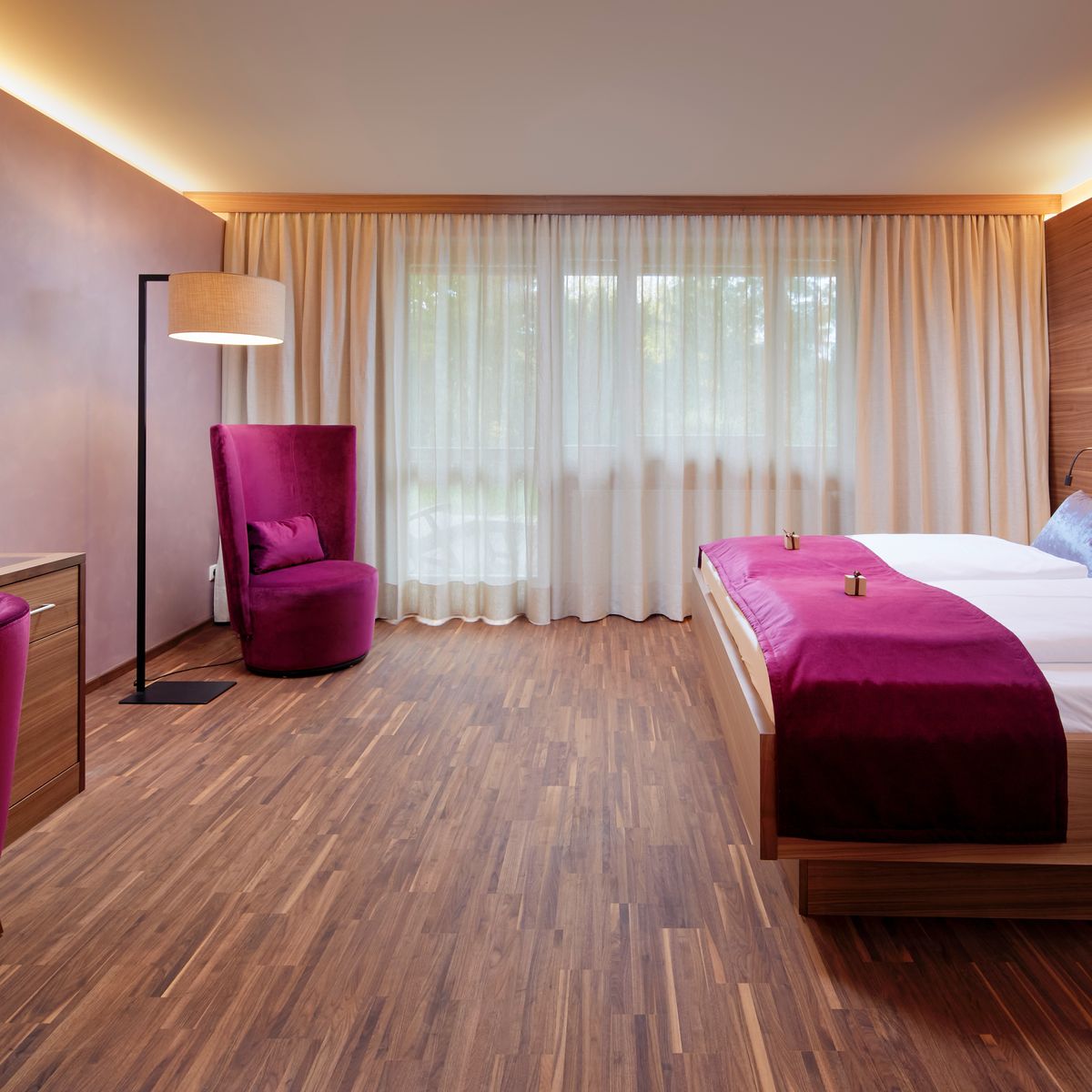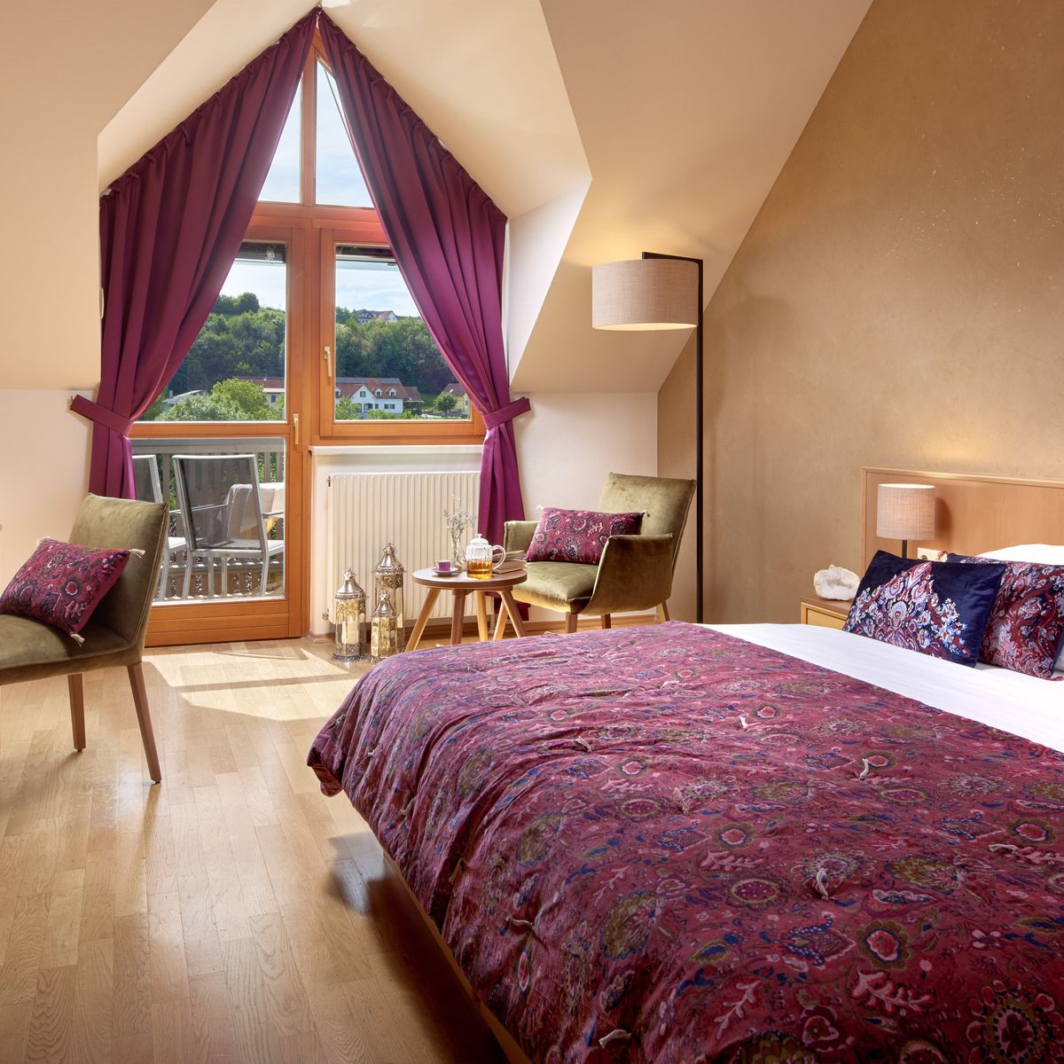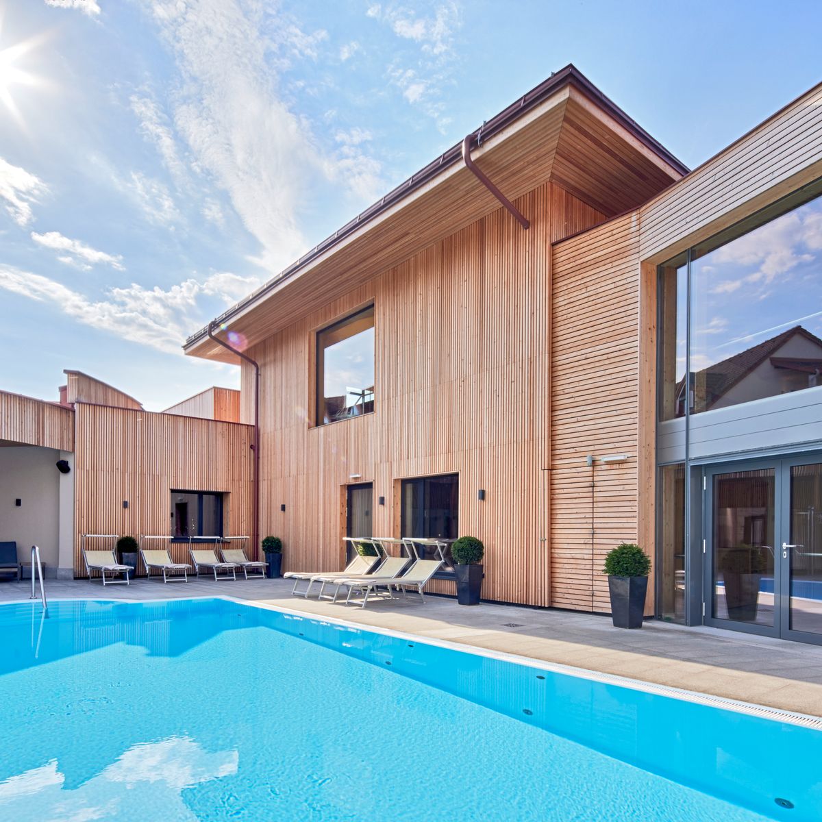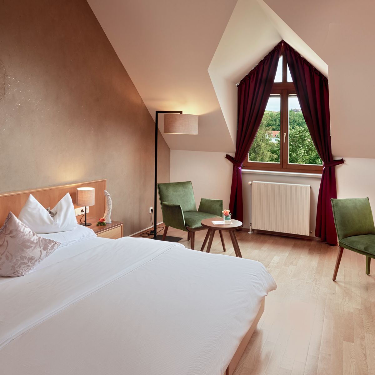 Das Hotel verfügt über 60 helle und geräumige Zimmer und Suiten, die alle bequem per Lift zugänglich sind. Diese Räumlichkeiten dienen als Oasen der Entspannung - sorgfältig eingerichtet mit natürlichen Materialien, warmen Farbtönen und reichlich Tageslicht, welches eine behagliche Atmosphäre kreiert. Die elegante Ausstattung kombiniert modernen Komfort mit dem charakteristischen Charme der Region und reflektiert die gelassene Philosophie des Hotels.