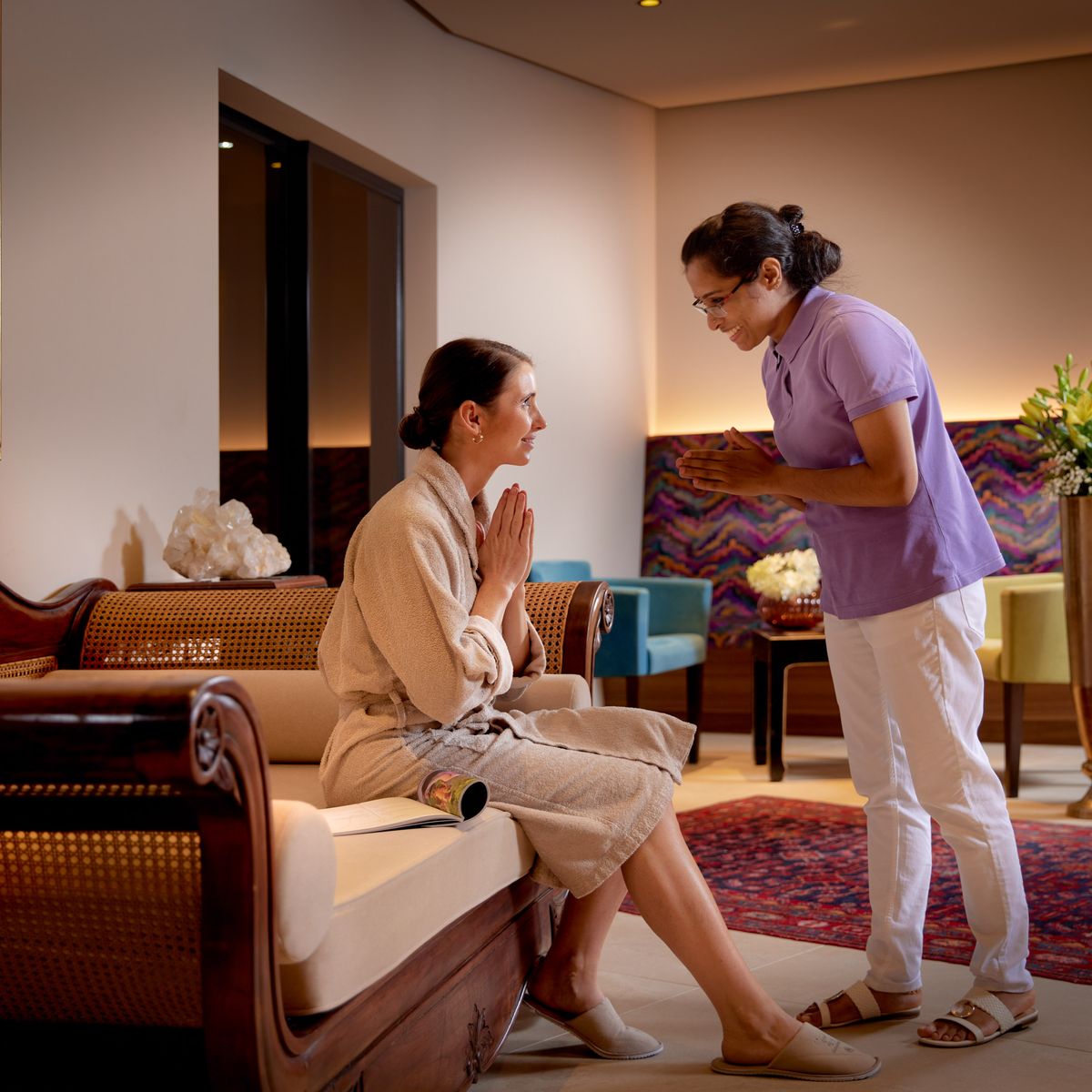 Eingangskonsultation mit Pulsdiagnose und Abschlusskonsultation mit dem Ayurveda-Spezialisten