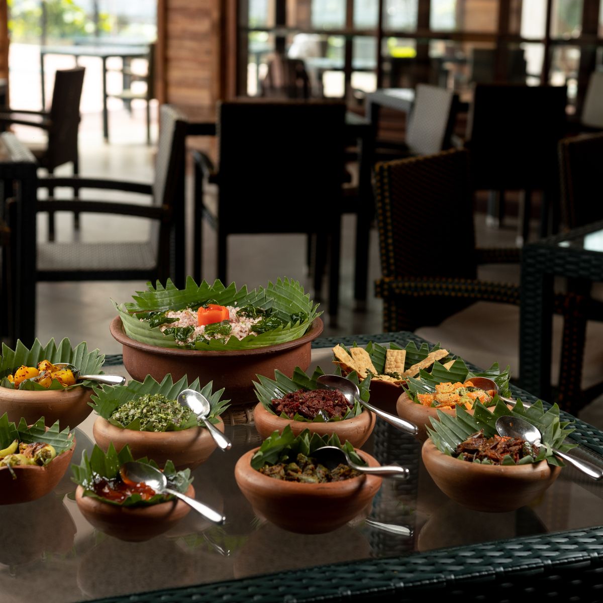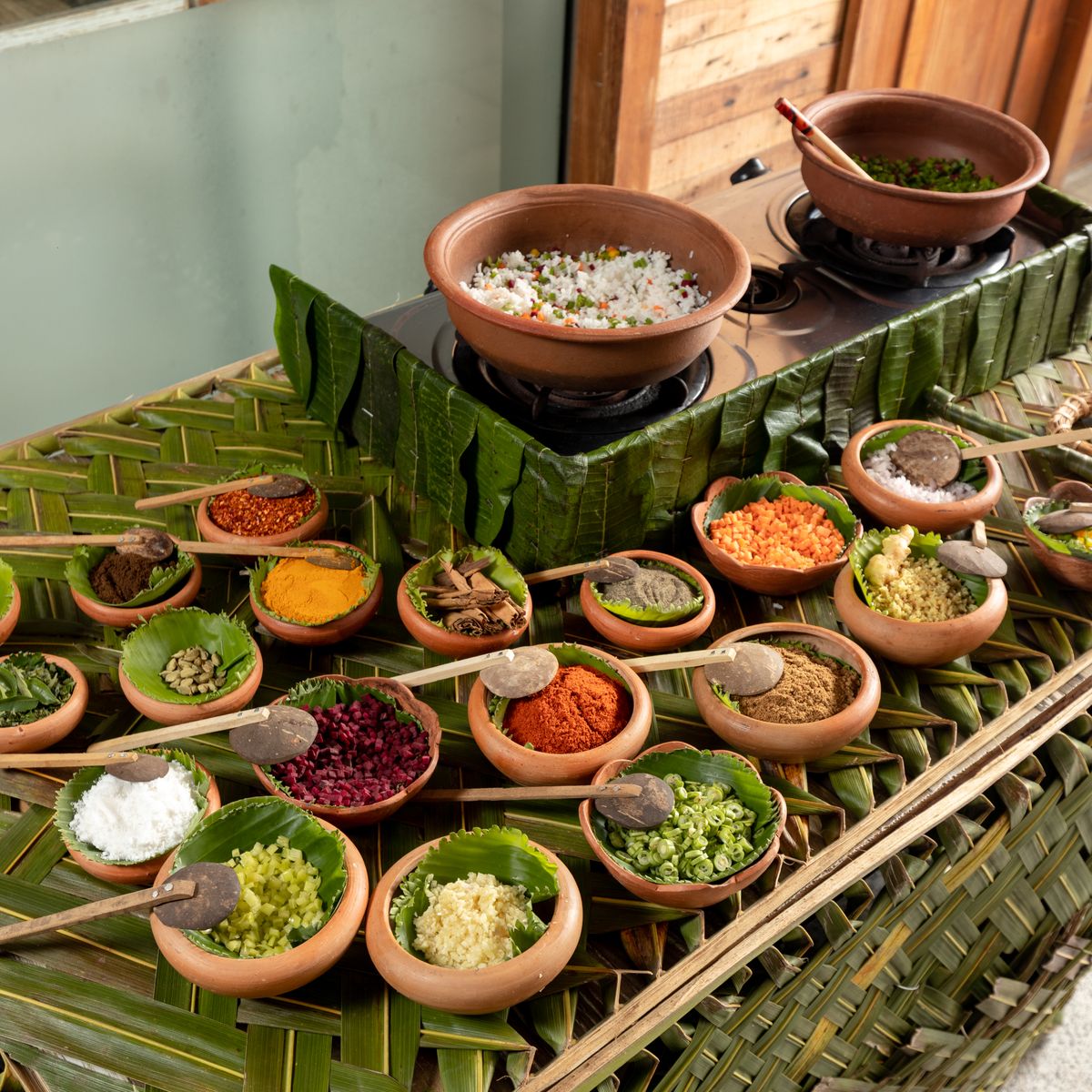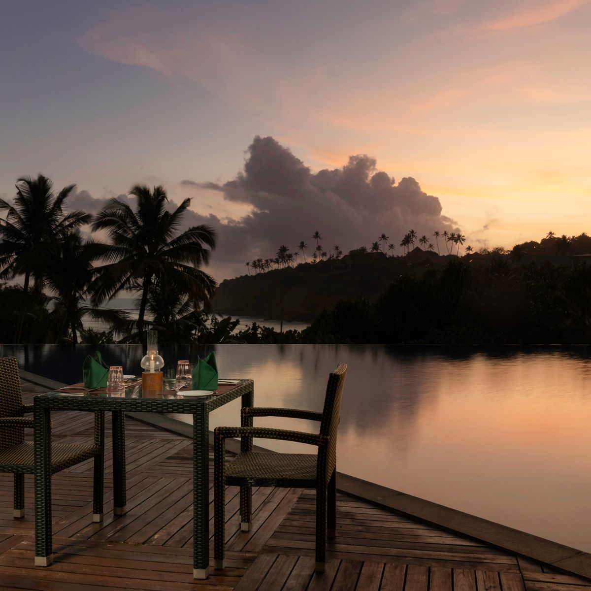 Die ayurvedische Küche wird im Restaurant oder auf der Terrasse mit Blick auf den Infinity Pool und den Indischen Ozean serviert. Genießen Sie doshagerechte, vegetarische Mahlzeiten, die das Körperfeuer "Agni" stärken und die Energie im Körper erhöhen. Frische Früchte, Gemüse-Curries und exotische Kräuter sorgen für Geschmackserlebnisse. Einige Zutaten stammen aus dem eigenen organischen Anbau des Bimbarama Tempelgartens in Ahangama.
