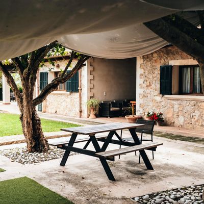 7 geschmackvoll eingerichtete Apartments, jedes in einer der leuchtenden Chakrenfarben dekoriert und nach den beliebten Stränden der Ostküste Mallorcas benannt. Fünf Apartments befinden sich im Erdgeschoss, zwei weitere im Obergeschoss. Jedes Apartment bietet ein eigenes Bad, eine voll ausgestattete Küche und einen gemütlichen Wohnbereich mit Sofa. Eine private Terrasse lädt zum Entspannen ein.