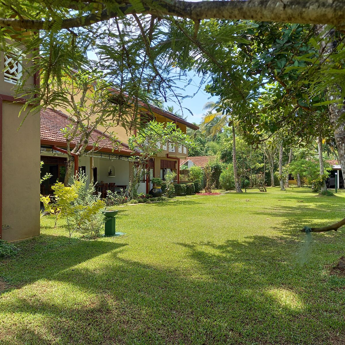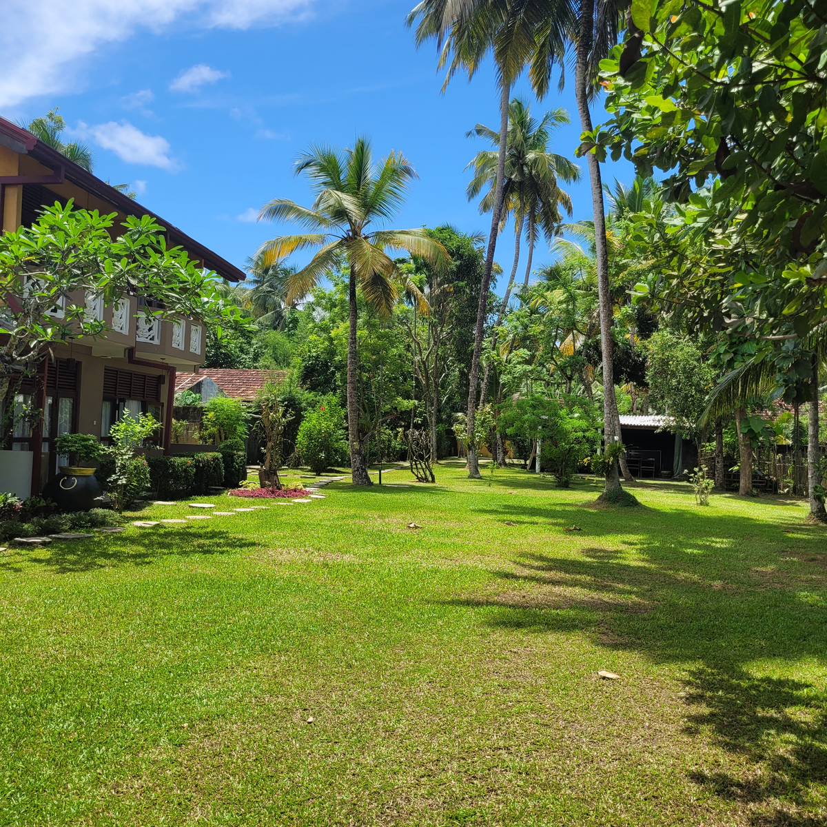 Der ausgedehnte tropische Garten des AyuSuwathaa, ausgestattet mit Hängematten, Liegestühlen und einem Pool, bietet eine ideale Umgebung zum Entspannen. Nach den tiefgreifenden Behandlungen, wenn der Wunsch entsteht, die Umgebung zu erkunden, steht eine Vielzahl von Möglichkeiten zur Verfügung. Die Lage des Hotels ermöglicht es, Kosgoda bequem zu erkunden. Ob nachmittägliche Ausflüge zu interessanten Orten, buddhistischen Tempeln und lokalen Festen, eine Tuk-Tuk-Fahrt zum Richmond Castle oder das Beobachten von Schildkröten - die Region bietet vielfältige Erlebnisse. Auf Anfrage organisiert das Hotel auch Touren nach Galle, Ratnapura, Kandy oder Colombo.