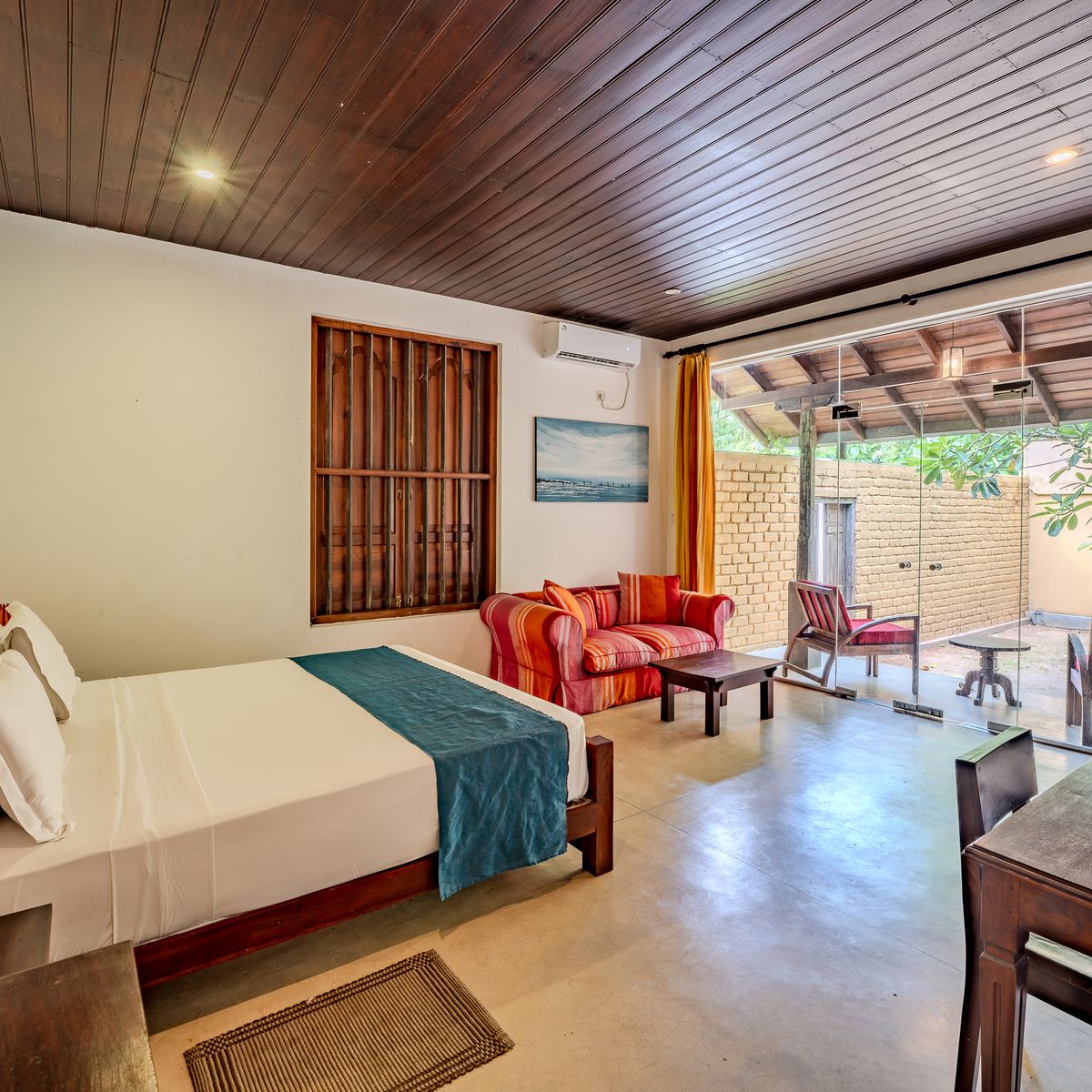 Das Resort befindet sich unmittelbar am Ozean, lediglich 2 km vom Zentrum Mataras entfernt, und bietet sowohl Abgeschiedenheit als auch gute Zugänglichkeit. Die Südküste Sri Lankas ist bekannt für ihre idyllischen Strände, die unberührte Natur und ein breites Angebot an Freizeitaktivitäten. Direkt vor dem Resort haben Gäste die Möglichkeit zu schwimmen, zu schnorcheln oder Kajak zu fahren, und der friedvolle Sandstrand von Polhena ist nur wenige Minuten entfernt. Touren in die nähere Umgebung umfassen Besuche bei historischen Tempeln, lokalen Märkten sowie den Schildkrötenstränden von Rekawa oder Kosgoda.