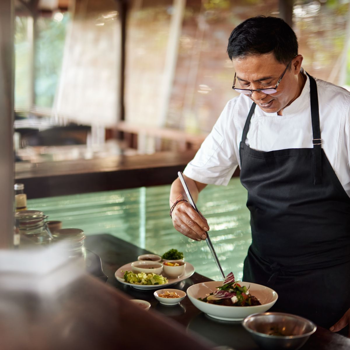 Die Wellness-Küche des Hotels vereint frische, nährstoffreiche Zutaten mit balinesischen und internationalen Einflüssen, um die innere Heilung zu fördern. Im traditionellen javanischen Gebäude des Restaurants "Kudus House" oder im "Glow" Restaurant, das einen offenen Blick auf den Dschungel bietet, werden Gäste mit leichten, kreativen Speisen verwöhnt. Ob vegan, vegetarisch oder speziell abgestimmte Detox-Optionen - jede Mahlzeit zielt darauf ab, Körper und Geist zu harmonisieren und dabei höchsten kulinarischen Genuss zu gewährleisten.