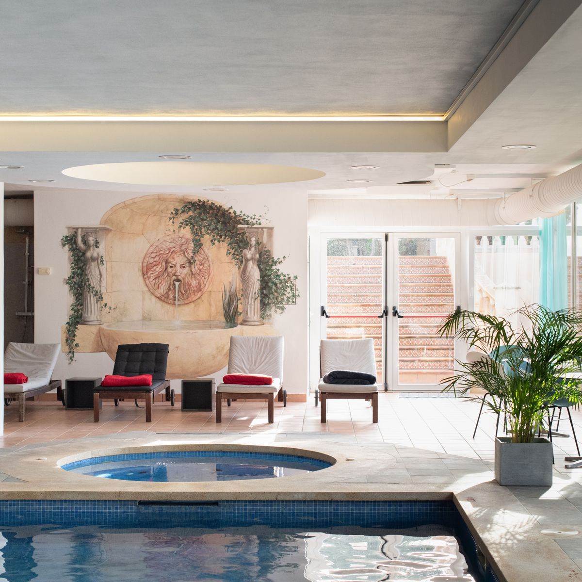 Ein 400 qm großer Spa-Bereich steht Ihnen zur Verfügung, bestehend aus einem Innenpool, einem Ruheraum, einem Spa mit Finnischer Sauna, Bio-Sauna und Infrarotkabine sowie drei Behandlungsräumen für Massagen und Kosmetikbehandlungen, die einen erholsamen und entspannenden Aufenthalt garantieren. Im Außenbereich lädt ein Salzwasserpool mit herrlichem Ausblick zum Verweilen ein.