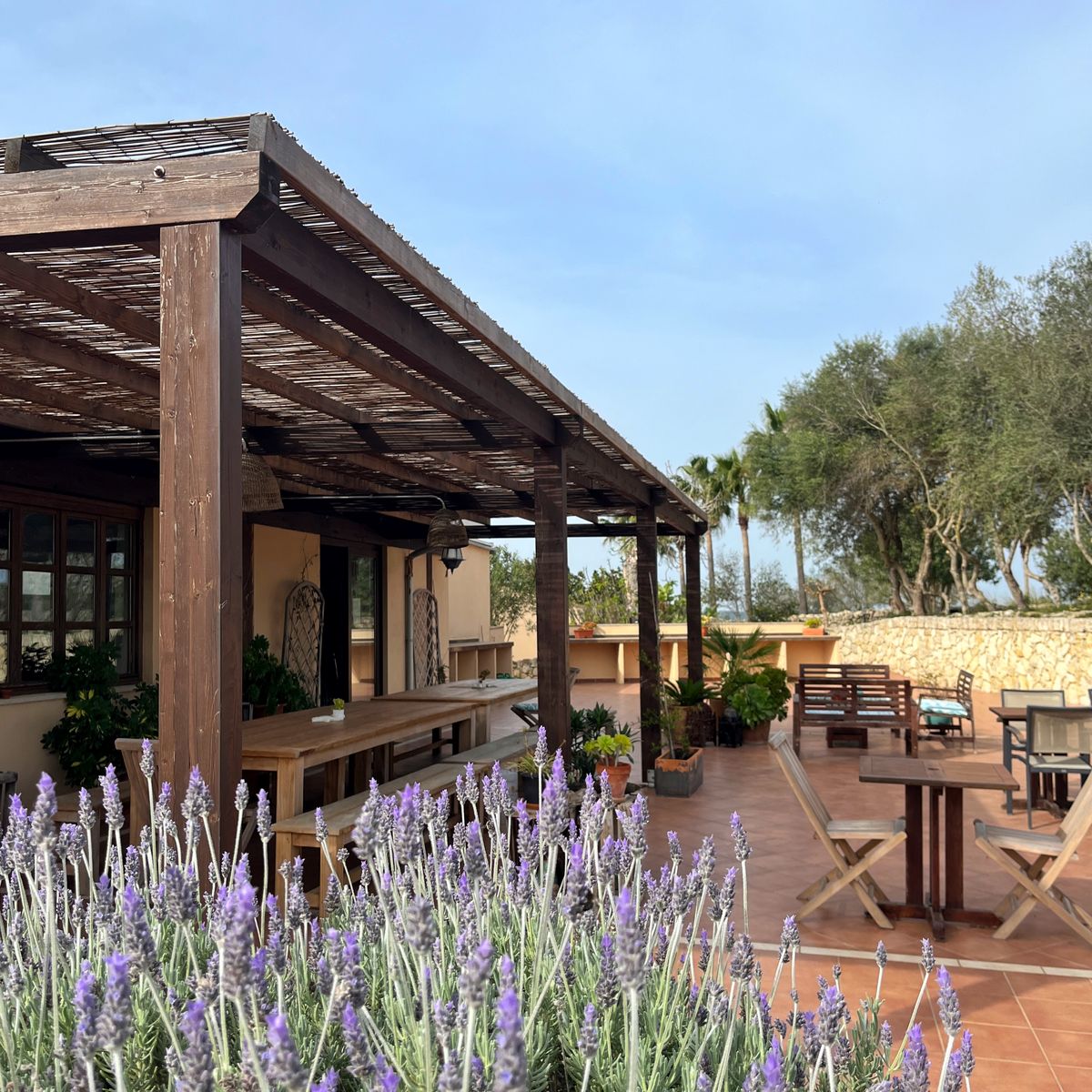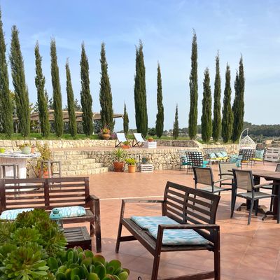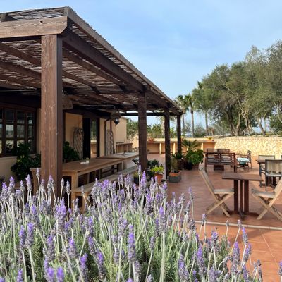 Die Finca, gelegen am Ortsrand von Montuiri, bietet atemberaubende Ausblicke: das Tramuntana Gebirge im Norden, Montuiri im Westen und Oliven- sowie Orangenbäume, soweit das Auge reicht. Sie ist ein Ort der Stille, ideal um sich zurückzuziehen und den Urlaub in entspannter Atmosphäre zu genießen. Der große Salzwasser-Außenpool sorgt für Erfrischung an warmen Tagen. Die Dachterrasse ist ein perfekter Ort zum Entspannen - mit garantierter großartiger Aussicht. Palmen, Hibiskus und Bougainvillea verleihen der Finca ein besonderes Flair. Beim Spaziergang durch den eigenen Olivenhain scheint die Zeit stillzustehen, was auch die Schmetterlinge zu schätzen wissen, die sich stundenlang in den tiefvioletten Blüten verlieren.