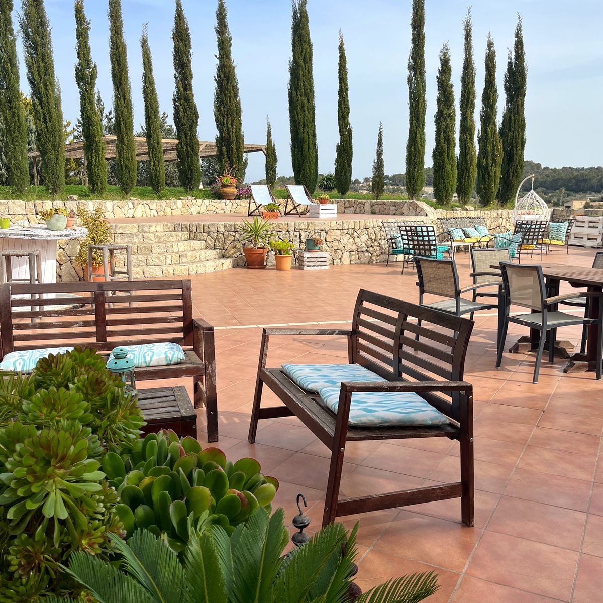 In Ihrer Freizeit bietet sich die Möglichkeit, die Umgebung zu erkunden. Schlendern Sie über die Wochenmärkte, beispielsweise in Montuiri (etwa 15 Gehminuten entfernt) oder nutzen Sie den Shuttle nach Sineu, um die lokale Handwerkskunst auf einem der größten Märkte der Insel zu bewundern (beides optional vor Ort buchbar). Von Montuiri aus lohnt sich auch ein Ausflug mit dem öffentlichen Bus in die Hauptstadt Palma. Einmal wöchentlich wird ein Shuttle zum Strand angeboten (im Juli/August dreimal pro Woche), wo Sie herrliche Strandspaziergänge unternehmen oder in einem Café entspannen können. Zusätzlich wird ein optionaler Ausflug zu einem Olivenhain mit Führung angeboten. Für sportliche Aktivitäten können Sie vor Ort Wandertouren buchen oder Fahrräder leihen. Routenvorschläge werden gerne für Sie vorbereitet. Fahrräder der Finca stehen für kurze Erkundungen zur Verfügung, für längere Touren empfiehlt sich die Nutzung der Fahrräder des lokalen Partners.