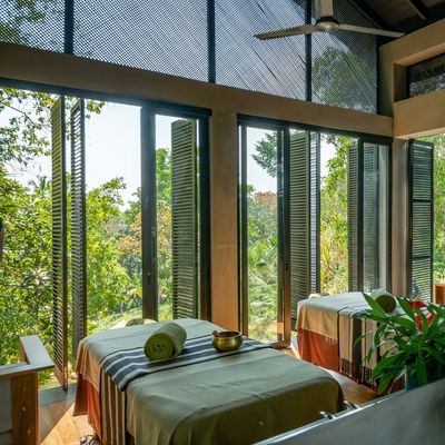 Im Herzstück des Anwesens, dem zweistöckigen Haritha Jungle Spa (ca. 350 qm), bieten sich Ihnen unter der Leitung von zwei Ayurveda-Ärzten, unterstützt von einem Spa Manager und mehreren Therapeuten (Ayurveda & Yoga), personalisierte Wellness-, Signature- und Ayurveda-Anwendungen. Das Spa verfügt über vier Behandlungsräume mit bodentiefen Fenstern, die die sanfte Meeresbrise und das Zwitschern der Vögel hereinlassen, sowie über Jacuzzi, Dampfbad, Kräuterbad, Sauna, Emotions-Duschen, Vichy-Dusche und eine Lounge. Zusätzlich werden Akupunktur, Akupressur, Schröpfen, Klangschalenbehandlungen und kosmetische Anwendungen wie Mani-/Pediküre angeboten. Die Spa-Produkte bestehen überwiegend aus natürlichen Zutaten, teils lokal oder aus dem eigenen Garten, teils aus England. Im Spa befindet sich auch das rund um die Uhr geöffnete Fitnesscenter und die Plattform für Yoga und Meditation mit Blick auf den See. Meditation ist auch im örtlichen Kloster möglich. Deutsche Übersetzung bei Konsultation auf Anfrage.