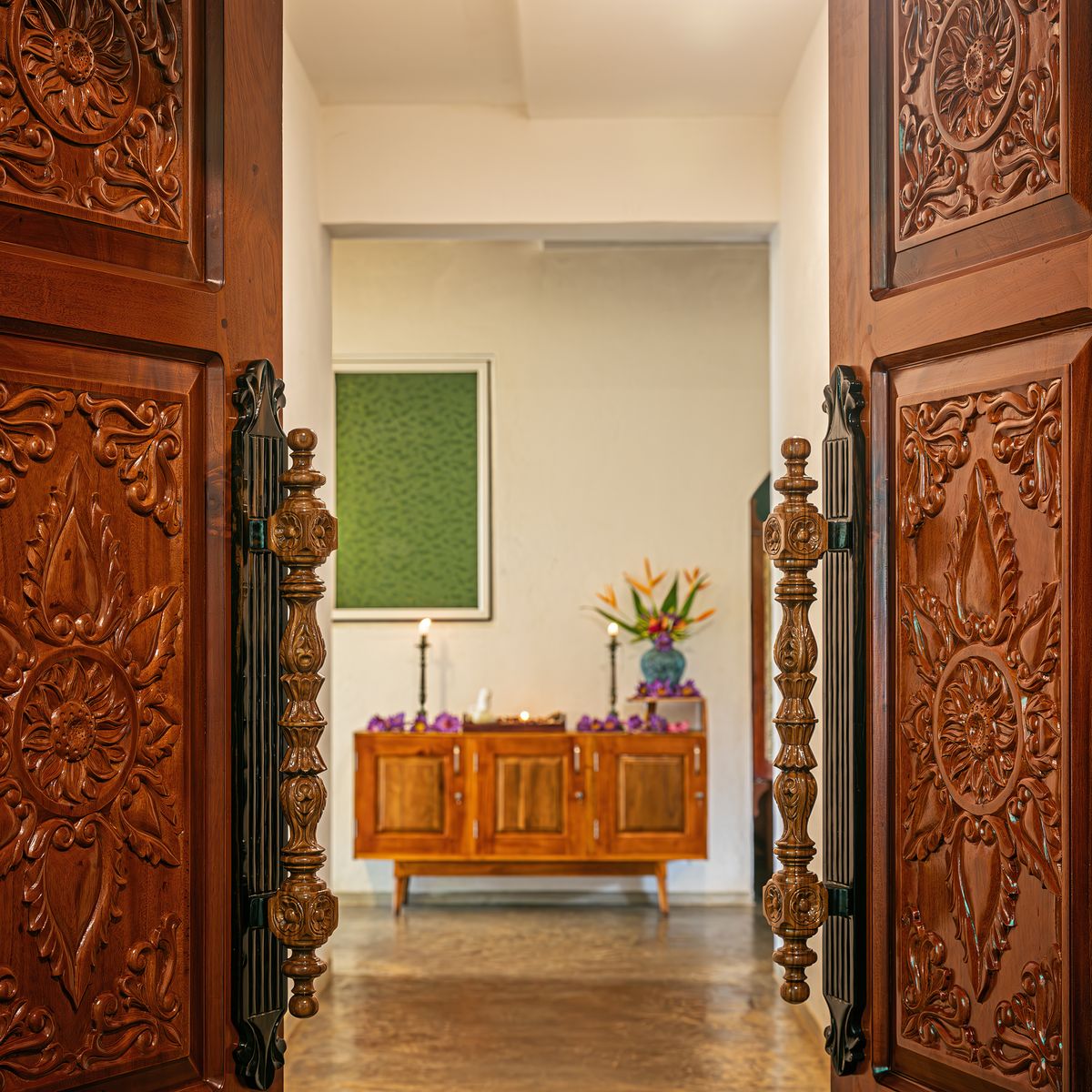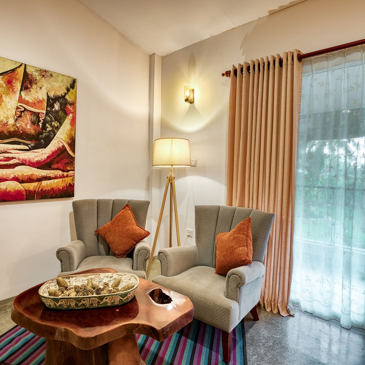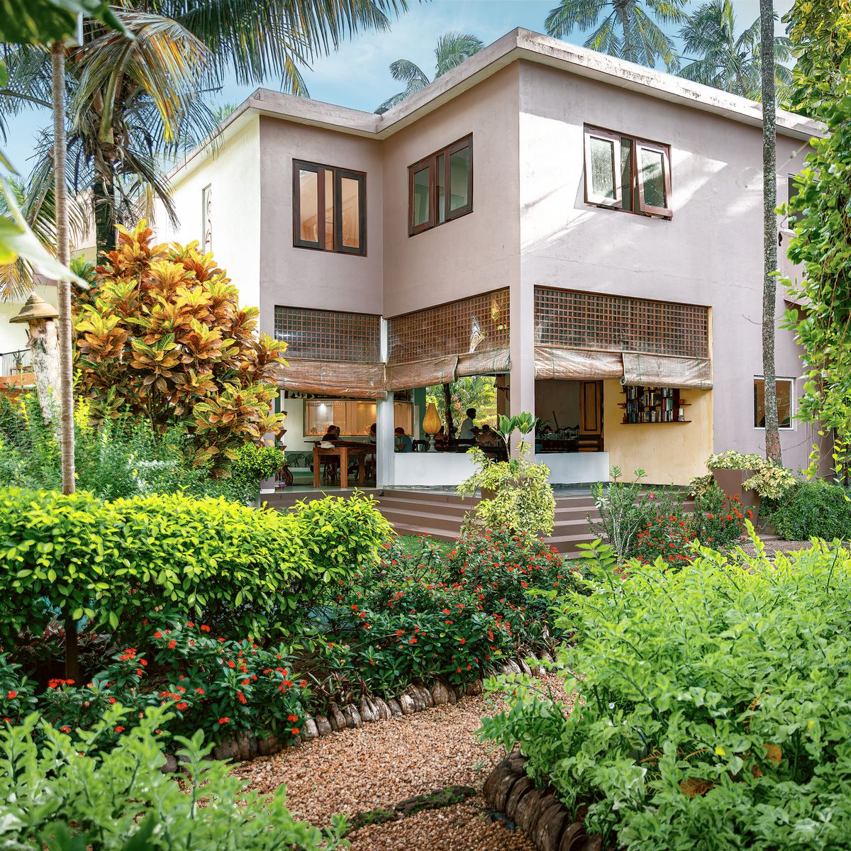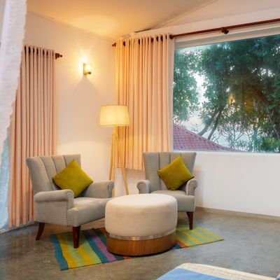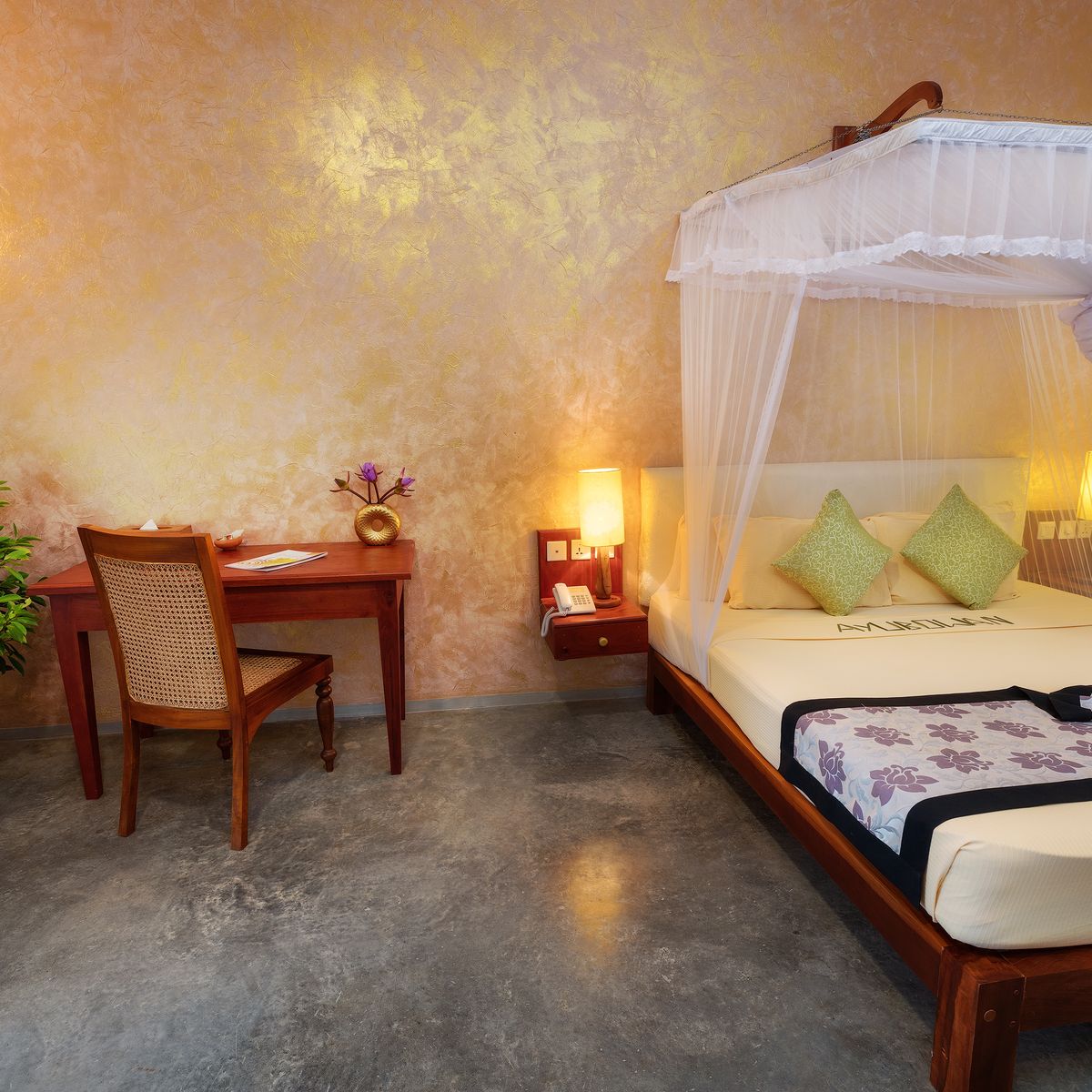 Im offen gestalteten Restaurant im Erdgeschoss, das durch seine kunstvollen Wandmalereien besticht, werden Ihnen singhalesische und ayurvedische Speisen als Menü angeboten, wobei Sie zwischen vegetarischen Optionen und teilweise weißem Fisch wählen können. Einige Zutaten kommen aus dem Gemüsegarten des Hotels. Gäste sind eingeladen, selbst Gemüse zu ernten, welches dann von der Hotelküche zubereitet wird.
