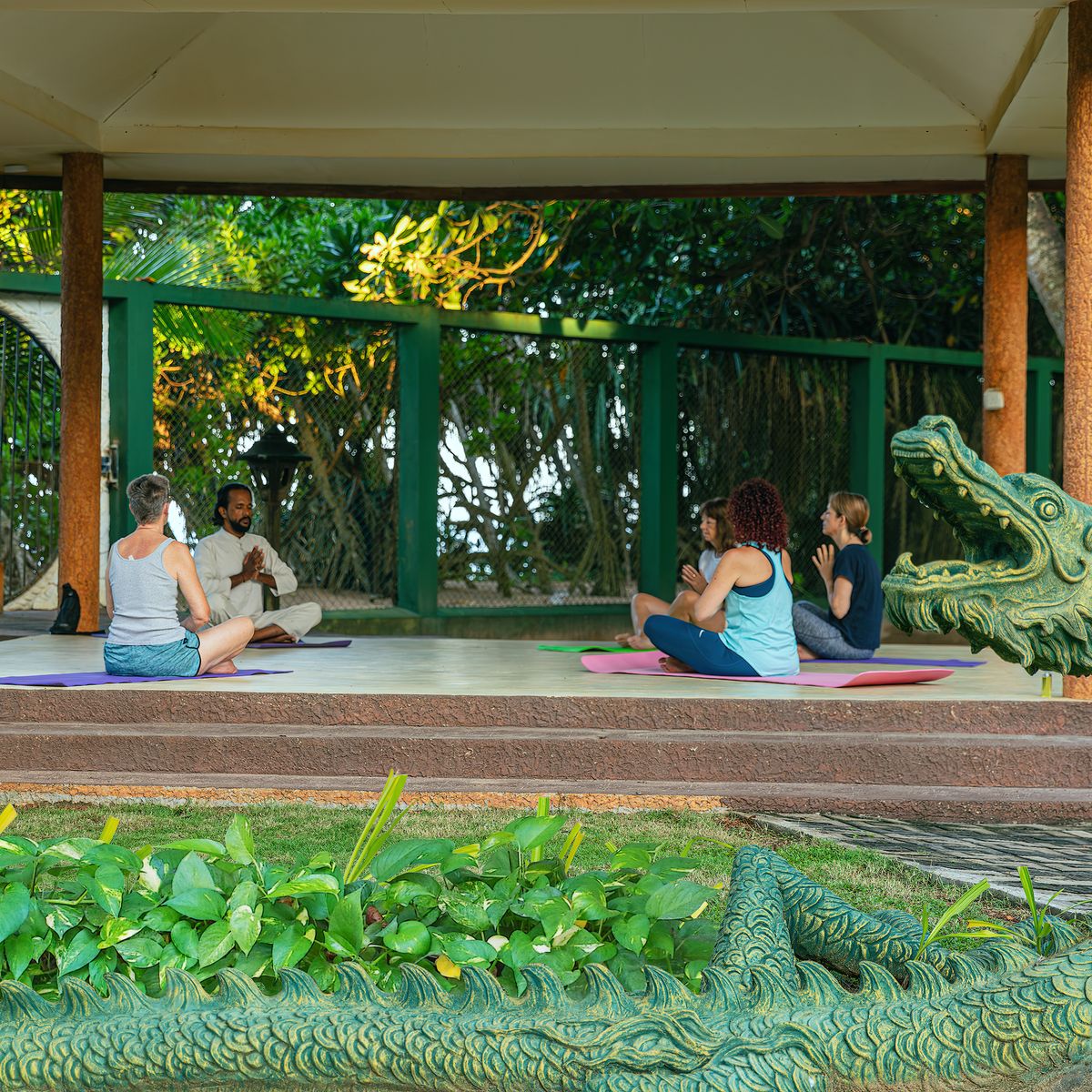 In der weitläufigen Anlage des Hotels ist Yoga und Meditation besonders empfehlenswert, um Körper, Geist und Seele zu harmonisieren und die Wirkung der ayurvedischen Behandlungen zu verstärken. Die Asanas und Atemübungen werden je nach Wetterlage im offenen Yogapavillon im Garten mit Meerblick oder im Meditationsraum im ersten Stock praktiziert.
