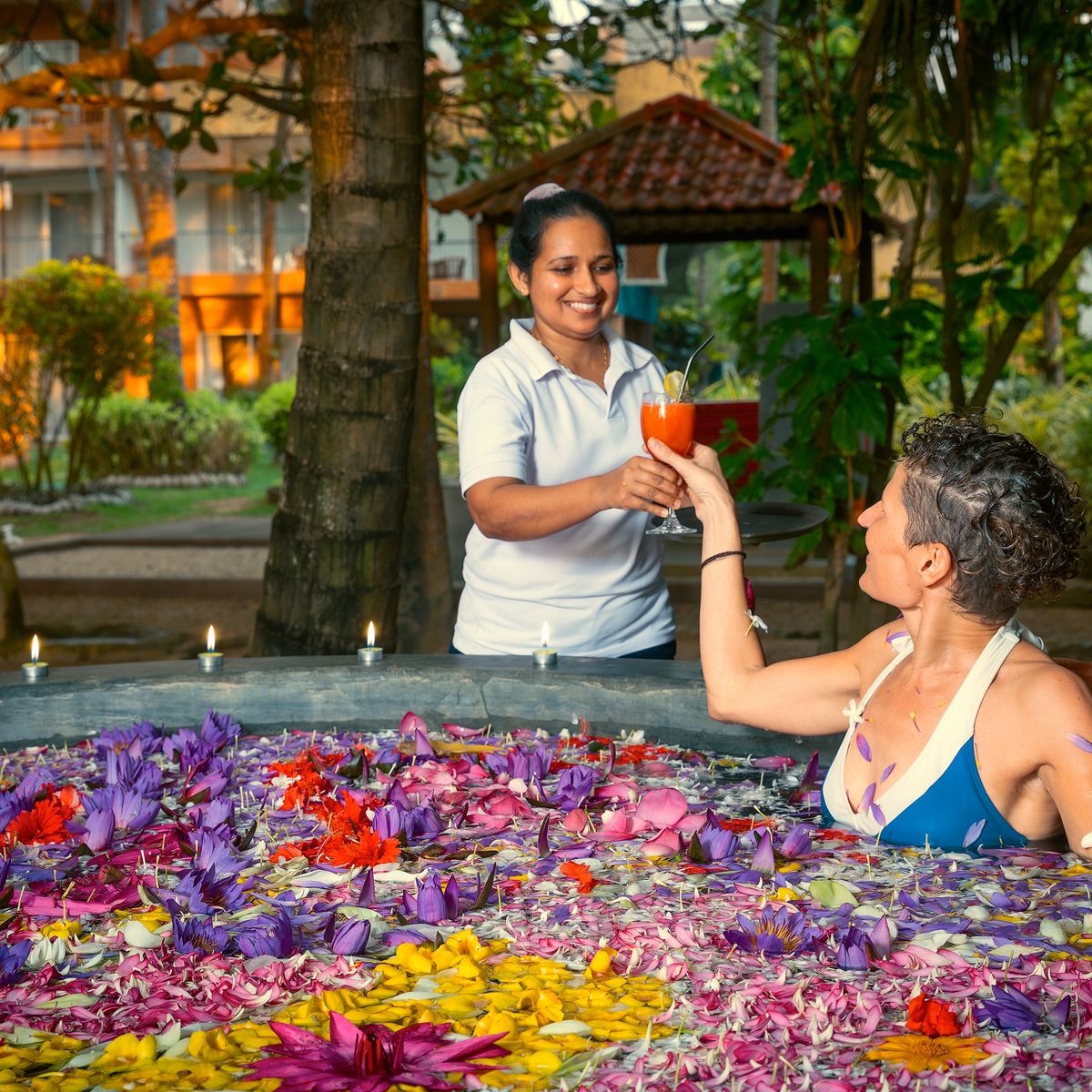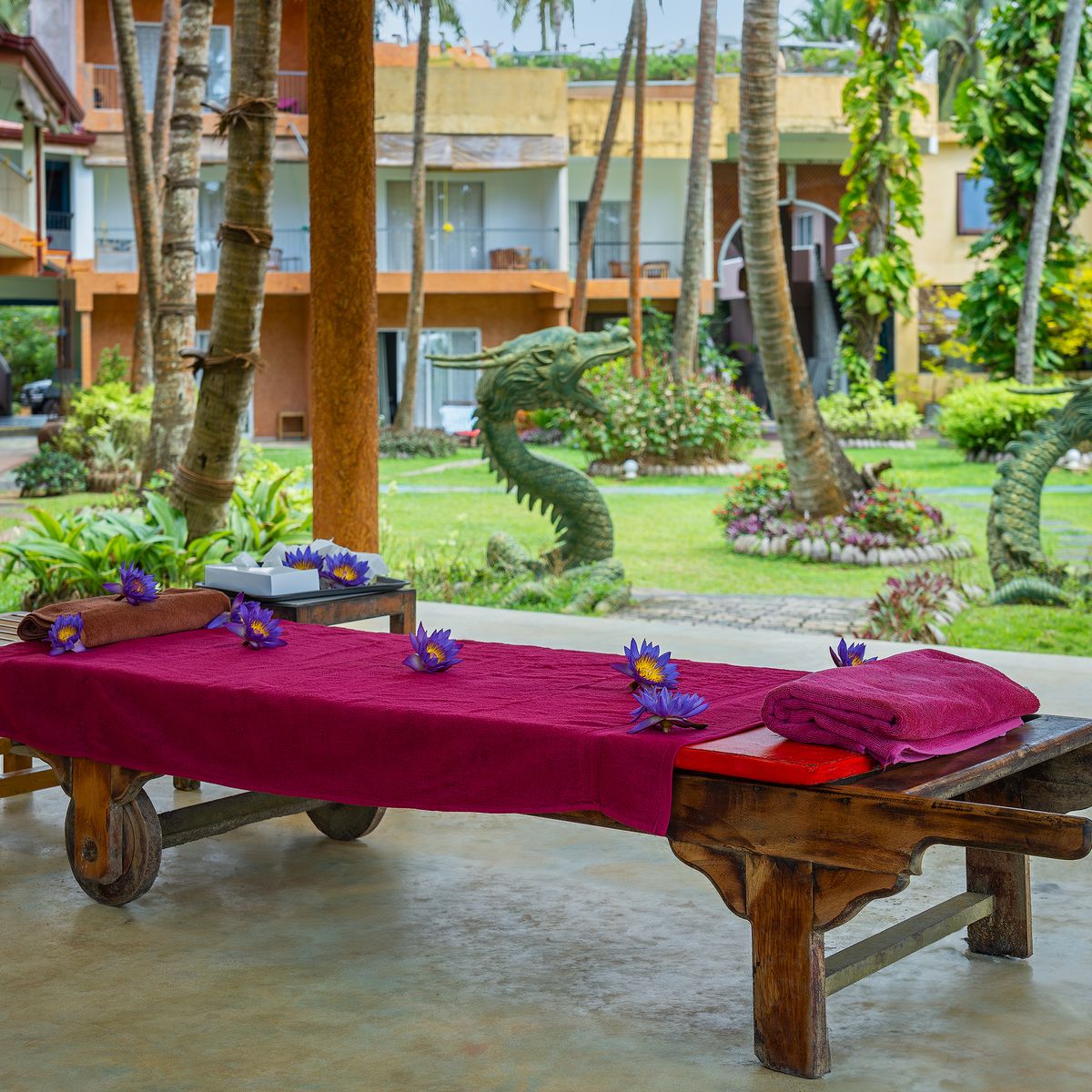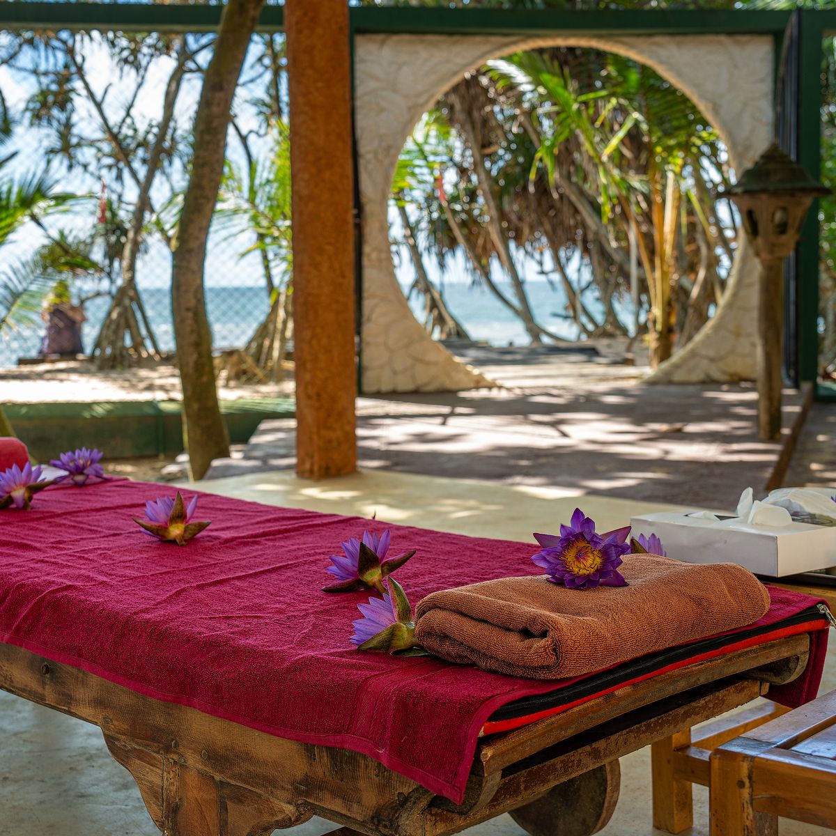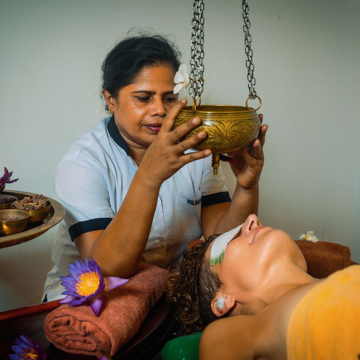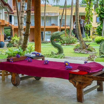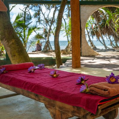 In den sieben Behandlungsräumen des Hotels werden täglich Ayurveda-Anwendungen durchgeführt. Erfahrene Ayurveda Ärzte und Therapeuten arbeiten gemäß der Hiru Philosophie mit großer Sorgfalt und Erfahrung. Bei schönem Wetter finden einige Behandlungen, wie ayurvedische Fuß- oder Gesichtsmassagen oder das abschließende Blumenbad, auch im Garten statt. Dies ermöglicht es Ihnen, während der Behandlungen die natürliche Schönheit des Gartens zu genießen und täglich neue, beeindruckende Kunstwerke zu entdecken.