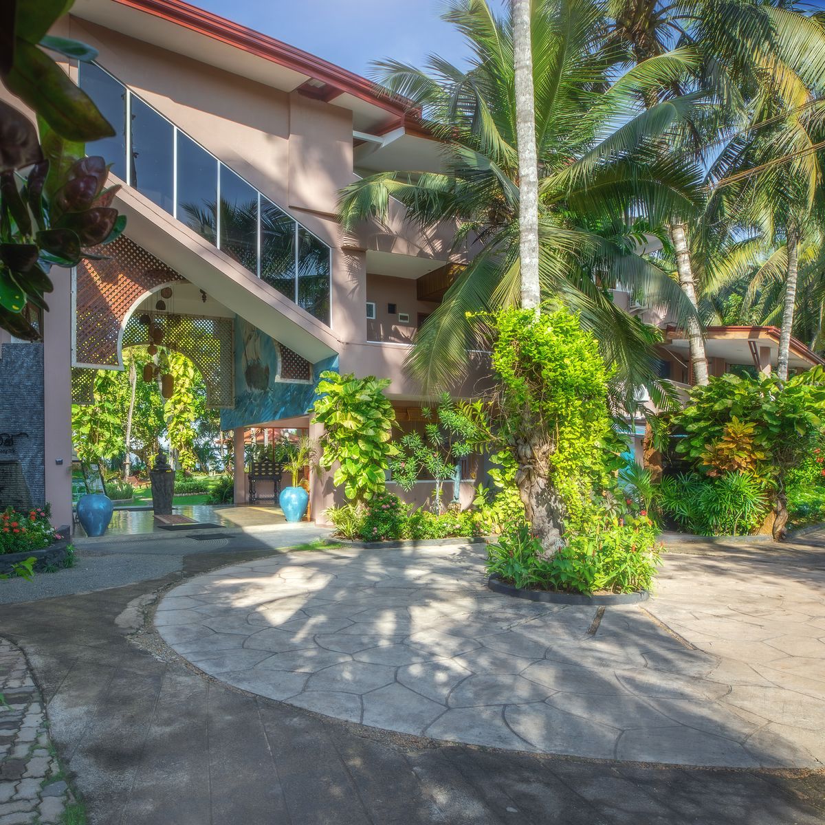 Ursprünglich war geplant, das Resort in der Form des Om Symbols zu errichten. Dies wurde baulich nicht realisiert, jedoch spiegelt sich die Energie des Om in einer beeindruckenden Gesteinsformation im Garten wider. Das Om Symbol, international besonders im Yoga geschätzt, findet oft seinen Platz am Ende von Yogastunden durch das Om Mantra. Es besteht aus den drei Buchstaben A, U und M, die die drei Bewusstseinszustände Wachen, Träumen und Tiefschlaf symbolisieren.