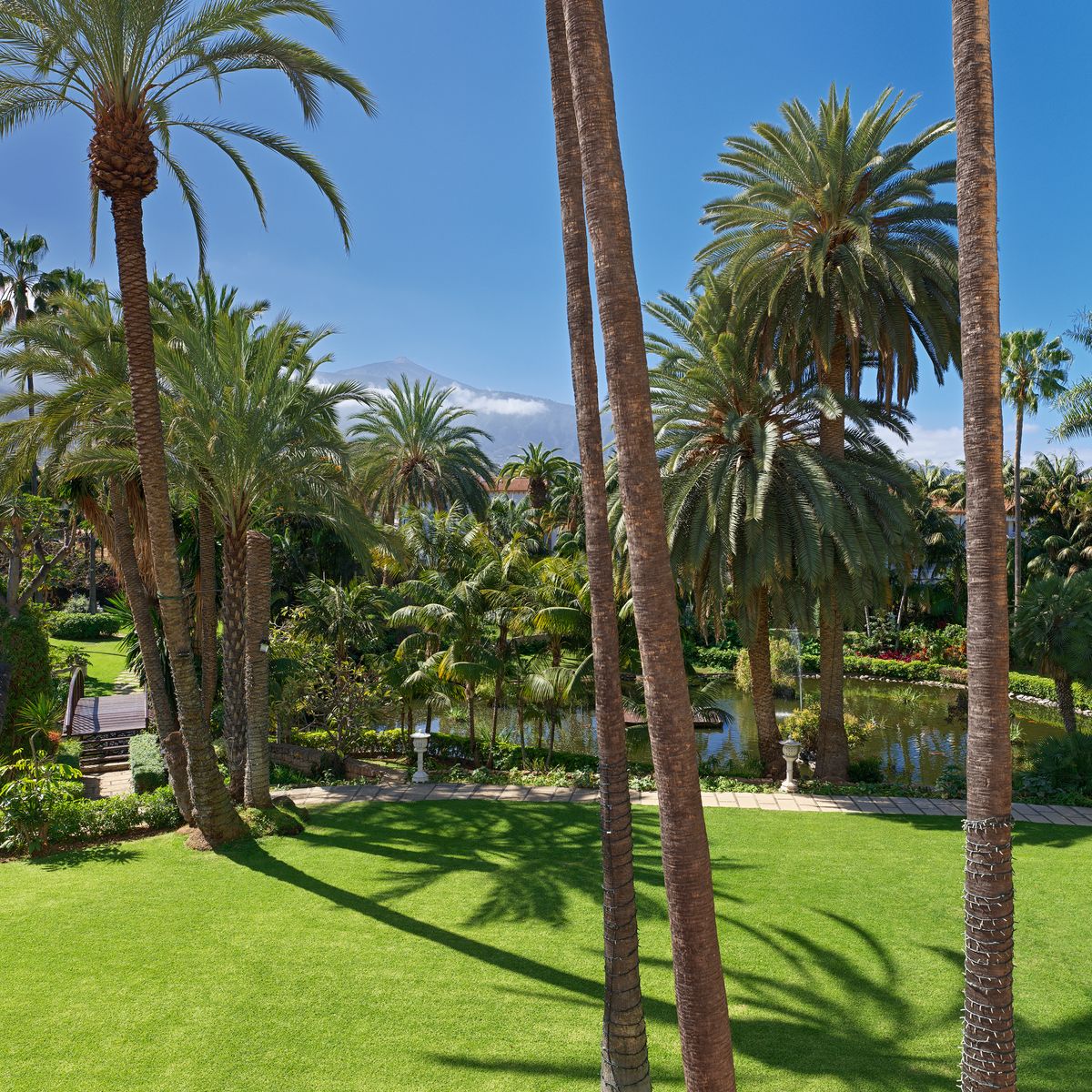 Das Hotel Botánico befindet sich in einer ruhigen Gegend am Rande von Puerto de la Cruz, direkt am Fuße des imposanten Vulkans Teide. Nur ein paar Schritte trennen es vom bekannten Botanischen Garten. Inmitten einer großzügigen, subtropischen Parklandschaft mit einem malerischen Teich (etwa 25.000 qm) bietet das Hotel in der eleganten Villengegend La Paz ideale Bedingungen für eine erholsame Auszeit. Der attraktive Sandstrand ist ungefähr 1,5 km entfernt und lässt sich leicht erreichen, sei es durch einen angenehmen Spaziergang von rund 10 Minuten oder mit dem Shuttlebus des Hotels, der mehrmals täglich verkehrt (4x vormittags, 4x nachmittags). Das Hotel Botánico auf Teneriffa wurde mehrfach für seine Bemühungen im Bereich der Nachhaltigkeit prämiert und unterliegt regelmäßigen Kontrollen. Es gehört zudem zu den "Leading Hotels of the World".