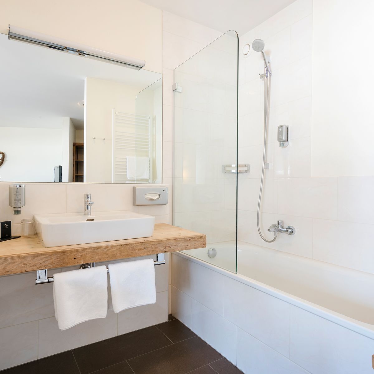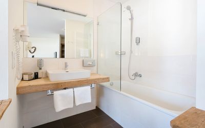 Zugang zur Saunalandschaft, zum Relaxbereich, zur Erlebnisdusche und zur Infrarotkabine im Hotel
