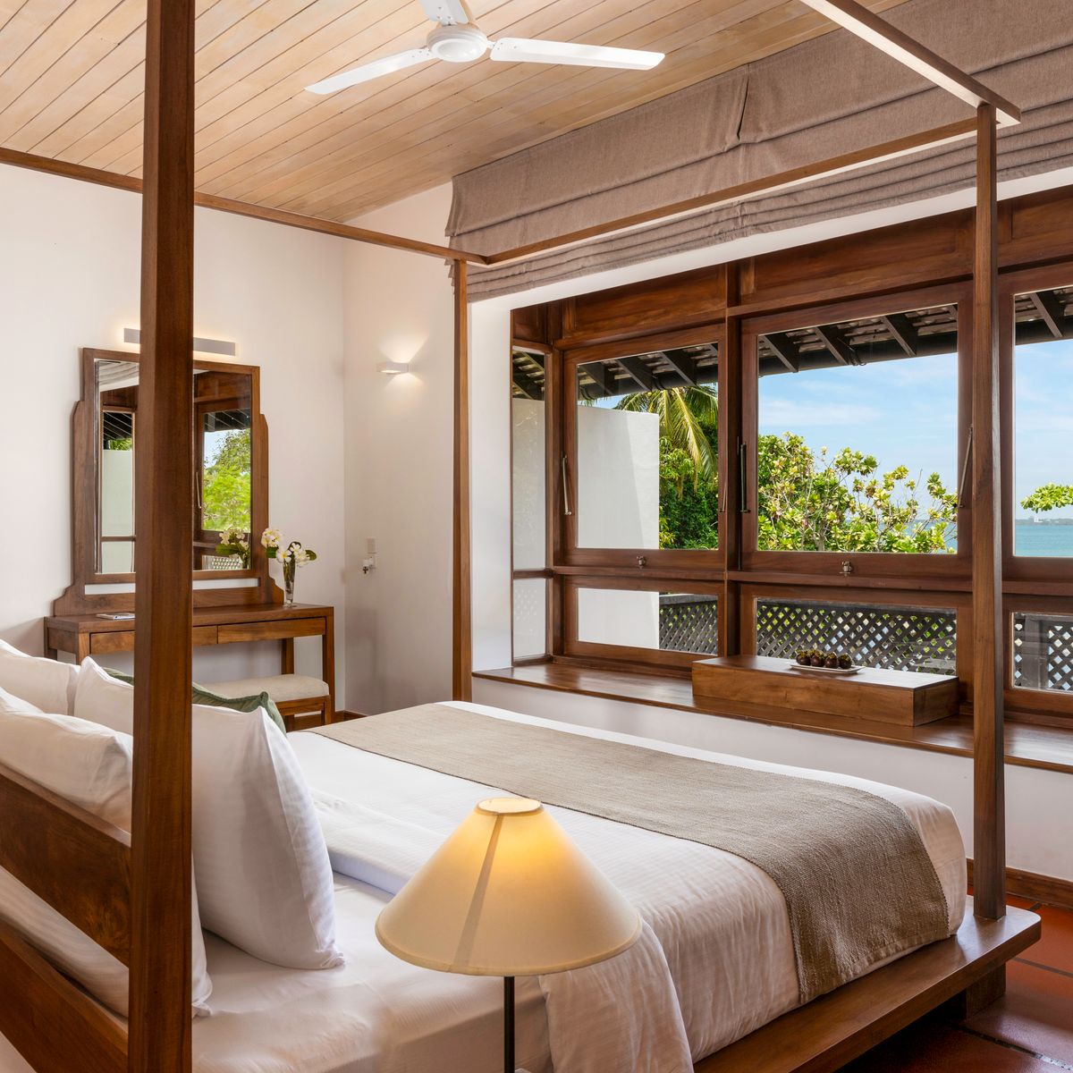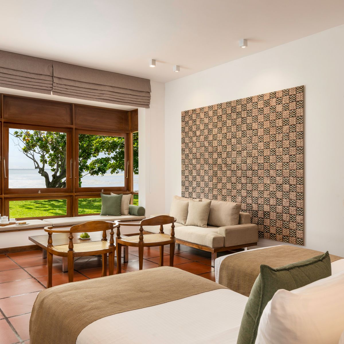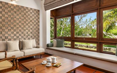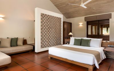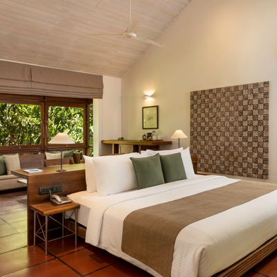 Die 55 Zimmer und Suiten, entworfen von Geoffrey Bawa, sind einige der exquisitesten Unterkünfte im Nordwesten Sri Lankas. Die Luxury Rooms bieten modernen Komfort und Eleganz, teilweise ergänzt durch eine Terrasse, während die Garden Suite mit einem großzügigen Wohnbereich und Blick auf üppige Gärten beeindruckt. Die exklusiven Lagoon Suiten bieten einen herrlichen Lagunenblick, einen Whirlpool und einen privaten Bereich für Massagen, der höchste Privatsphäre garantiert. Einzelzimmer sind Doppelzimmer zur Alleinbenutzung.