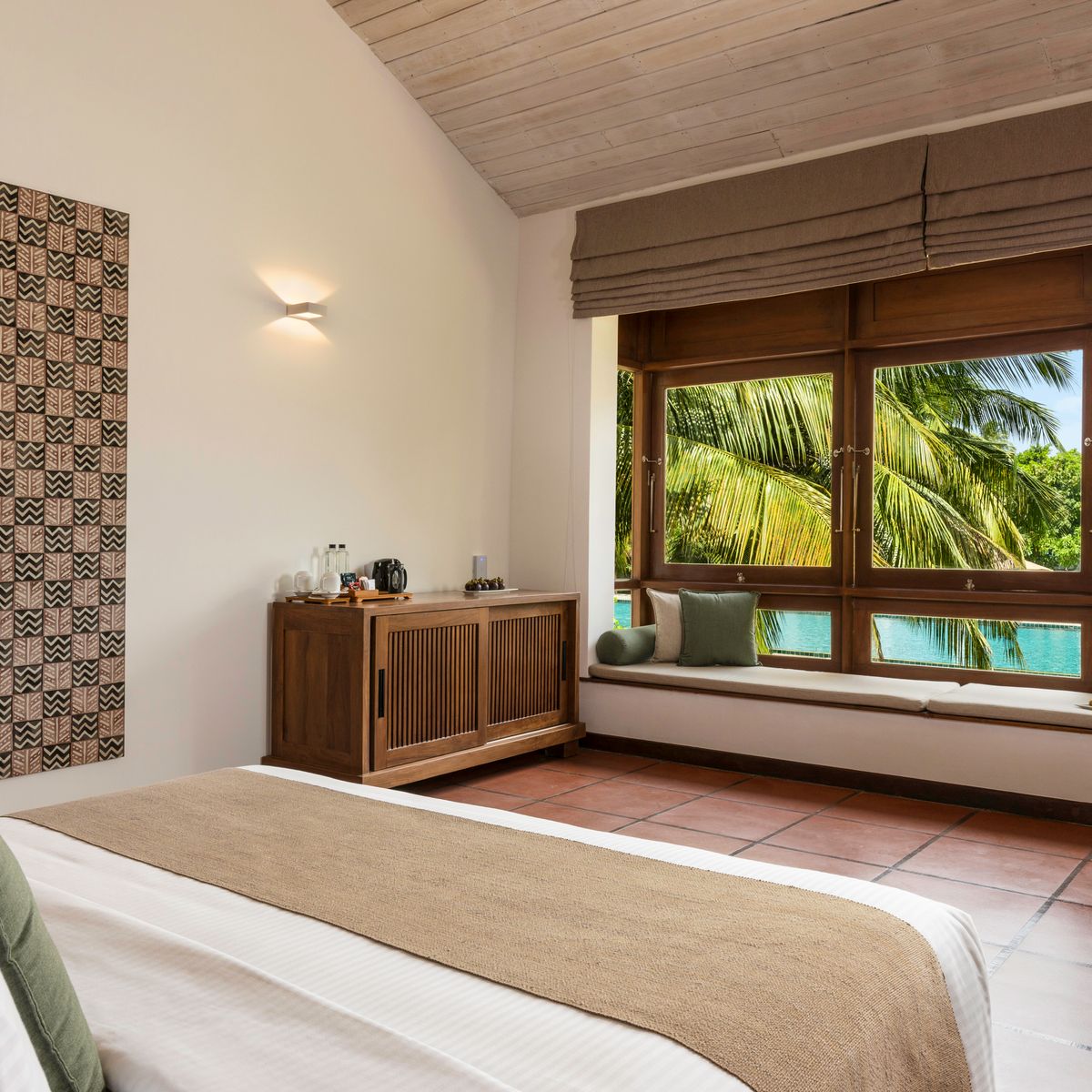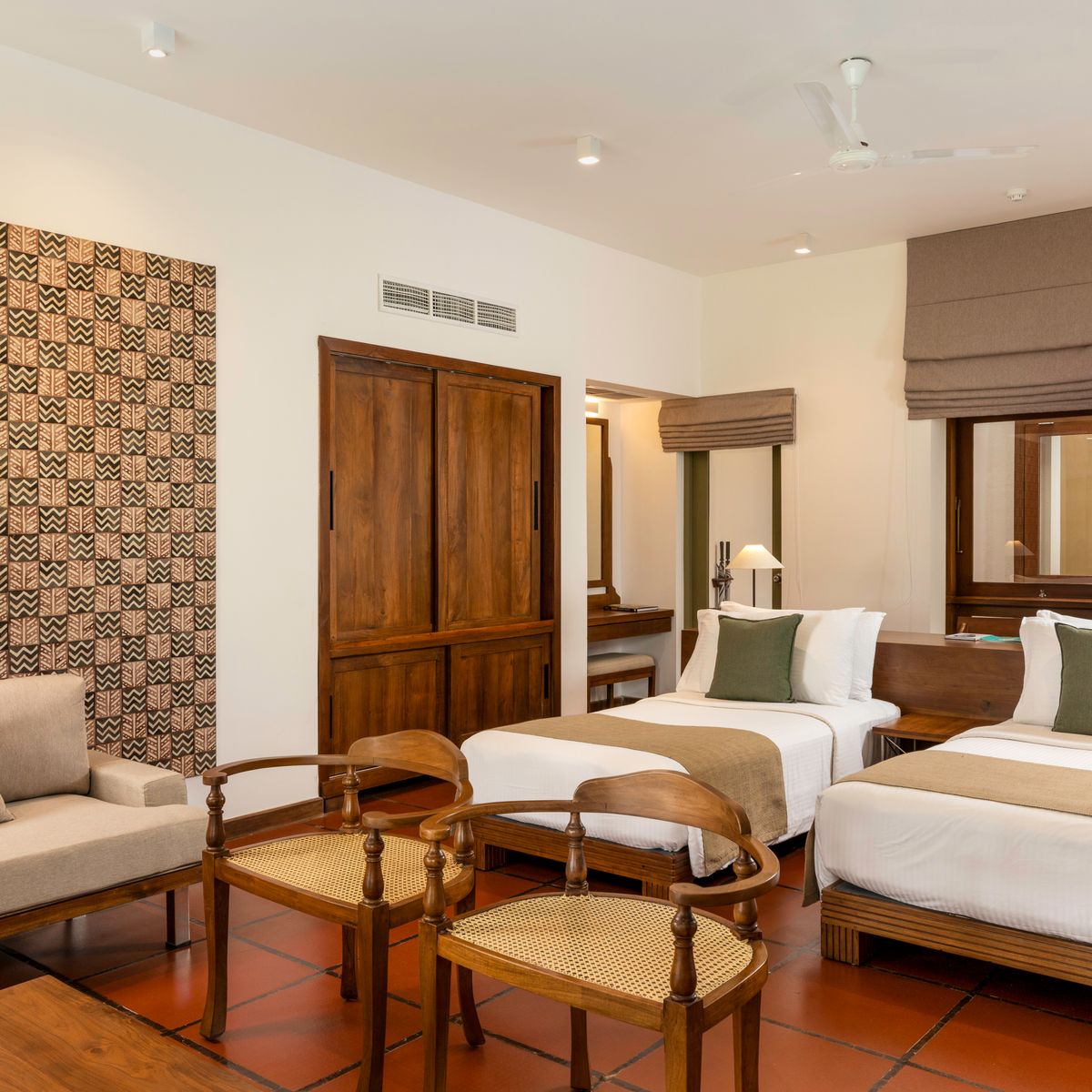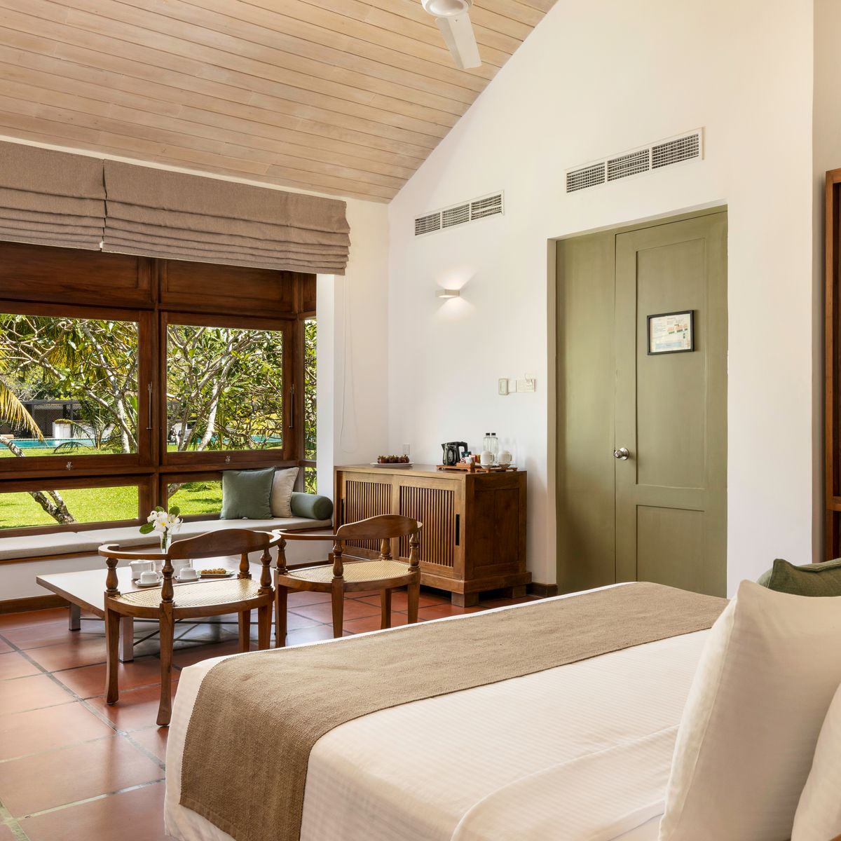 Die 55 Zimmer und Suiten, entworfen von Geoffrey Bawa, sind einige der exquisitesten Unterkünfte im Nordwesten Sri Lankas. Die Luxury Rooms bieten modernen Komfort und Eleganz, teilweise ergänzt durch eine Terrasse, während die Garden Suite mit einem großzügigen Wohnbereich und Blick auf üppige Gärten beeindruckt. Die exklusiven Lagoon Suiten bieten einen herrlichen Lagunenblick, einen Whirlpool und einen privaten Bereich für Massagen, der höchste Privatsphäre garantiert. Einzelzimmer sind Doppelzimmer zur Alleinbenutzung.