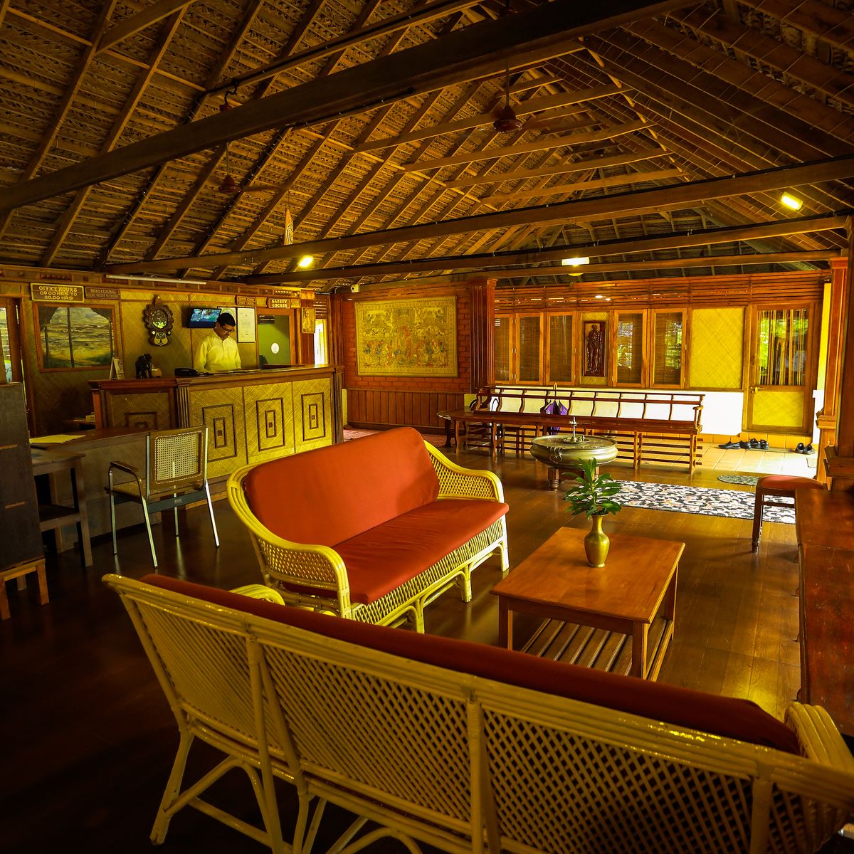 Der goldfarbene Sandstrand, der unmittelbar an das Resort grenzt, lädt zu ausgedehnten Spaziergängen und der Begegnung mit tropischer Natur sowie der traditionellen Lebensart der Einheimischen ein. Das Resort erstreckt sich über etwa 3,5 Hektar und liegt an einer kleinen Lagune, umgeben von einer unberührten Landschaft. Diese ist Heimat für eine Vielzahl von Tieren und Pflanzen, darunter schillernde Schmetterlinge, Eidechsen, seltene Vogelarten sowie Kokos-, Mango-, Jackfruit-, Papaya-, Cashew- und Bananenbäume. Die Harmonie und natürliche Schönheit des Ortes machen ihn zu einem Paradies für Menschen, die den nachhaltigen Schutz unserer Erde schätzen. Der keralesische Baustil des Resorts betont seinen natürlichen Charme. Für den Bau der Gebäude und Unterkünfte, die sich nahtlos in die Umgebung einfügen, wurden lokale, ökologische Materialien wie Kokos, Bambus, Lehm, Sand und ayurvedische Kräuter verwendet. Eine Solaranlage versorgt das Resort mit warmem Wasser und Energie, während eine Biogasanlage Abwasser und Abfälle verwertet. So bietet die Umgebung des Kadappuram ein nachhaltig intaktes Ökosystem für Mensch und Tier.