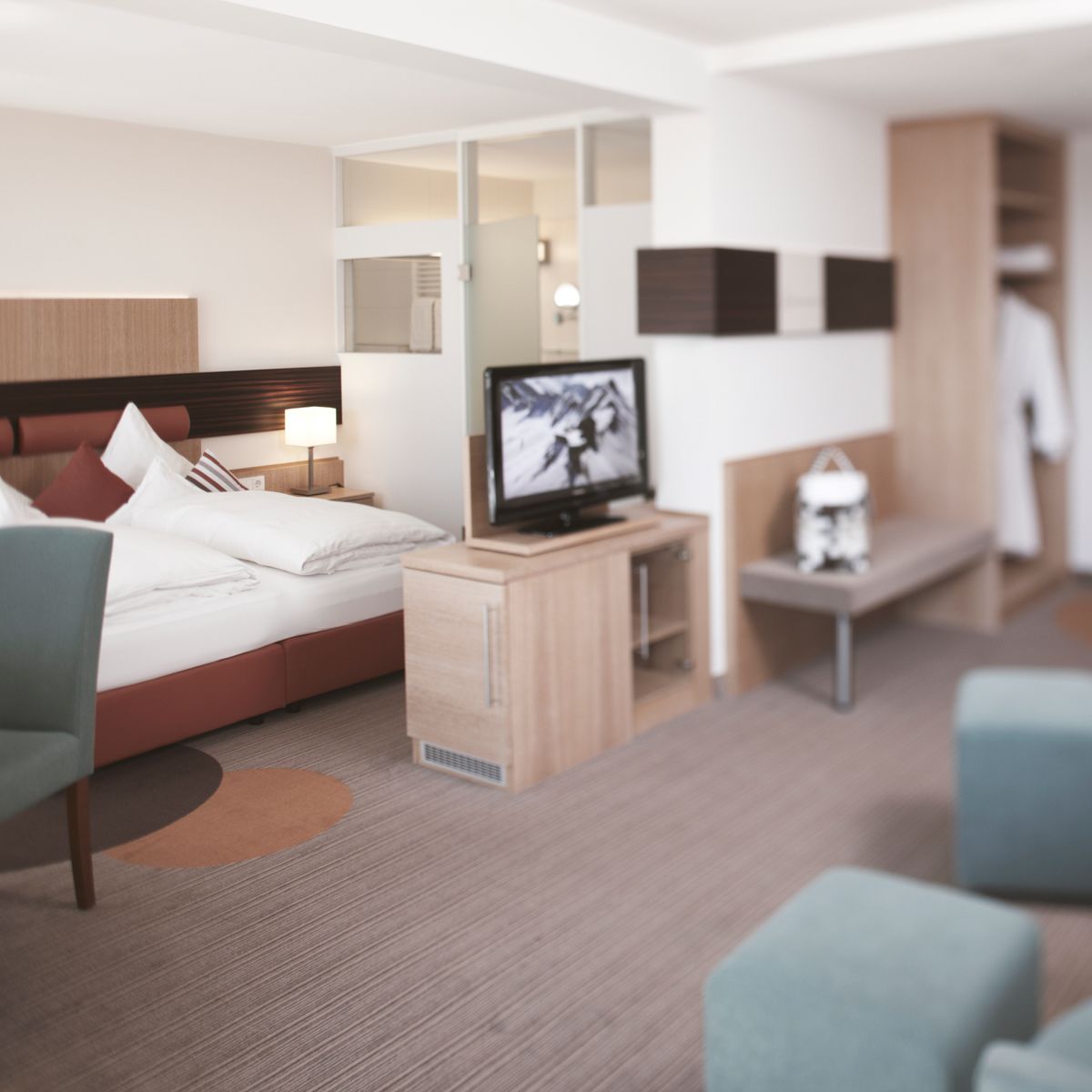 Nutzung des 1.000 qm großen Wellnessbereichs mit Innenpool und Saunalandschaft, Fitnessraum und Bademantel
