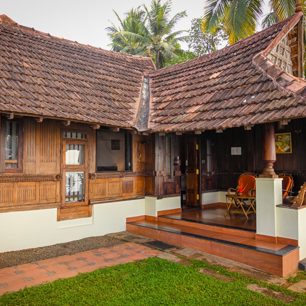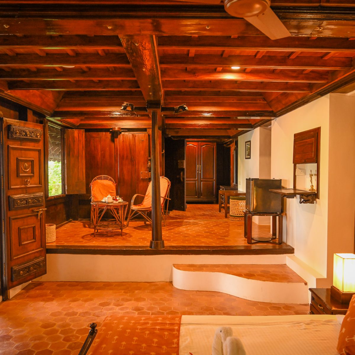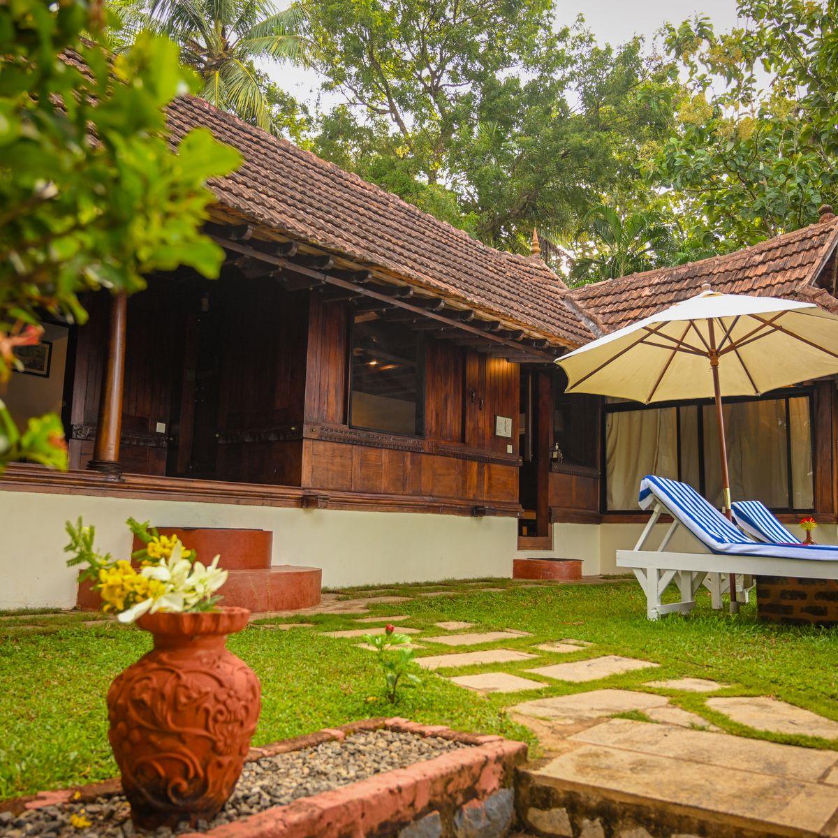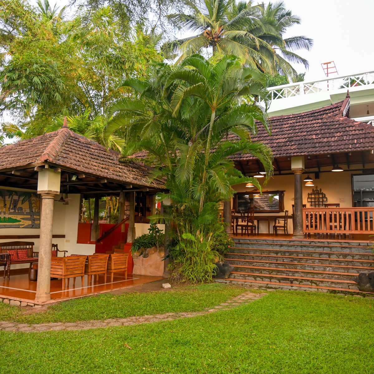 Exklusives Herrenhaus im traditionellen Kerala Stil, auf dem höchsten Punkt des Resorts, mit kombiniertem Wohn- und Schlafbereich sowie 2 Bädern.