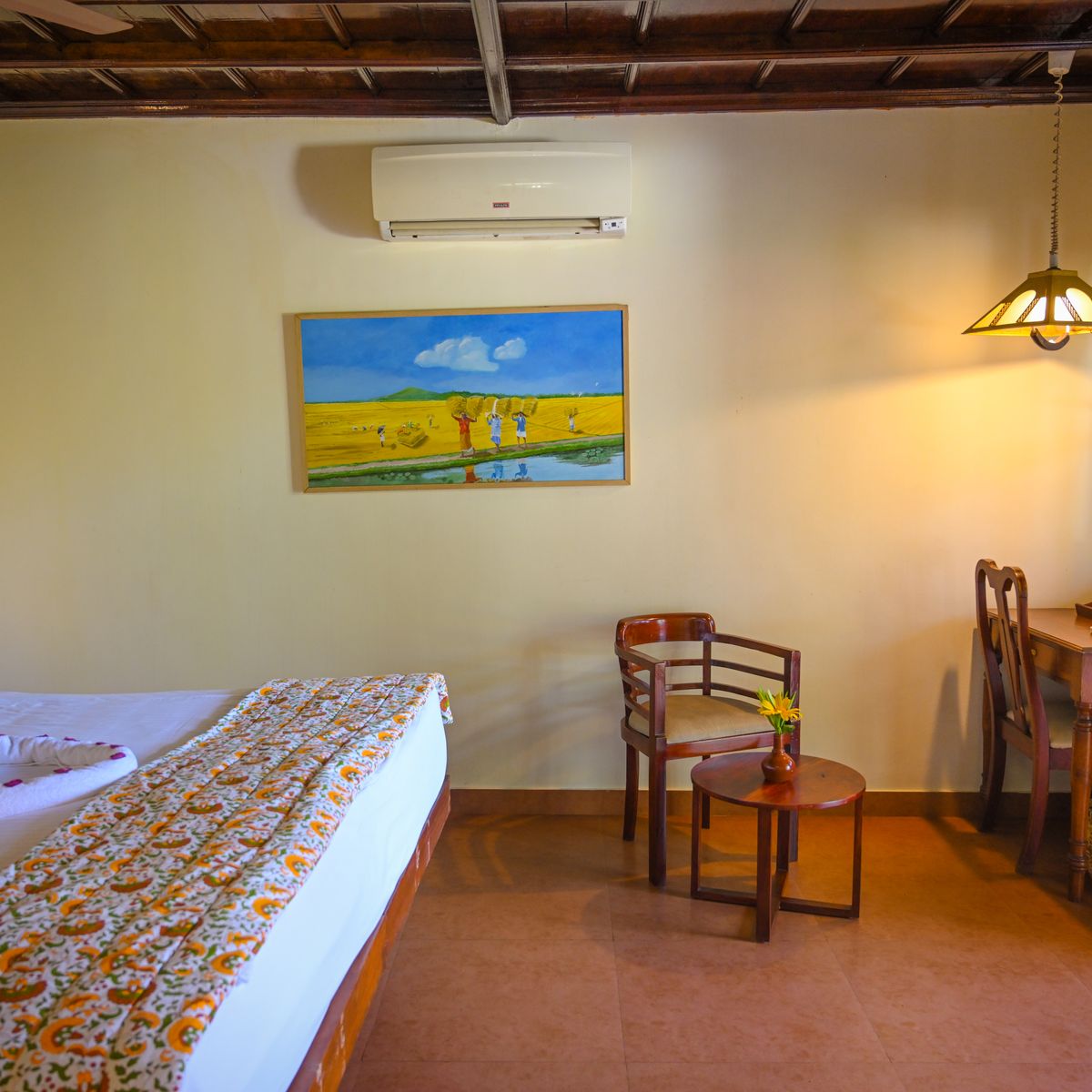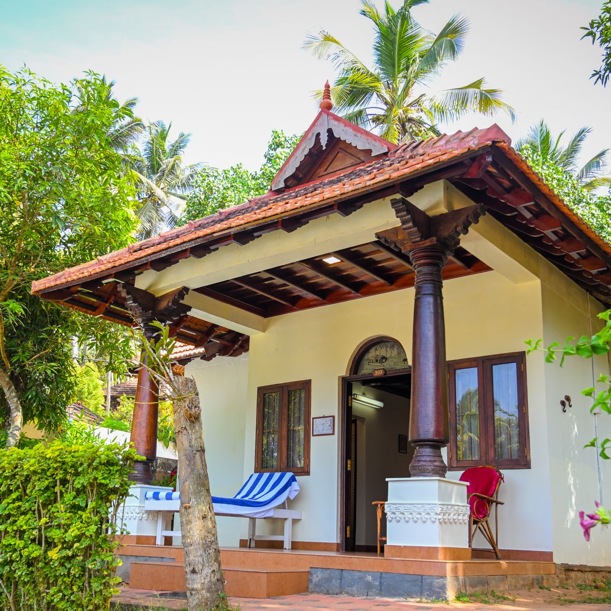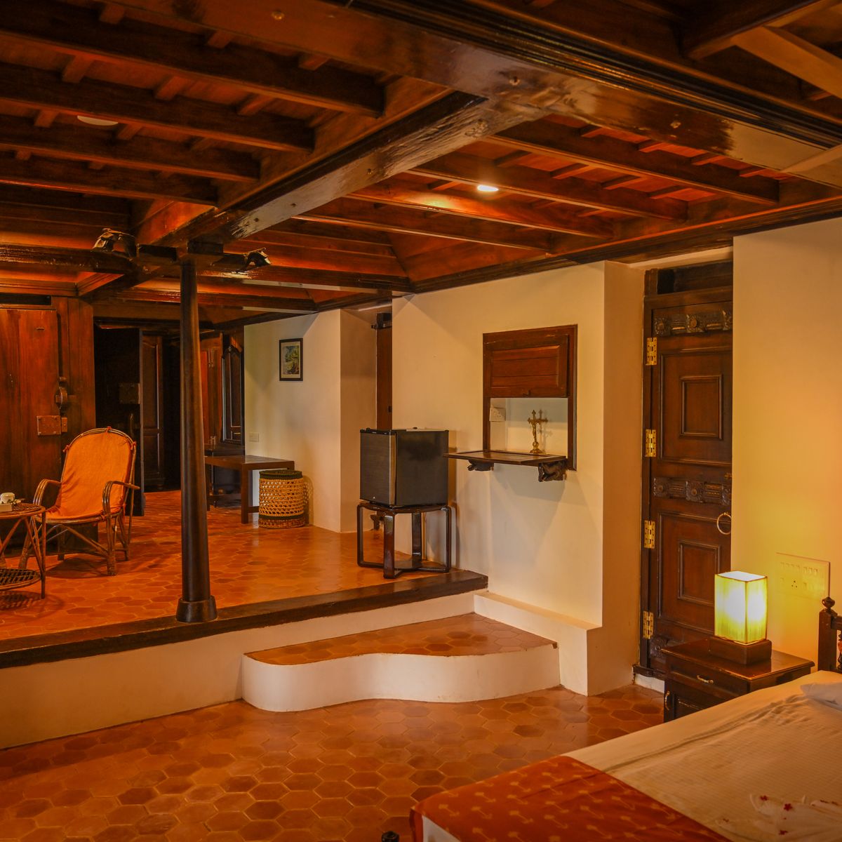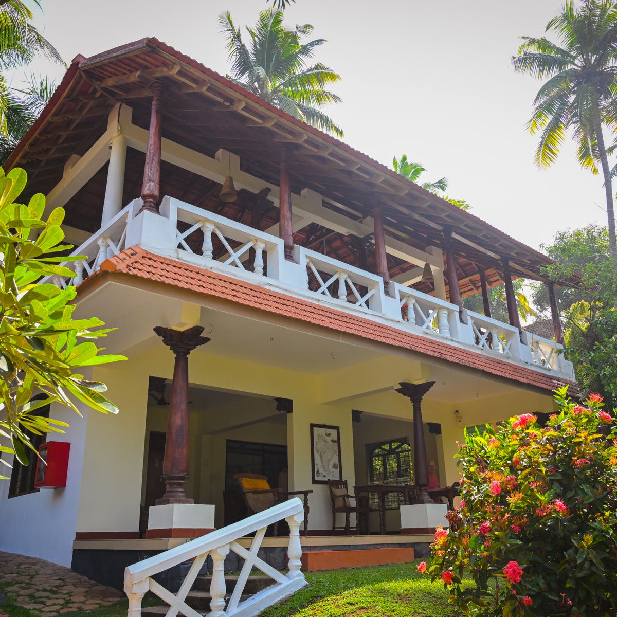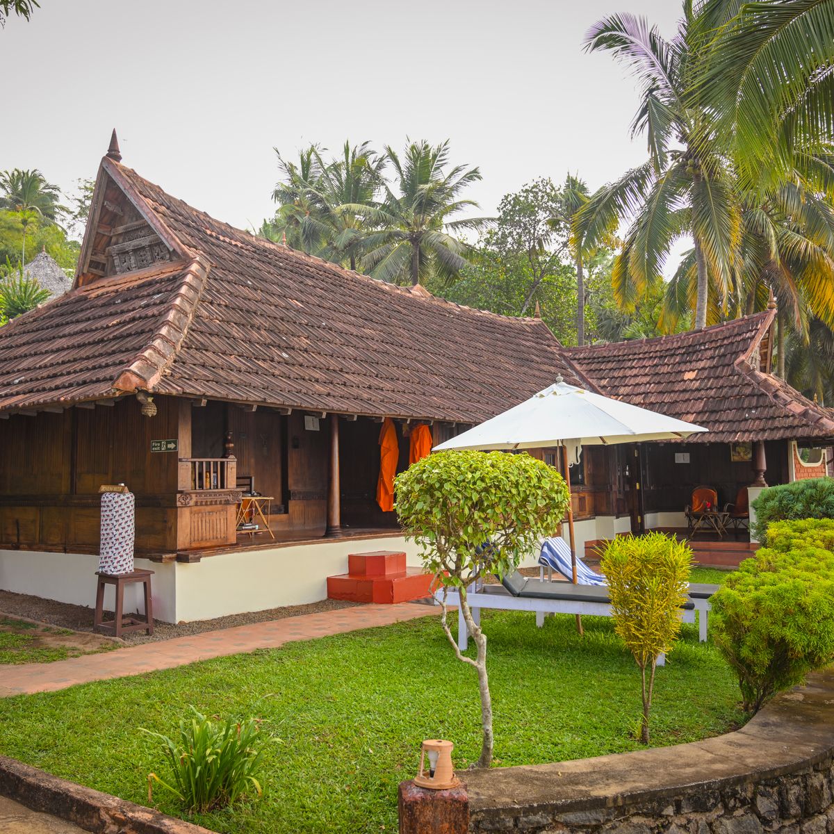 Exklusives Herrenhaus im traditionellen Kerala Stil, auf dem höchsten Punkt des Resorts, mit kombiniertem Wohn- und Schlafbereich sowie 2 Bädern.