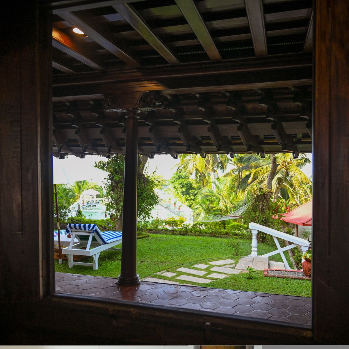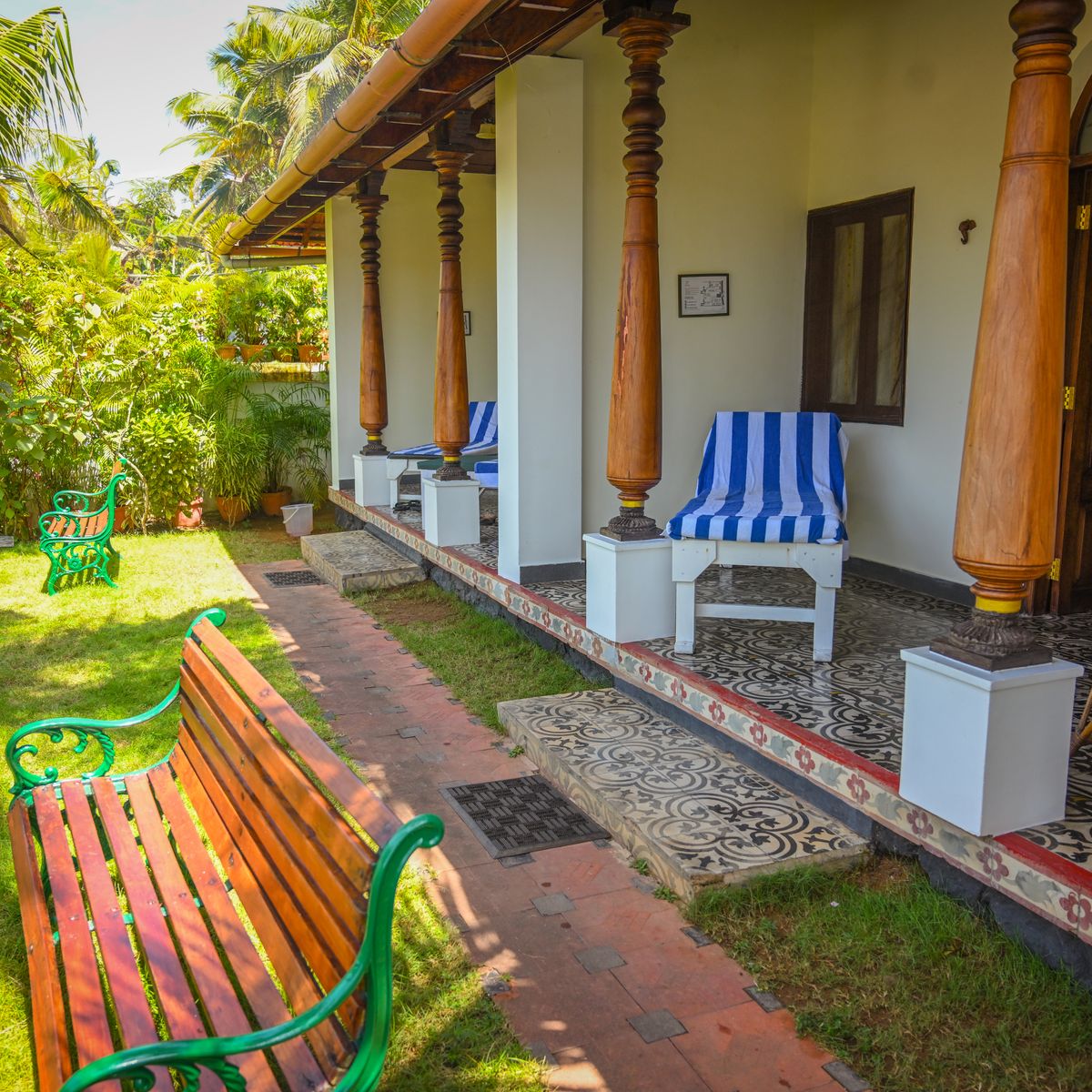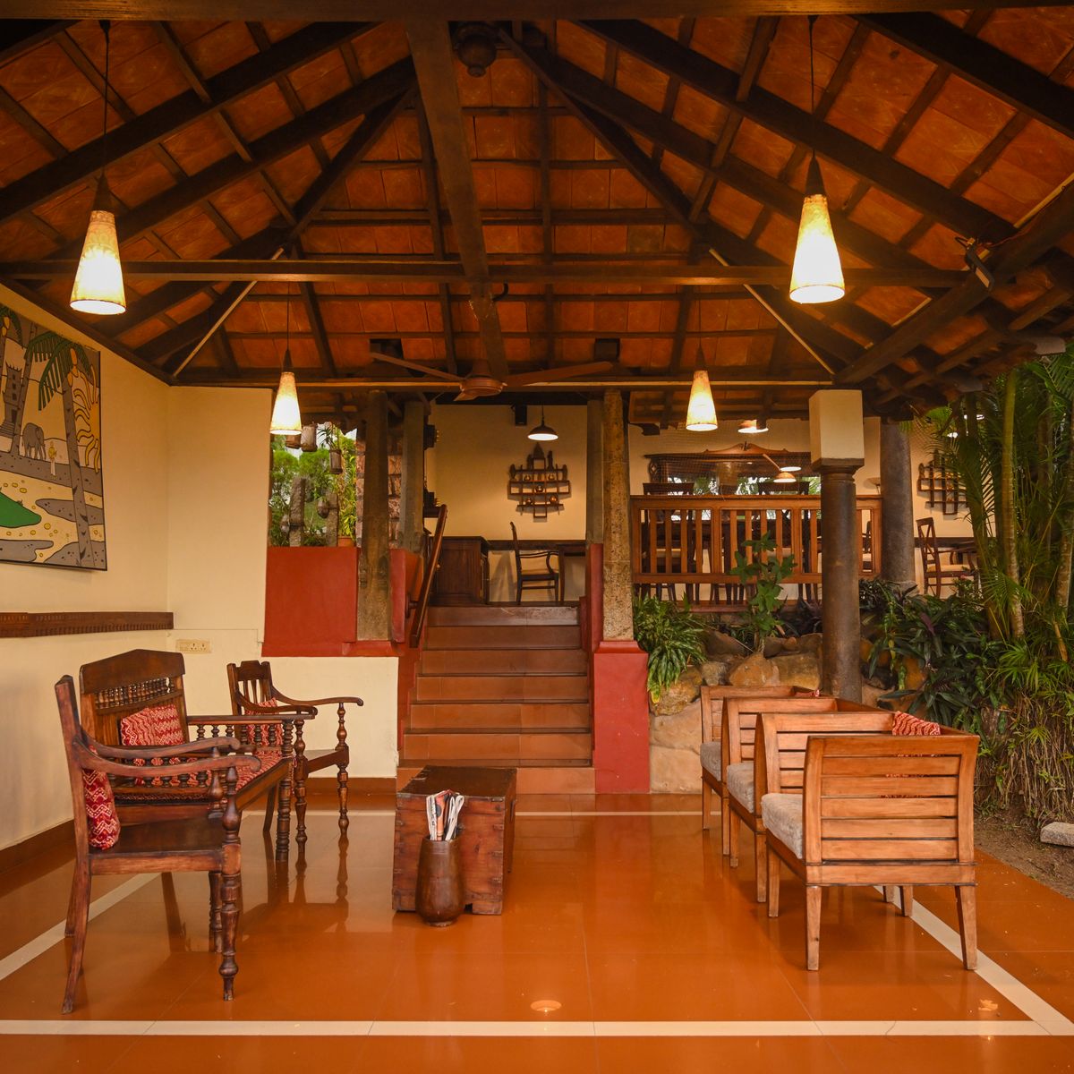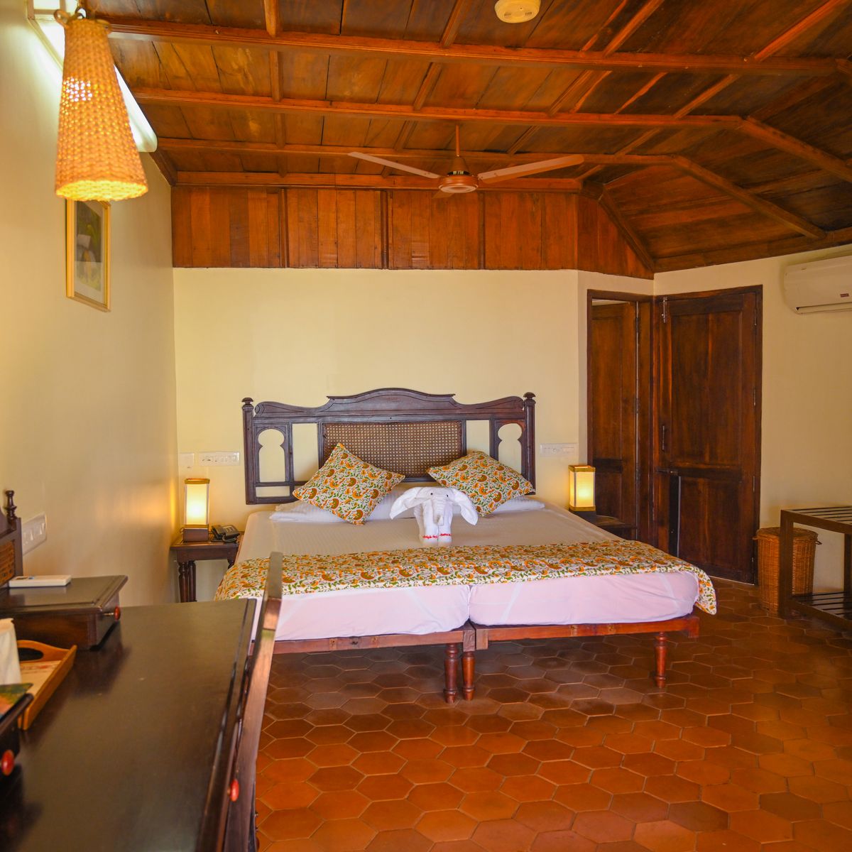 Exklusives Herrenhaus im traditionellen Kerala Stil, auf dem höchsten Punkt des Resorts, mit kombiniertem Wohn- und Schlafbereich sowie 2 Bädern.