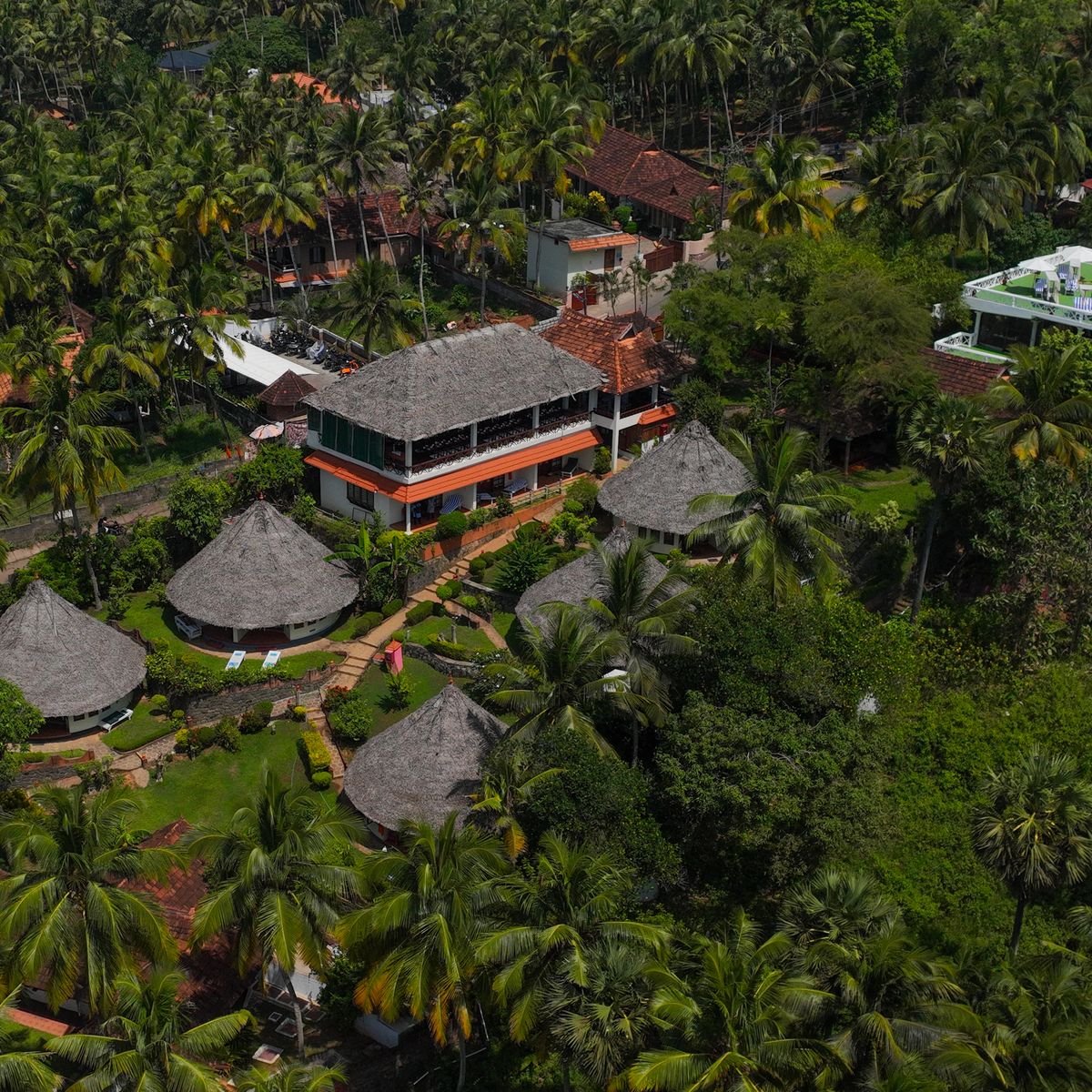 In Kerala-Stil errichtete 48 Wohneinheiten, bestehend aus 14 Cottages, 22 teilweise freistehenden Chalets, 8 geräumigen Standardzimmern in zwei Gebäuden nahe dem Restaurant und Ayurveda-Zentrum, 2 traditionellen Holzhäusern (Kerala House) in der Nähe des Meeres und dem ehemaligen Herrenhaus The Nest (mit zwei Bädern) nahe dem Pool, bieten eine Vielfalt an Unterkünften. Jede Einheit verfügt über Dusche/WC, Telefon und Terrasse, einige bieten Meerblick und/oder Klimaanlage. Das Mini AC Einzelzimmer, ideal für Alleinreisende, die Ruhe und Abgeschiedenheit suchen, befindet sich unterhalb des Konsultationsblocks beim Ayurveda-Zentrum. Die Cottages sind hauptsächlich terrassenförmig oberhalb der Badebucht angeordnet. Zimmer, die behindertenfreundlich sind, können auf Voranmeldung und je nach Verfügbarkeit bereitgestellt werden (bitte erwähnen Sie diesen Bedarf bei Ihrer Buchung mit aytour). WLAN ist in den öffentlichen Bereichen verfügbar.