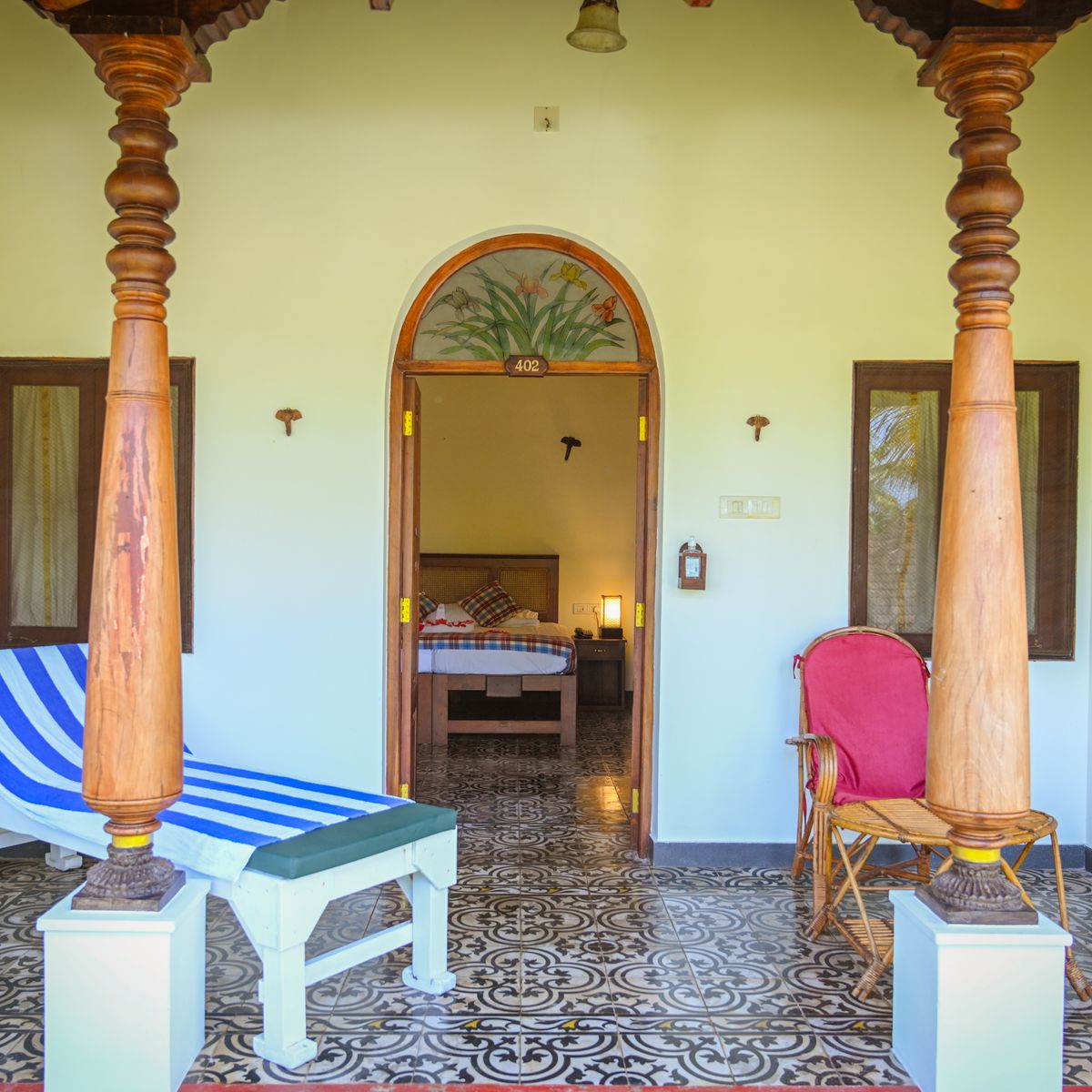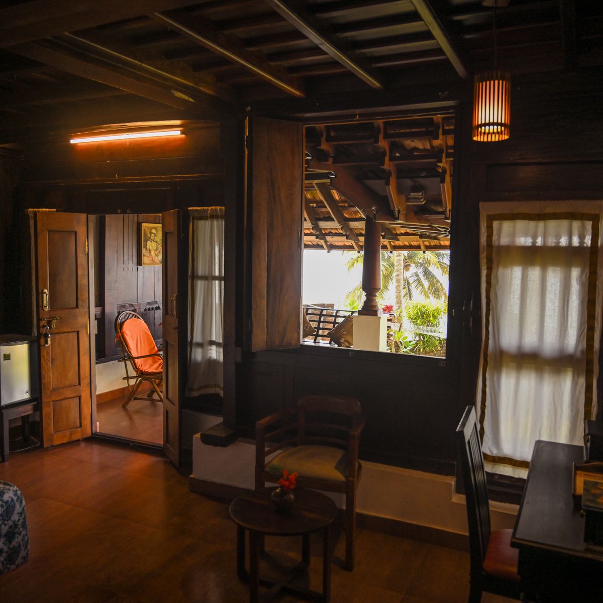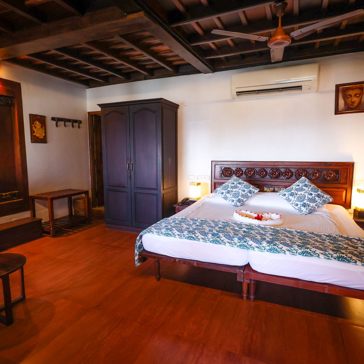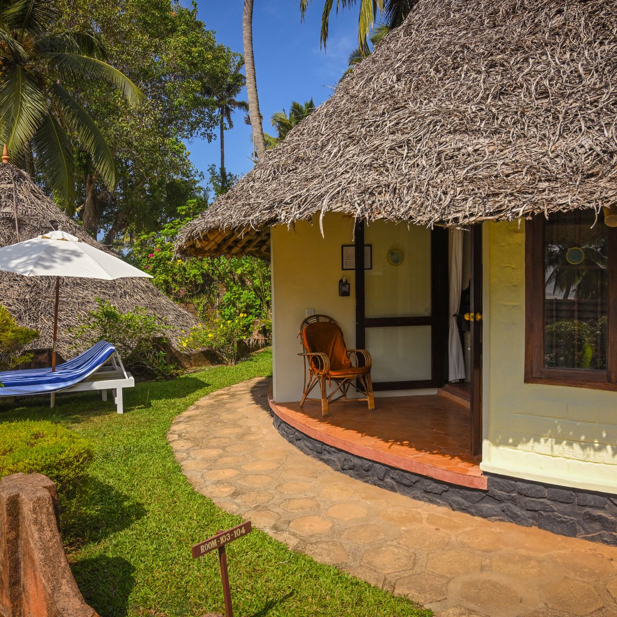 Das Kerala Haus besteht aus zwei Schlafzimmern, welche durch eine Verbindungstür erreicht werden können. Perfekt für Familien. Beide Zimmer sind mit eigenem Bad und Kühlschrank ausgestattet.