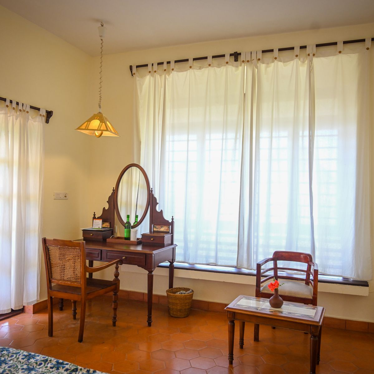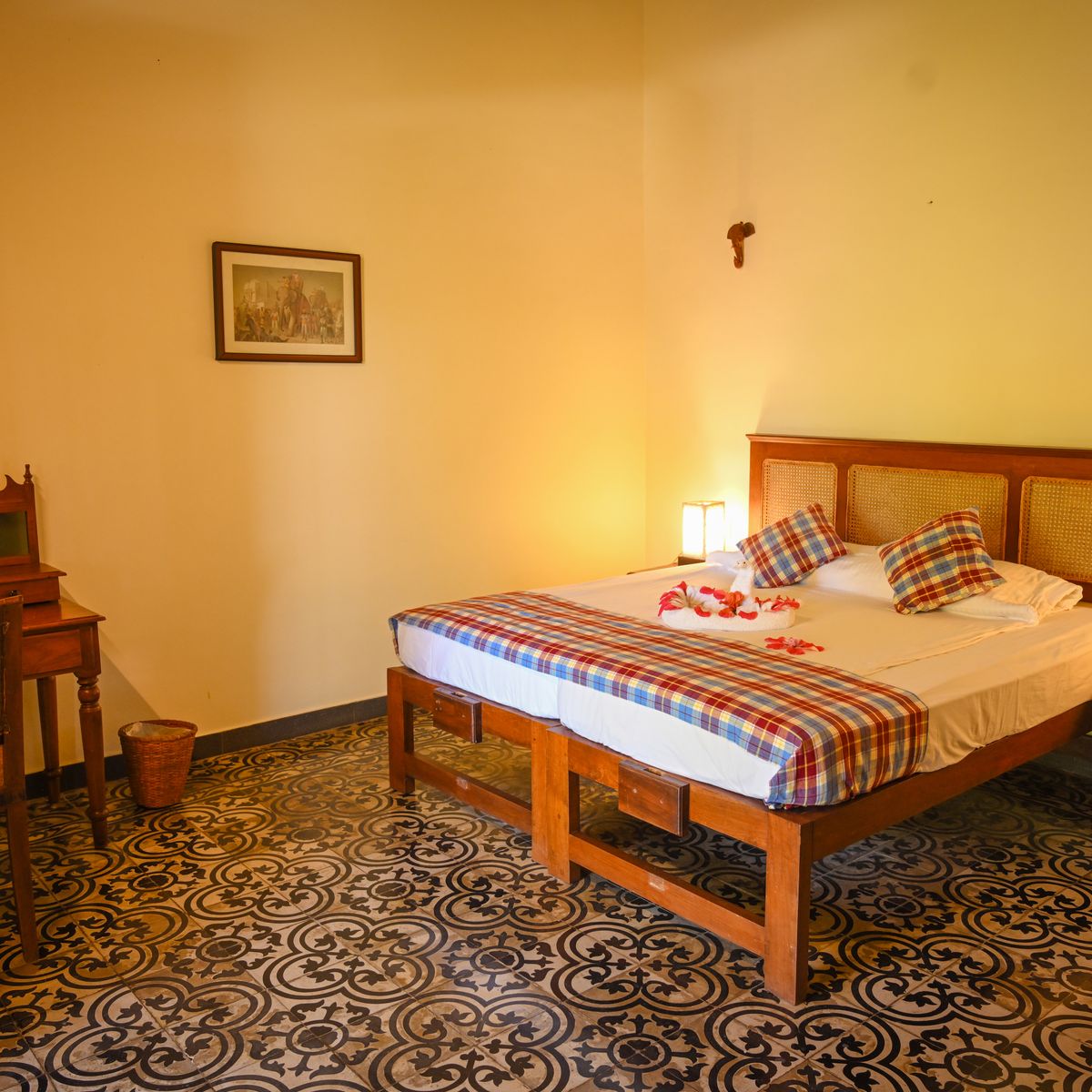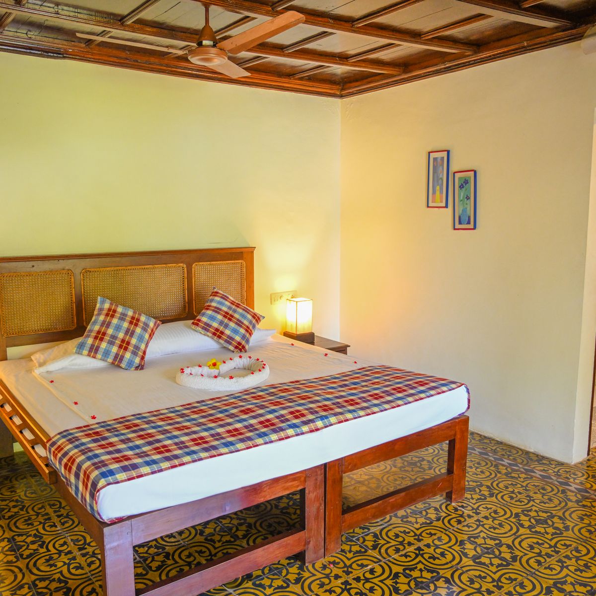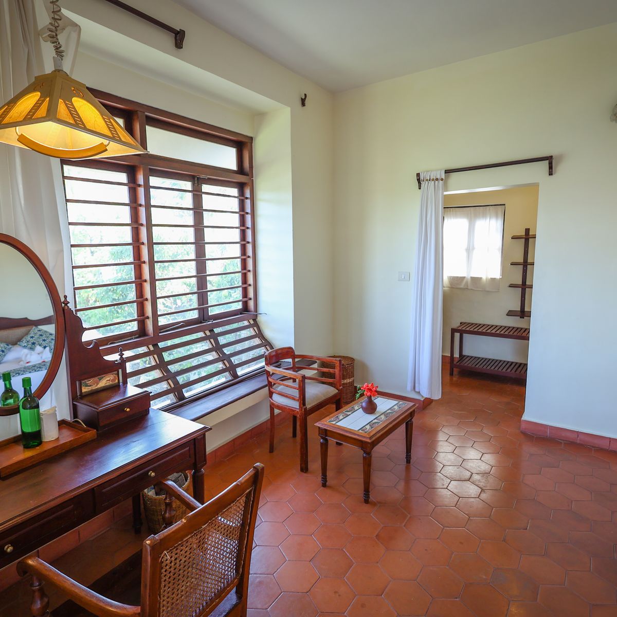 Das Kerala Haus besteht aus zwei Schlafzimmern, welche durch eine Verbindungstür erreicht werden können. Perfekt für Familien. Beide Zimmer sind mit eigenem Bad und Kühlschrank ausgestattet.