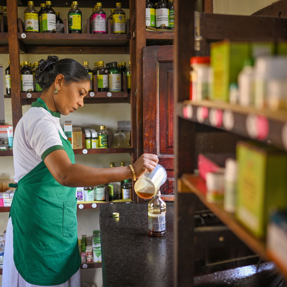 Das Ayurveda-Zentrum befindet sich im oberen Bereich der Anlage und ist abhängig von der Lage der Unterkunft über Treppen oder sanfte Steigungen zugänglich. In 17 Behandlungsräumen finden authentische Ayurveda-Kuren statt. Das Team besteht aus den renommierten Ayurveda Ärzten Dr. Praveen und Dr. Geetha, unterstützt von fünf Junior-Ayurveda-Ärzten, etwa 50 Therapeuten, mehreren Pharmazeuten und Krankenschwestern. Für Konsultationen steht nach Terminvereinbarung ein deutschsprechender Übersetzer bereit. Bereits 2003 wurde das Zentrum von der Regierung Keralas mit dem Green Leaf Ayurveda ausgezeichnet und trägt heute den Titel Ayur Diamond Ayurveda, die höchste Anerkennung. Seit 2021 ist Nikki's Nest zudem als Ayurveda-Hospital NABH zertifiziert, was einer medizinisch geleiteten Ayurveda-Klinik mit täglichem Behandlungsplan und strukturierter Patientenbetreuung entspricht.