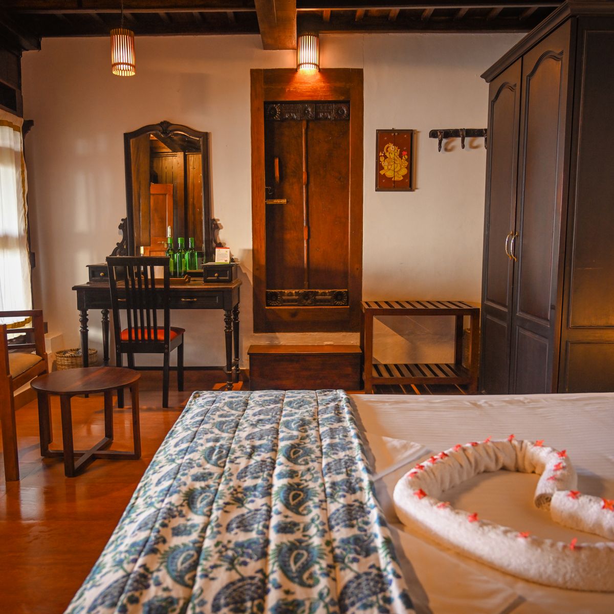 Für die Abenteuerlustigen bietet aytour eine Vielzahl von Ausflügen an - erkunden Sie die malerischen Backwaters, tauchen Sie ein in das Leben der Dörfer oder bestaunen Sie die prächtigen Tempel und Paläste der Region. Und wenn Sie Lust auf eine kleine Shoppingtour haben, finden Sie in der näheren Umgebung kleine Geschäfte, die zum Bummeln einladen. Willkommen im Nikki's Nest - wo die Zeit stillzustehen scheint und Erholung sowie Abenteuer Hand in Hand gehen.