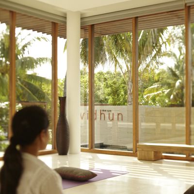 The Vidhun Spa (ca. 5831 qm, 9-21 Uhr) präsentiert sich als eine Oase des Luxus, komplett mit Ruhepool, Dampfbad und einem Ayurveda-Behandlungsraum, der ebenfalls ein Dampfbad umfasst. Eingebettet in tropische Natur, bietet das Spa seinen Besuchern eine Flucht in eine Welt voller Ruhe und Gelassenheit. Lassen Sie den Alltagsstress hinter sich und tauchen Sie ein in die traditionellen Heilrituale der Malediven, die lokale Zutaten nutzen. Es werden kosmetische Behandlungen und Massagen aus der ganzen Welt angeboten. Fünf Behandlungsvillen stehen für Paare bereit, um eine breite Palette an Behandlungen wie Massagen, Gesichtsbehandlungen, Peelings, Packungen und Wellnessrituale zu genießen. Die Verwendung von hochwertigen, natürlichen Produkten in Kombination mit professionellen Techniken sichert maximale Entspannung und Regeneration. Auch Behandlungen für Kinder, wie das Baby-Spa und Mini-Maniküre/Pediküre, sind verfügbar. Das Fitness-Center ist rund um die Uhr geöffnet und ausgestattet mit modernsten Techno-Gym-Geräten sowie einer umfangreichen Auswahl an Cardio-, Kraft- und Freihantelgeräten.