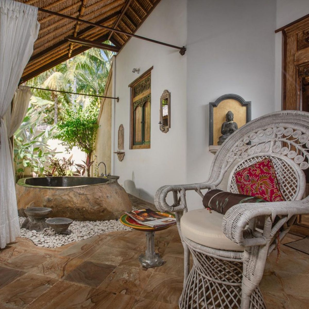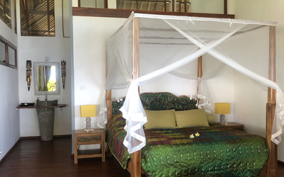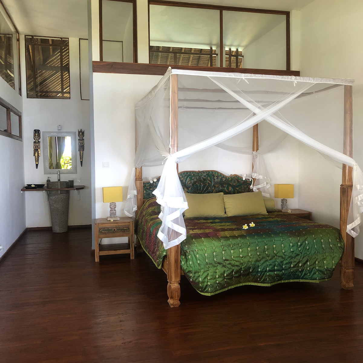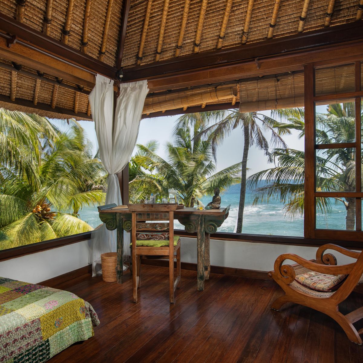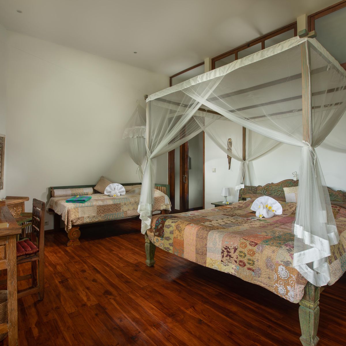Sie residieren in liebevoll eingerichteten Zimmern im Haupthaus oder im Prana House, die balinesisches Design mit Komfort und einer warmen, persönlichen Atmosphäre vereinen. Holzböden, Antiquitäten, Natursteinbäder und edle Stoffe prägen den Charakter jedes Zimmers. Einige Zimmer verfügen über Klimaanlage, einen Balkon oder eine Terrasse mit Meerblick, andere bieten einen gemütlichen Innenraum zum Rückzug. Ob das großzügige Moonlight Zimmer mit Himmelbett oder die charmanten Sunrise- und Sunset-Zimmer, ideal für Alleinreisende - hier verbindet sich Ruhe und Erholung mit der natürlichen Schönheit Balis. Einzelzimmer sind Doppelzimmer zur Alleinnutzung. Ein Föhn kann an der Rezeption ausgeliehen werden.