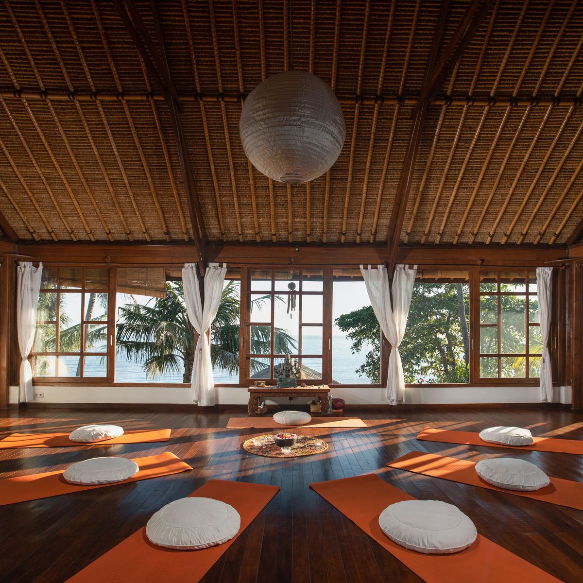Täglich stattfindende Yogastunden und Meditationen bieten Gelegenheit zur Achtsamkeit, Heilung und persönlichen Entwicklung. Die Übungen finden in einem lichtdurchfluteten Raum mit weitem Meerblick oder in der offenen Yogashala im tropischen Garten statt. Die Yogalehrer leiten kleine Gruppen in Hatha Yoga mit Elementen aus Vinyasa, Yin, restaurativem und therapeutischem Yoga, jeweils angepasst an die individuellen Bedürfnisse der Teilnehmer. Das Angebot wird durch verschiedene Meditationsformen ergänzt, darunter stille, geführte, Atem- und Wassermeditationen sowie Tanzmeditationen im Freien. Ein Tag der Stille fördert die innere Einkehr. Sowohl Anfänger als auch Fortgeschrittene sind willkommen.
