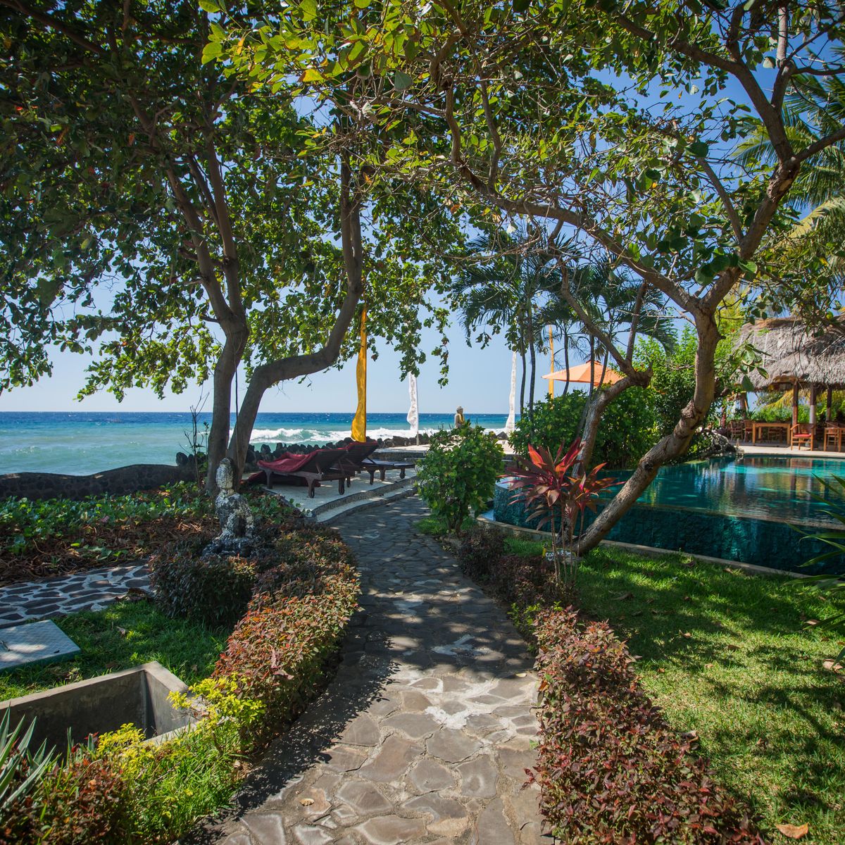 Prana Veda befindet sich im beschaulichen Norden Balis, an einem unberührten Lavastrand, an dem das Meer sanft anlandet. Umgeben von tropischen Gärten, Kokospalmen und reicher Natur, offenbart sich Ihnen die natürliche Schönheit der Insel. In der Nähe finden Sie kleine Dörfer, Tempel und traditionelle Zeremonien, die Ihnen authentische Einblicke in das balinesische Leben bieten. Die Anfahrt führt Sie vorbei an Vulkanen, Reisfeldern und üppiger Vegetation, bis Sie die friedvolle Küste erreichen und in die Stille eintauchen können.