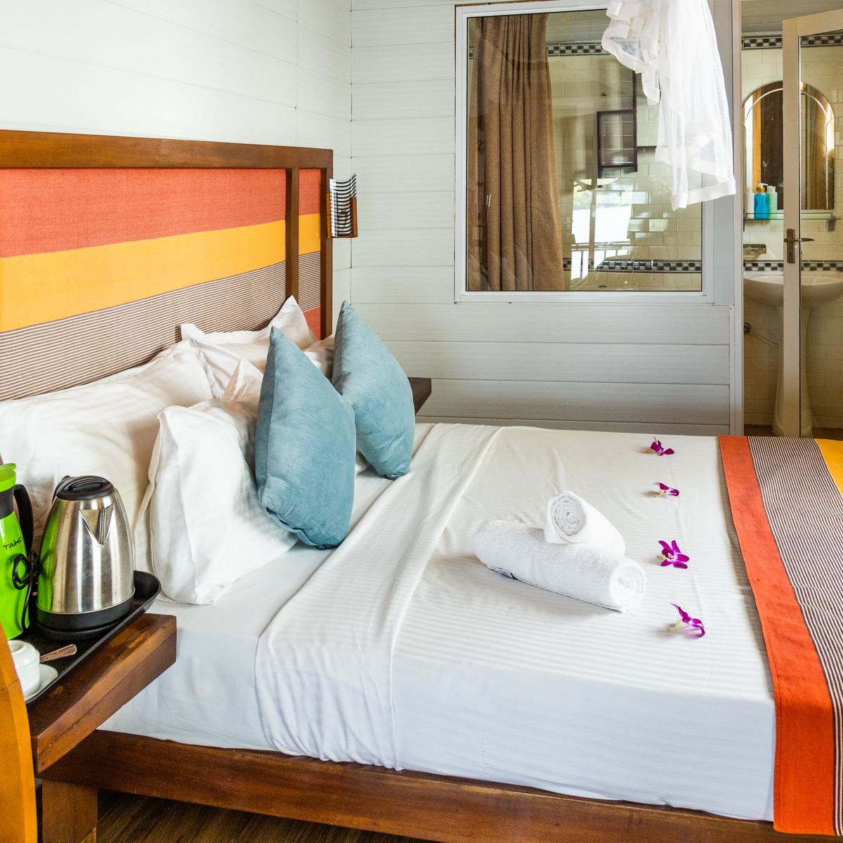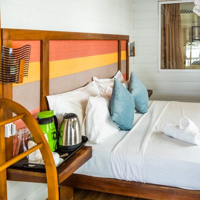 Die 30 Zimmer, aufgeteilt auf mehrere Gebäude, das schwimmende Haus "Carpe Diem" (auf Anfrage, ab 2 Personen) und ein Schiff auf dem Fluss (auf Anfrage, ab 3 Personen), wurden mit großer Sorgfalt und Liebe zum Detail eingerichtet. Die Deluxe Zimmer bieten eine hochwertigere Ausstattung sowie einen direkten Blick auf den Fluss oder den Pool. Einzelzimmer sind als Doppelzimmer zur Alleinbenutzung verfügbar.