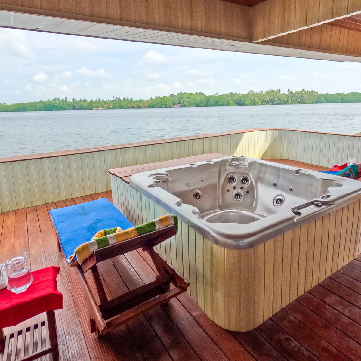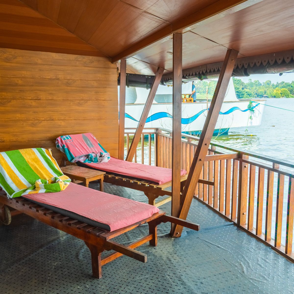 Das familiäre Hotel bietet ein Hauptrestaurant mit Terrasse am Ufer und ein weiteres, das auf dem Fluss schwimmt. Gäste können sich morgens im Restaurant oder in einem der Pavillons im Garten an einem frisch zubereiteten, gesunden Frühstück erfreuen. Alle Gerichte werden gemäß der ayurvedischen Lehre nach dem Konstitutionstyp (Dosha) und den Empfehlungen des Ayurveda Arztes zubereitet. Auf Wunsch sind auch vegetarische oder vegane Optionen verfügbar. Zudem besteht die Möglichkeit, private Dinner oder Ayurveda-Kochkurse zu buchen.