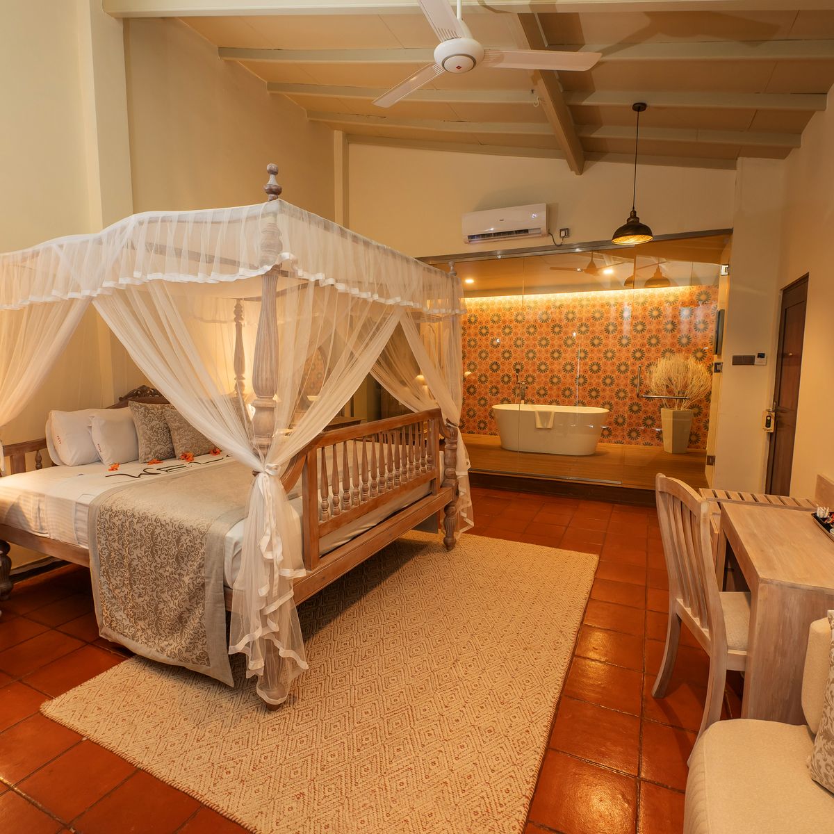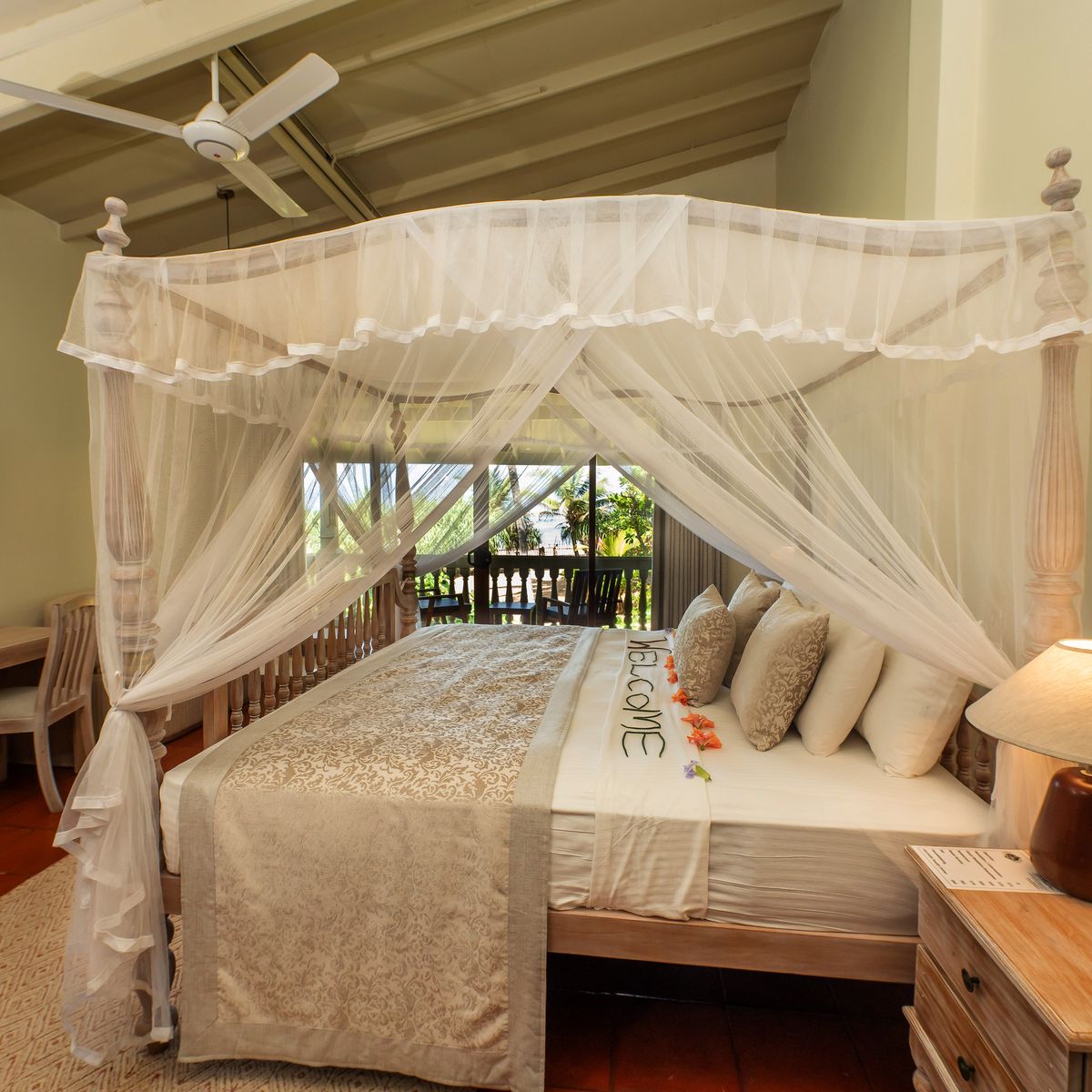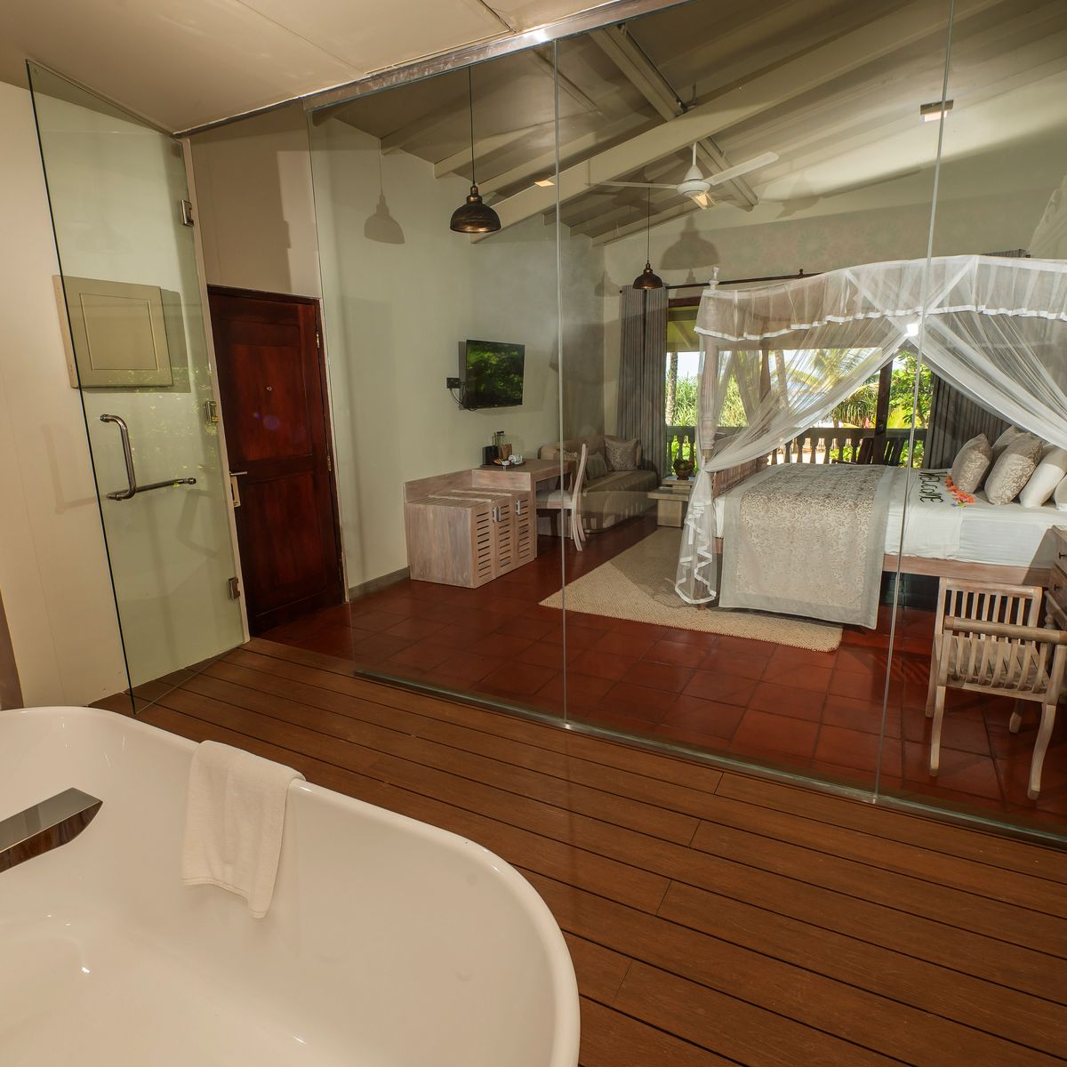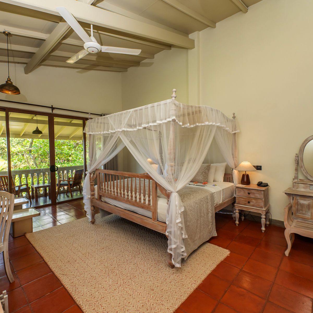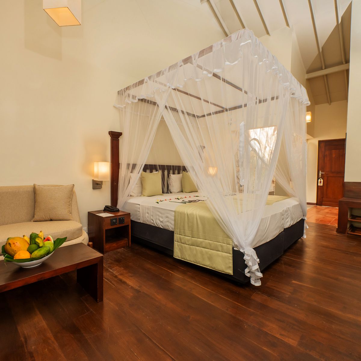 Das Resort verteilt seine 50 Zimmer auf mehrere ein- bis dreistöckige Gebäude, die harmonisch in die tropische Gartenlandschaft eingefügt sind. Jedes Zimmer präsentiert sich mit einem individuellen singhalesischen Thema, das dem Resort einen unverwechselbaren Charme verleiht. Die Ausstattung genügt westlichen Standards und umfasst einen komfortablen Sitzbereich, eine Regendusche sowie eine Klimaanlage. WLAN steht in der Lobby zur Verfügung. Kürzlich wurden die Zimmer in vielen Bereichen renoviert, was ihnen zusätzlichen Komfort und ein erfrischendes Ambiente verleiht. Die Superior Zimmer verfügen über eine Terrasse oder einen Balkon mit Blick auf die Pool- und Gartenlandschaft. Die Deluxe Zimmer laden mit einer Terrasse und Meerblick zum Verweilen ein. Die geräumigen Deluxe Suiten bieten eine große Terrasse oder einen Balkon und eröffnen entspannende Ausblicke auf die umliegende grüne Parkanlage. Einzelzimmer sind als Doppelzimmer zur Alleinbenutzung konzipiert.