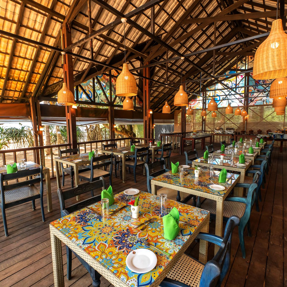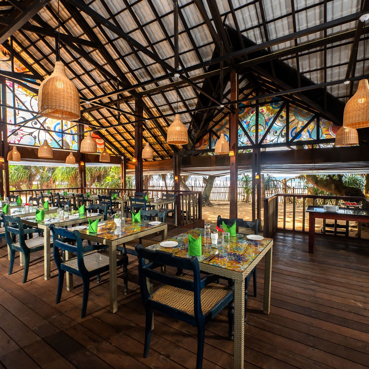 Das Resort verfügt über zwei Restaurants, in denen sowohl ayurvedische als auch internationale Küche angeboten wird. Das neu renovierte Strandrestaurant bietet in einem offenen Ambiente frische Speisen direkt am Meer. Ein weiteres Restaurant, klimatisiert und nahe der Lobby im ersten Stock gelegen, präsentiert eine Auswahl an ayurvedischen Gerichten, die in Zusammenarbeit mit den Ayurveda-Ärzten speziell für die Gäste kreiert werden. Abhängig von der Gästezahl werden die Speisen entweder als Menü oder als Buffet angeboten, wobei weißer Fisch das vegetarische Menü bereichert. Gäste haben zudem die Möglichkeit, internationale Speisen oder private Mahlzeiten in ihren Zimmern zu bestellen. Außerdem wurde eine neue Elixier-Bar errichtet.
