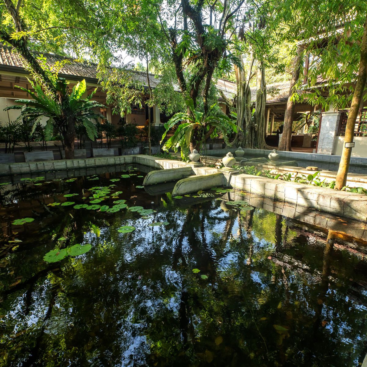 Das Resort verfügt über einen großzügigen Süßwasserpool, der sich nahtlos in die grüne Parklandschaft einfügt und ideale Voraussetzungen für entspannende Momente schafft. In der Nähe des Pools lädt ein kleiner Fitnessraum zu aktiver Erholung ein. Ein Spaziergang durch den aromatischen Garten, bepflanzt mit Heilkräutern, führt die Besucher direkt zu einem stillen Mangrovenhain am Strand, der sich hervorragend für ruhige Meeresspaziergänge eignet.