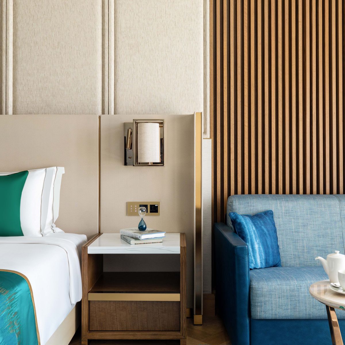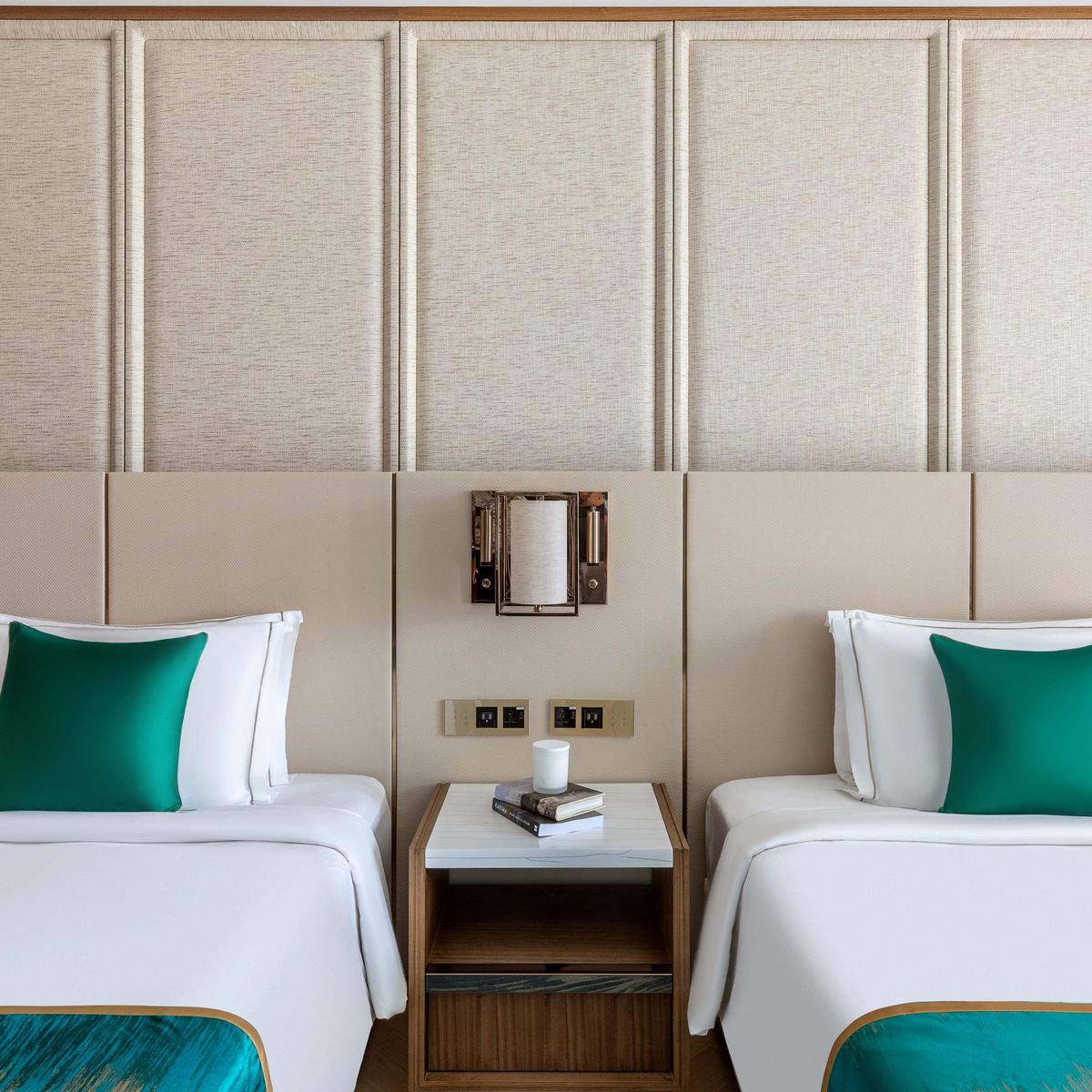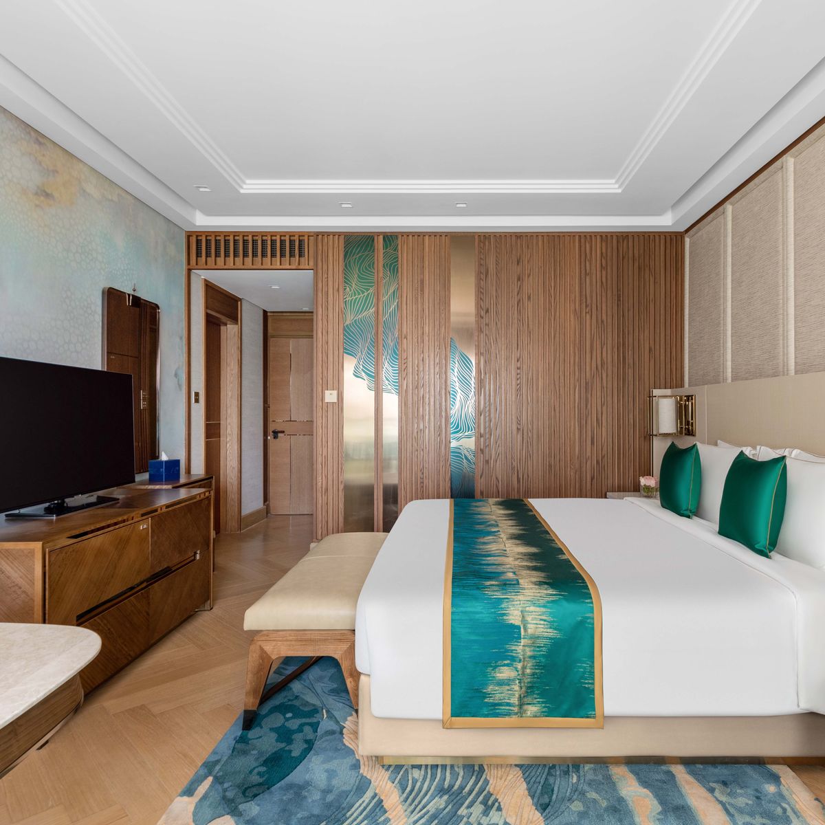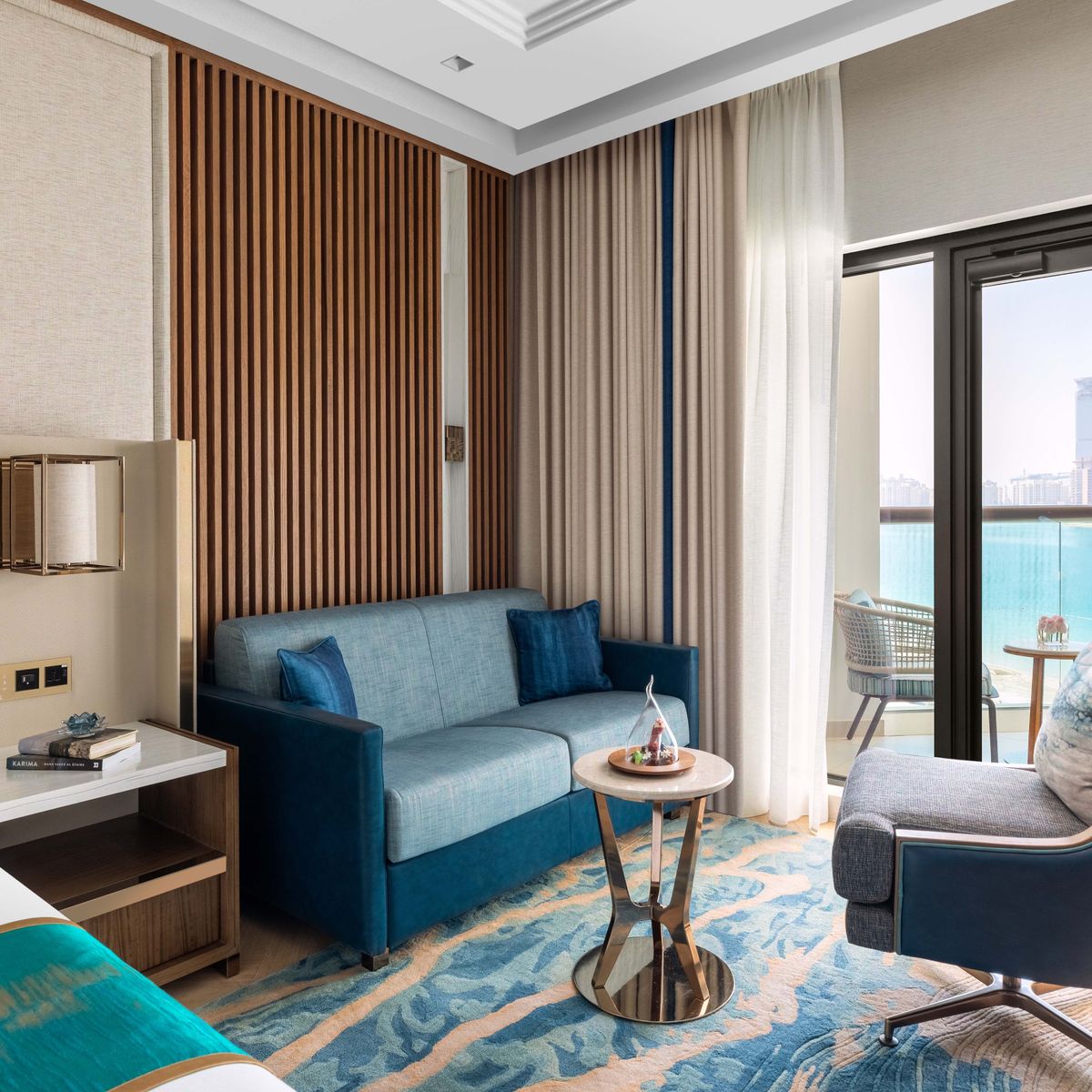 325 elegant gestaltete und weitläufige Zimmer und Suiten mit Balkon, ausgestattet mit hochwertiger Bettwäsche, einem komfortablen Schlafsofa und einem Arbeitsbereich. Die Exotica Zimmer, gelegen in den höheren Stockwerken, gewähren zusätzlichen Zugang zur exklusiven Taj Club Lounge. Die Luxury Sea View Suite bietet einen beeindruckenden Ausblick auf den Arabischen Golf und umfasst einen separaten Wohnbereich mit Esstisch sowie Zugang zur Taj Club Lounge.