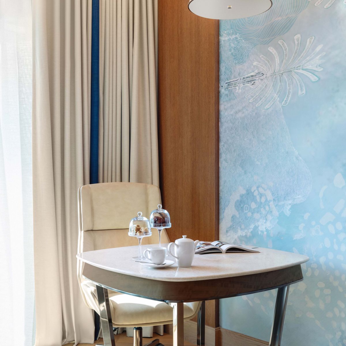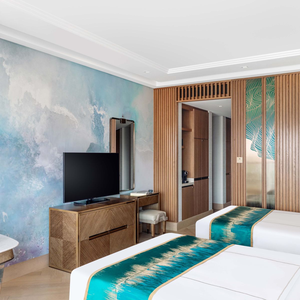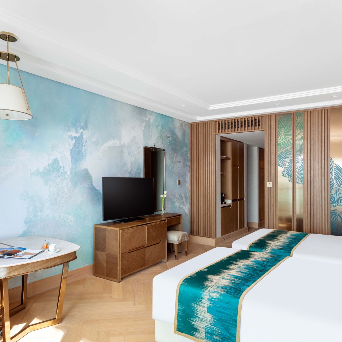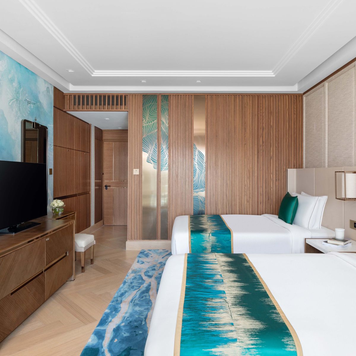 325 elegant gestaltete und weitläufige Zimmer und Suiten mit Balkon, ausgestattet mit hochwertiger Bettwäsche, einem komfortablen Schlafsofa und einem Arbeitsbereich. Die Exotica Zimmer, gelegen in den höheren Stockwerken, gewähren zusätzlichen Zugang zur exklusiven Taj Club Lounge. Die Luxury Sea View Suite bietet einen beeindruckenden Ausblick auf den Arabischen Golf und umfasst einen separaten Wohnbereich mit Esstisch sowie Zugang zur Taj Club Lounge.