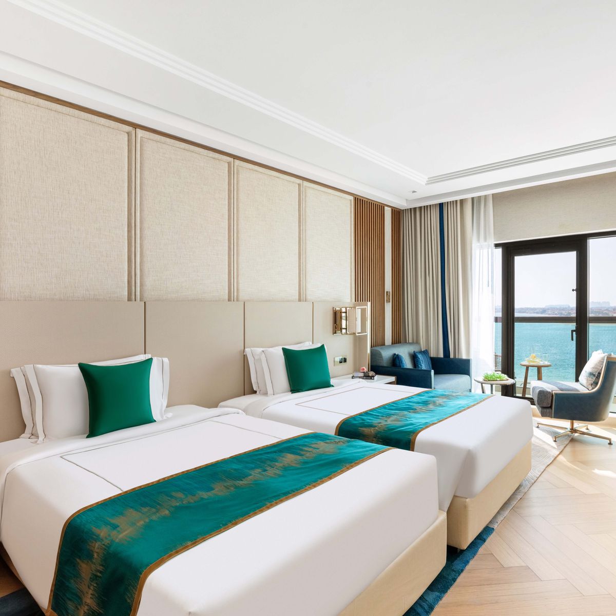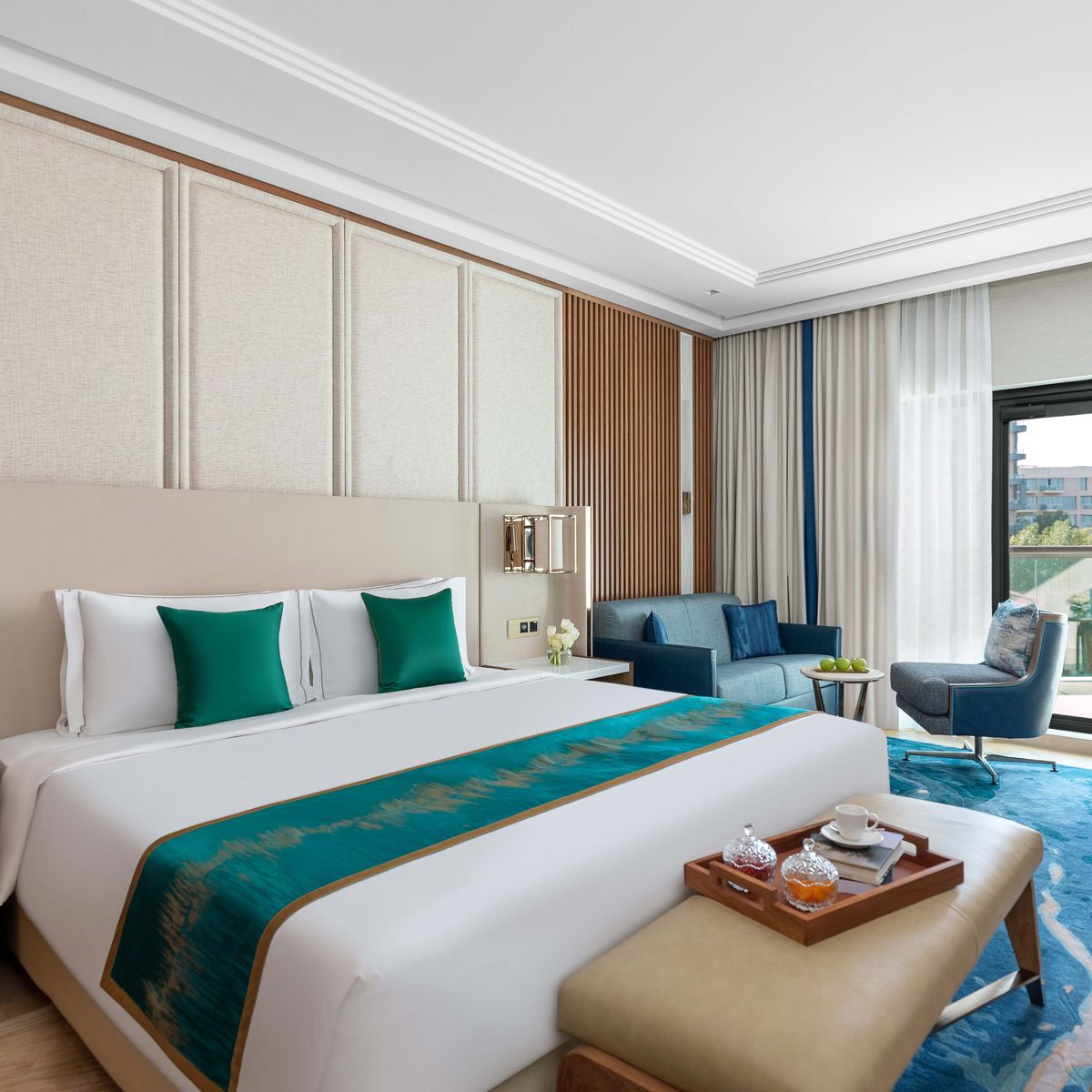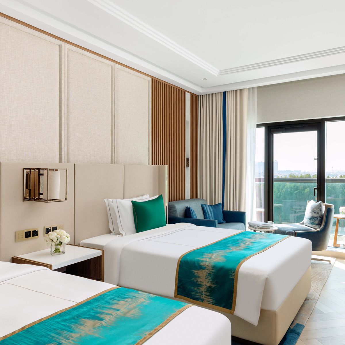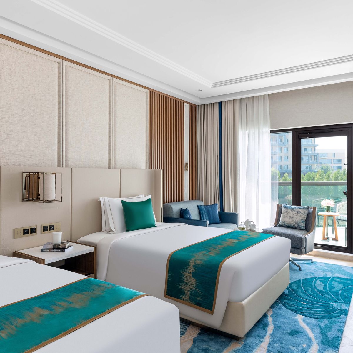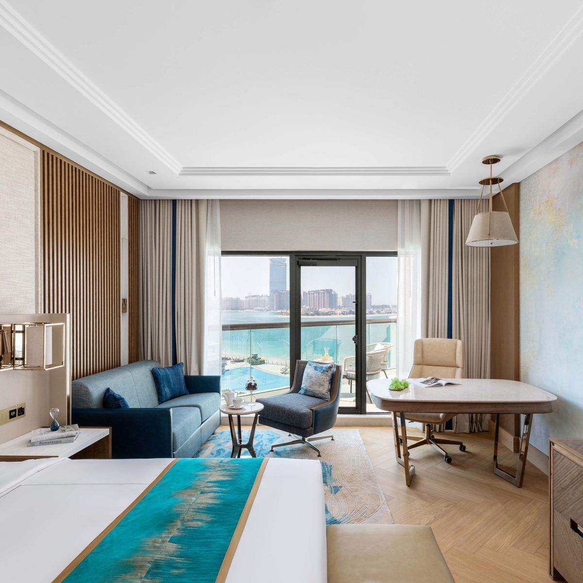 Im Taj Exotica Resort & Spa in Dubai, gelegen auf der renommierten Palm Jumeirah, erleben Sie erstklassigen Luxus in einem 5-Sterne-Ambiente. Die beeindruckende Architektur und die idyllische Lage am Persischen Golf machen das Hotel zu einem herausragenden Ort. Gäste genießen eine exklusive Kombination aus modernem Komfort und der traditionellen indischen Gastfreundschaft, die für die Taj-Hotels typisch ist.