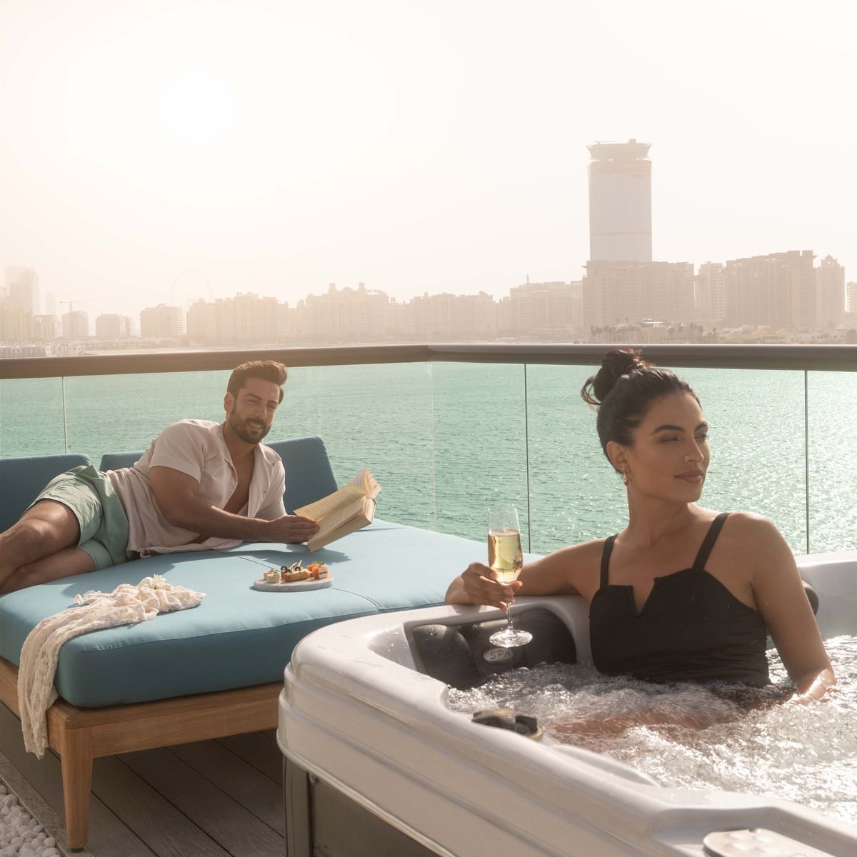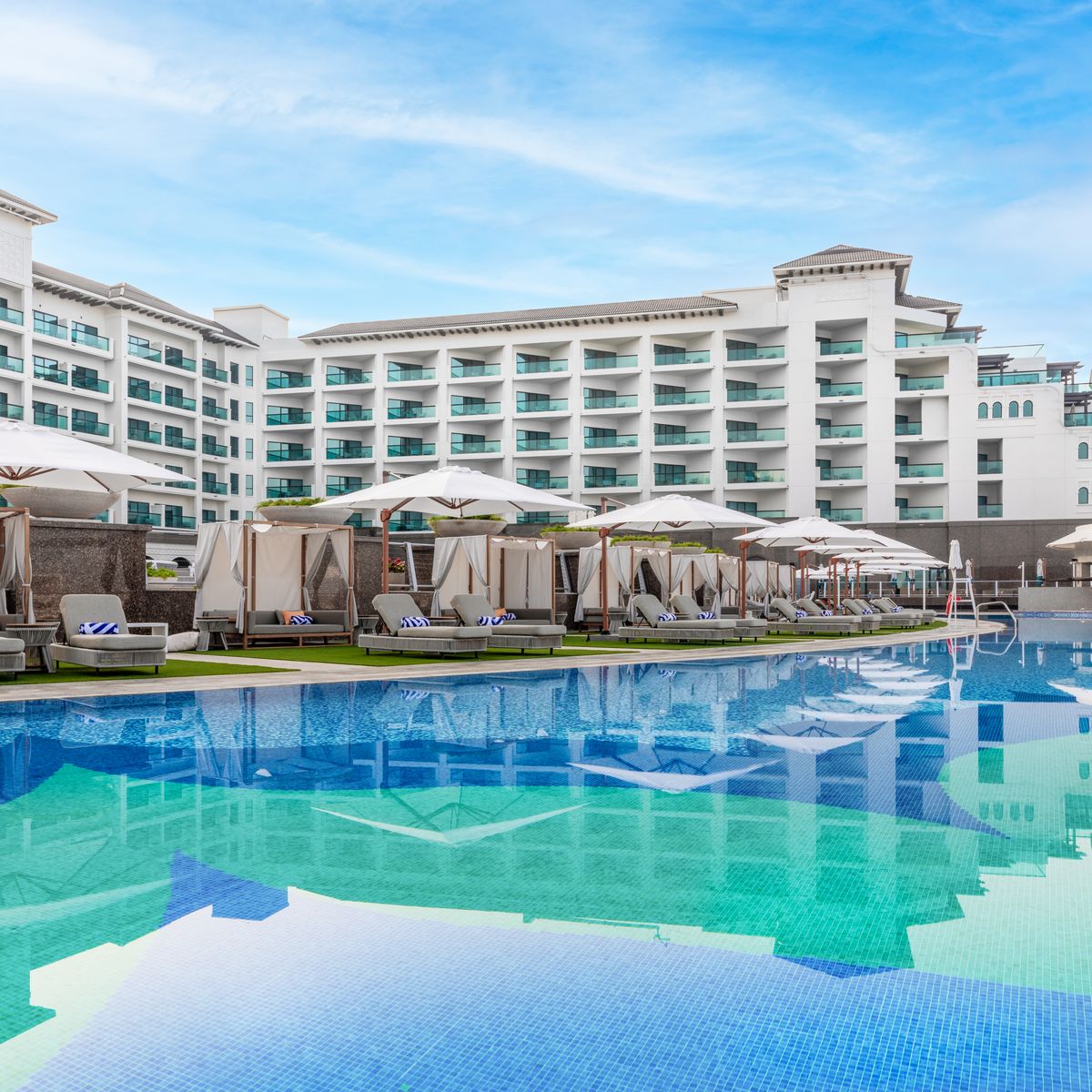 Das Taj Exotica Resort & Spa The Palm Dubai befindet sich auf der renommierten Palm Jumeirah und bietet einen herrlichen Ausblick auf den Arabischen Golf. Eingebettet zwischen feinen Sandstränden und prächtigen Gärten, erstreckt sich das Resort entlang einer exklusiven Küstenlinie. Die friedvolle Umgebung, die ausschließlich aus Hotels und Stränden besteht, bietet optimale Bedingungen für Entspannung.