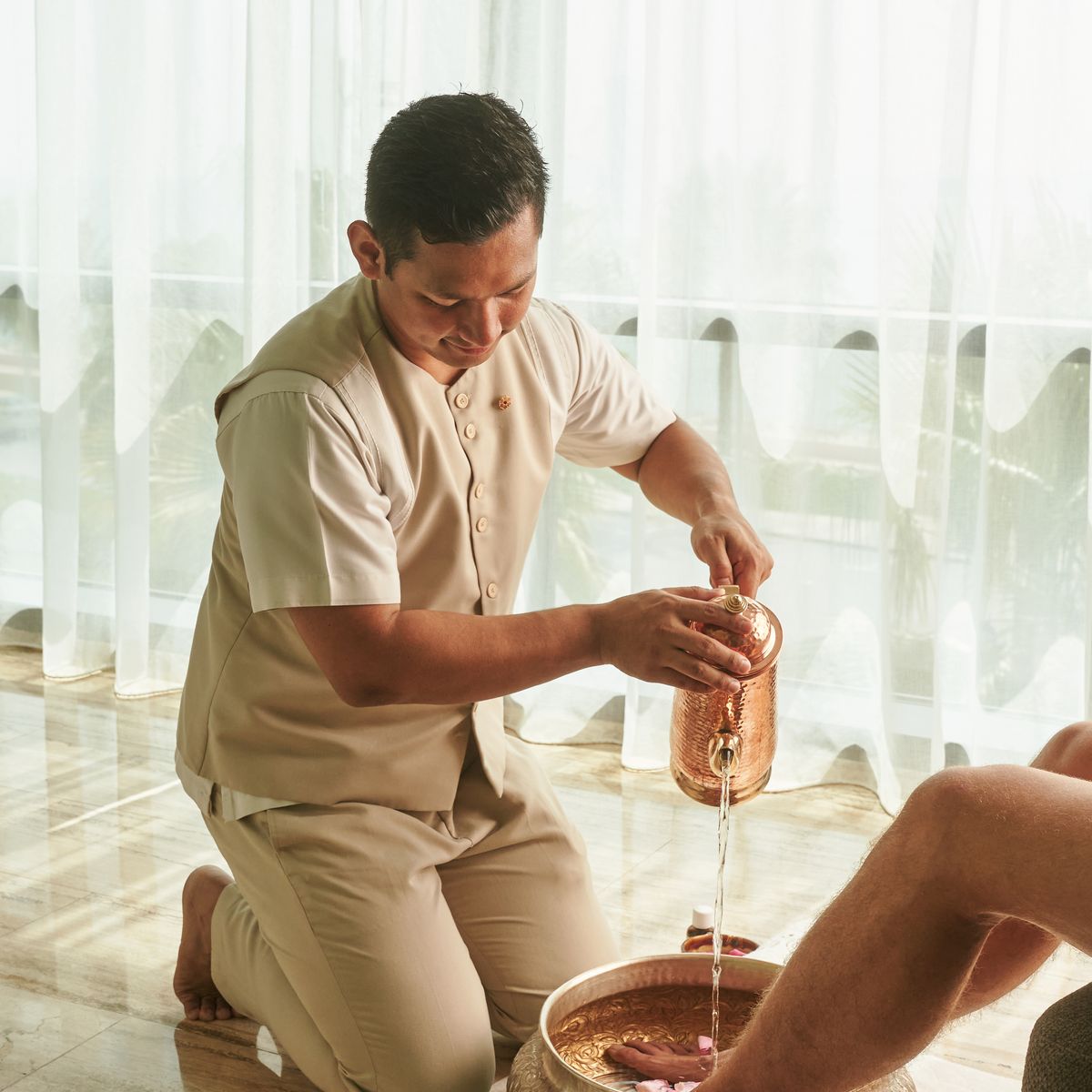Im J Wellness Circle, einer 800 qm großen Oase der Ruhe, stehen Ihnen neun Behandlungsräume, ein Dampfbad, eine Sauna, ein Yogastudio, ein Haar- und Beautysalon sowie spezielle Bereiche für ayurvedische Behandlungen und Paartherapien zur Verfügung. Yoga, Meditation und Sound Healing werden zur achtsamen Heilung angeboten. Entfliehen Sie dem Alltag und erleben Sie die heilende Wirkung des Ayurveda, indem Sie Harmonie mit den fünf heiligen Elementen des Universums erreichen - Akash (Raum), Vayu (Wind), Agni (Feuer), Jal (Wasser) und Prithvi (Erde). Das geräumige und exzellent ausgestattete Fitnessstudio bietet modernste Trainingsgeräte für diverse Trainingsmöglichkeiten. Genießen Sie das Schwimmen im 70 Meter langen Außenpool.